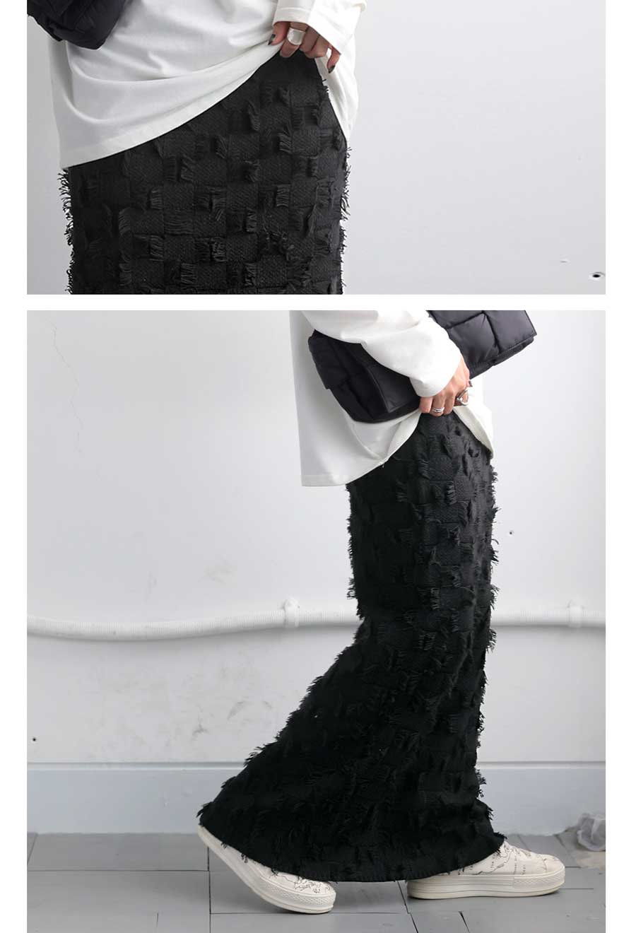 どんなトップスと合わせても、華やかな雰囲気を演出してくれるフリンジスカート。