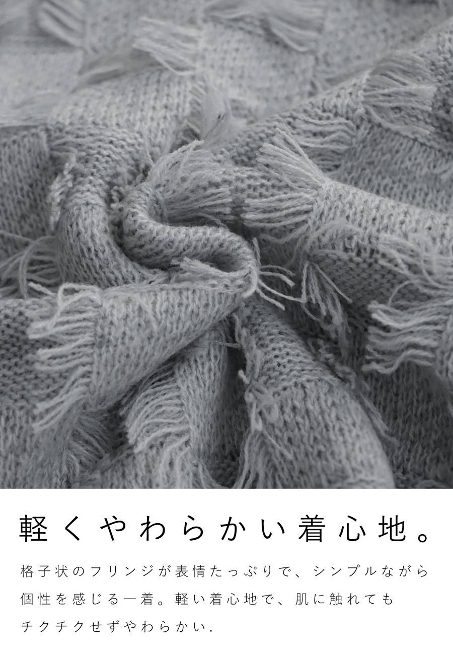 ・表情豊かな格子状のフリンジ。