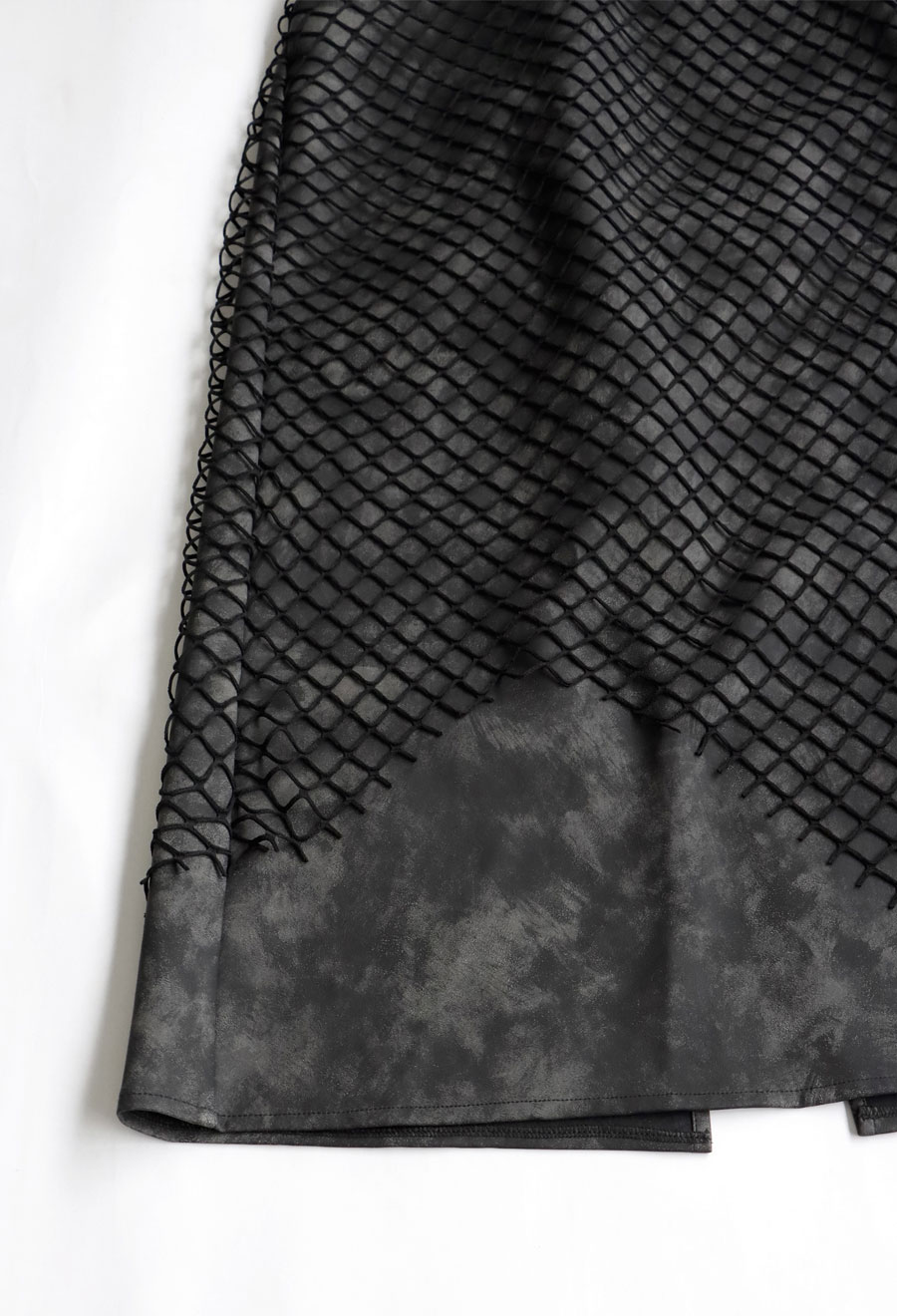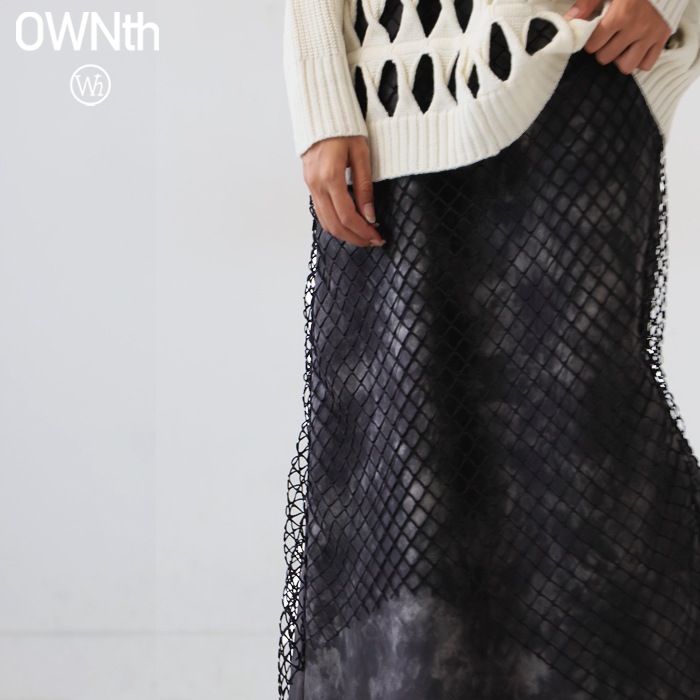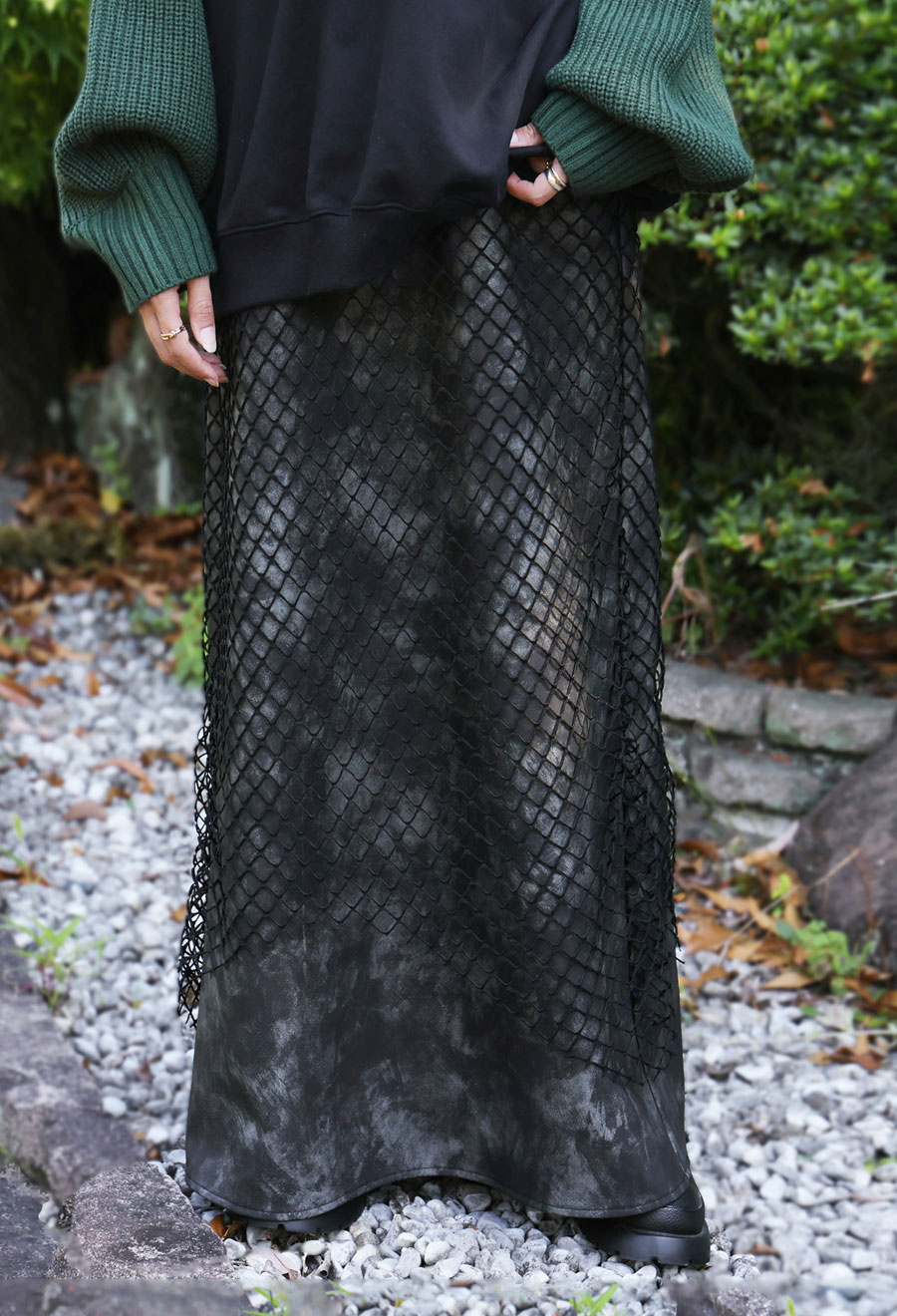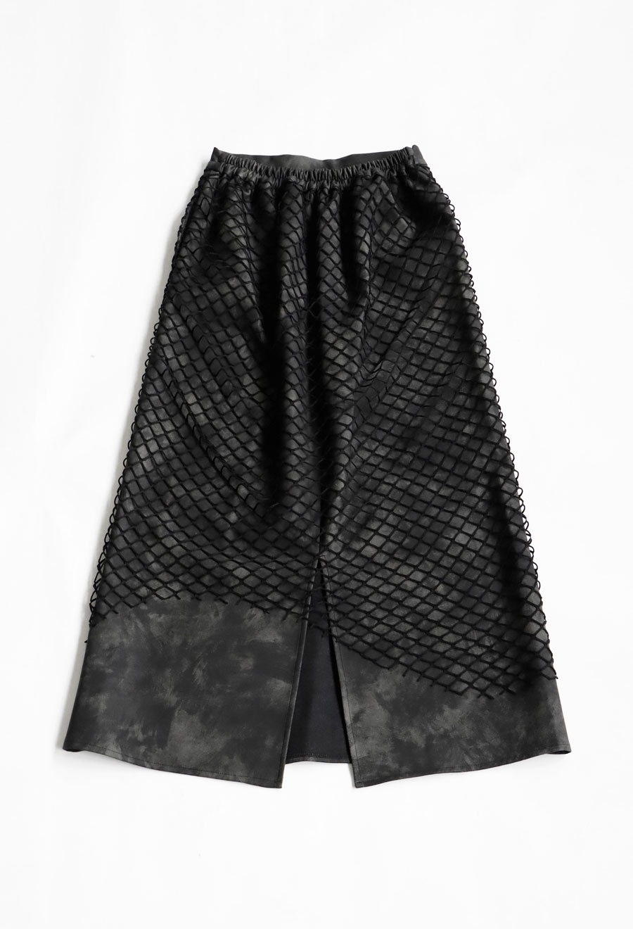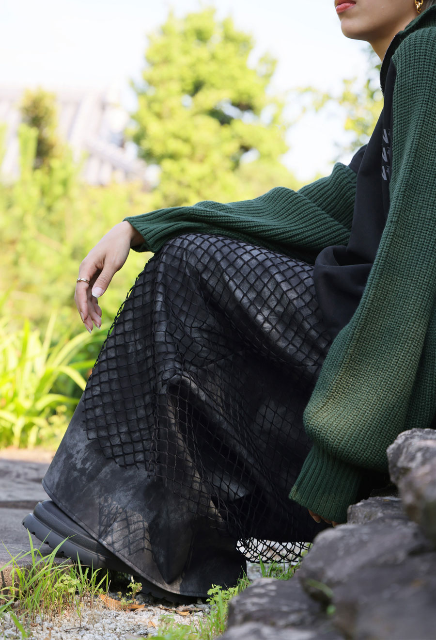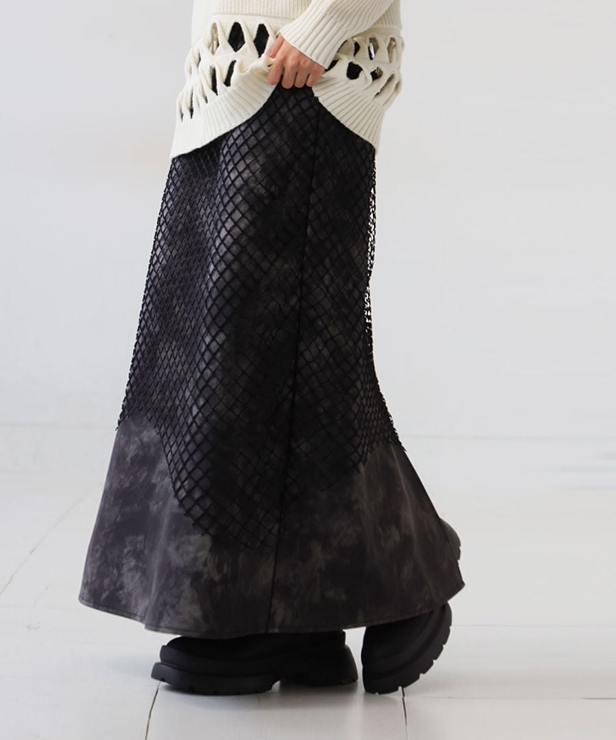 印象的なメッシュ素材を重ねた、存在感あるレイヤードスカートです。