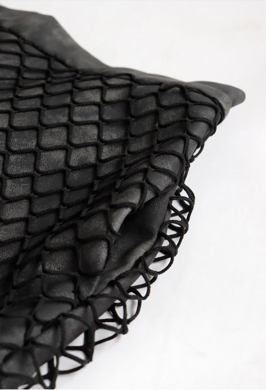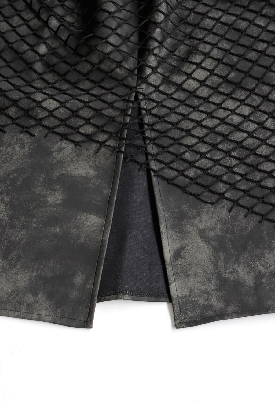 ニュアンス感あるタイダイ柄の合皮生地に、立体感のあるメッシュを重ねた独特のデザインが特徴。