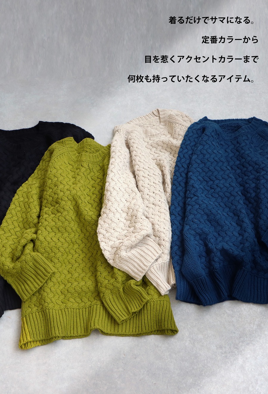 ・風合い漂うバルキー編み。