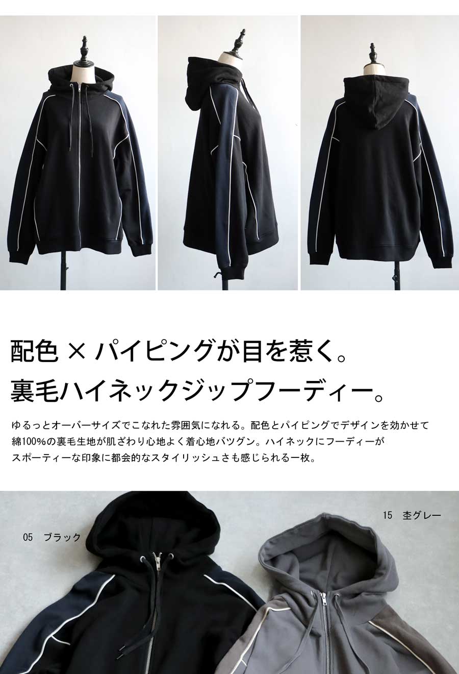 【検索ワード】配色フーディ フーディ レディース トップス 羽織り 長袖 裏毛 パーカー スウェット 綿100 フード付き フード ハイネック 前開き ジップアップ ファスナー パイピング 配色 バイカラー 切り替え ポケット付き ゆったり シンプル 綿 コットン スポーティ 都会的 スタイリッシュ 体型カバー 細見え 着痩せ オーバーサイズ ビッグシルエット 大きめ 大きいサイズ 裏毛トップス ユニセックス antiqua treecafe アンティカ ツリーカフェ 大人 おしゃれ 10代 20代 30代 40代 50代 60代 春 秋 冬 お洒落 カジュアル かわいい かっこいい あんてぃか