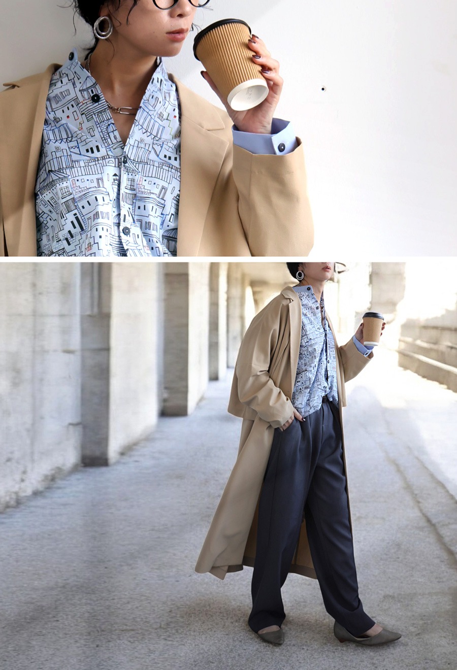 カジュアルになりすぎず、シックな雰囲気醸す街柄シャツ。