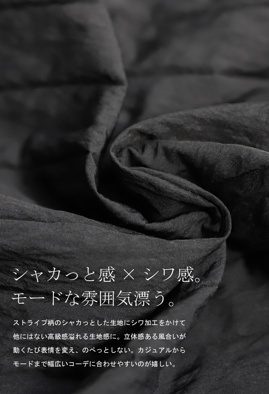 【検索ワード】ストライプシワパンツ パンツ メンズ ボトムス ロング 無地 セットアップ 織柄 ストライプ シワ加工 シンプル ストレート ワイドシルエット ワイド ゆったり 長ズボン 高級感 タック タックパンツ ウエストゴム 総ゴム ポケット付き 大きめポケット アクセント モード ナイロン イージーパンツ リラクシー 楽ちん ラフ ユニセックス 男性 男 かっこいい カッコイイ カジュアル antiqua treecafe アンティカ ツリーカフェ メンズファッション トレンド コーディネート 通販 ブランド 春 秋 冬 あんてぃか