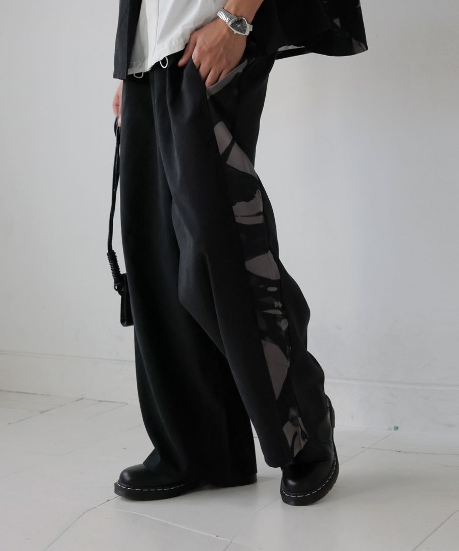 【検索ワード】柄切り替えパンツ パンツ メンズ ボトムス ロング 長ズボン セットアップ ニュアンス柄 柄パンツ 柄 無地 切り替え ドッキング サイド切り替え ライン ストレート ストレートシルエット 前フラット 後ろゴム サイズ調節可 ゆったり きれいめ 上品 高級感 スタイリッシュ モダン モード 体型カバー 細見え 着痩せ 大きめ 大きいサイズ ストレートパンツ ロングパンツ デザインパンツ ユニセックス 男性 男 かっこいい カッコイイ カジュアル antiqua treecafe アンティカ ツリーカフェ メンズファッション トレンド コーディネート 通販 ブランド 春 秋 冬 あんてぃか