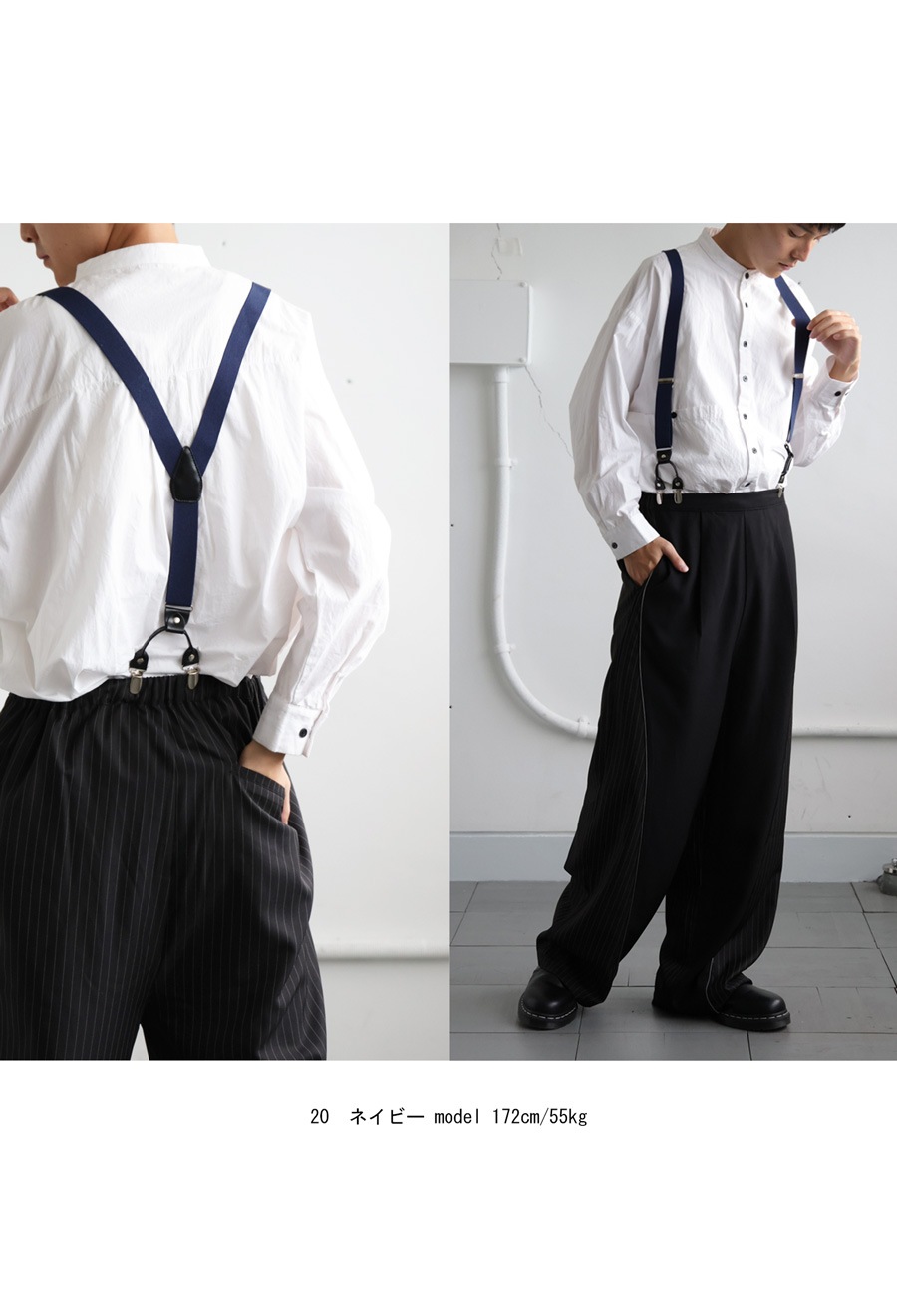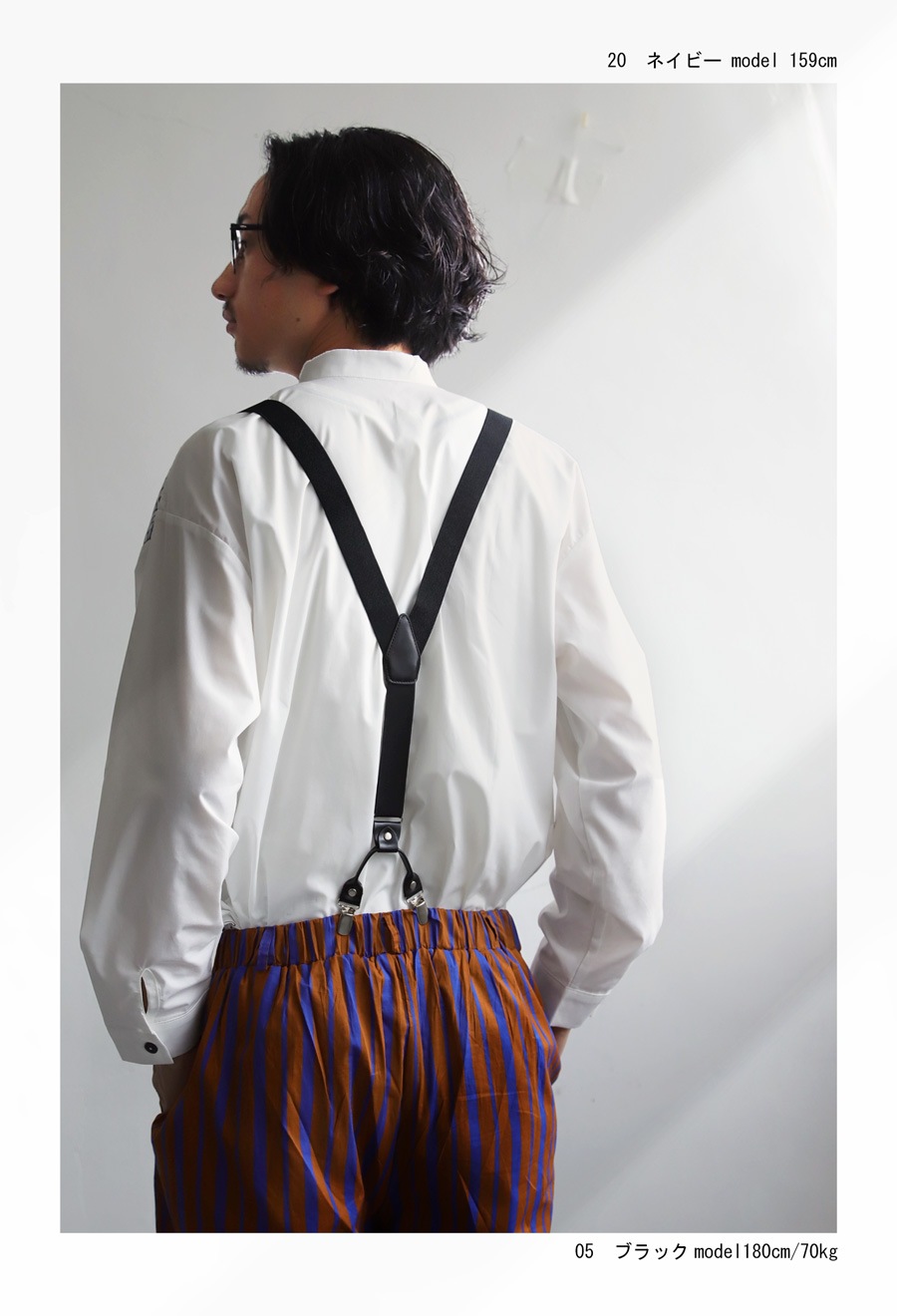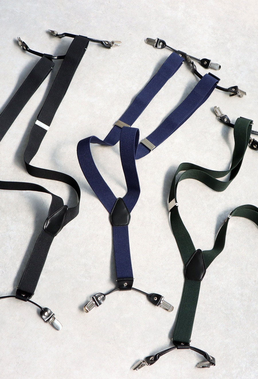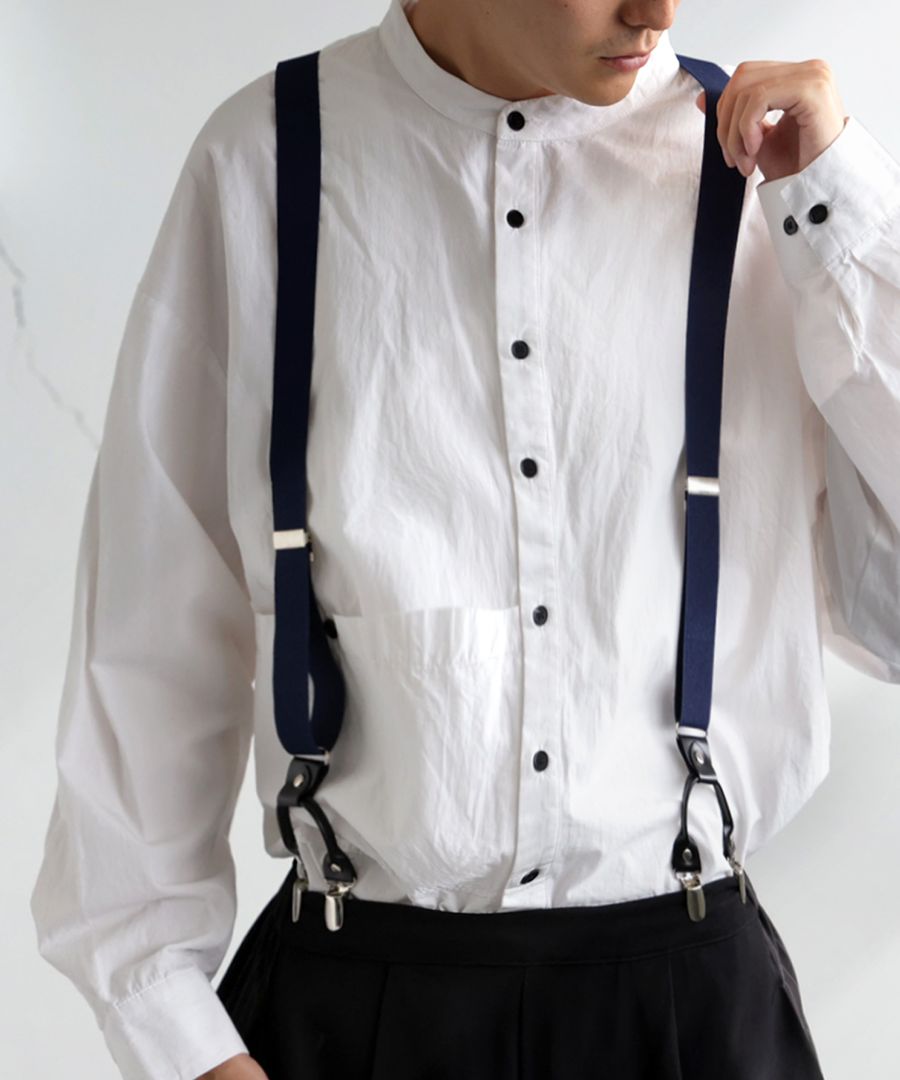 落ち着きのある色合いで、どんなコーデにも合わせやすいサスペンダー。