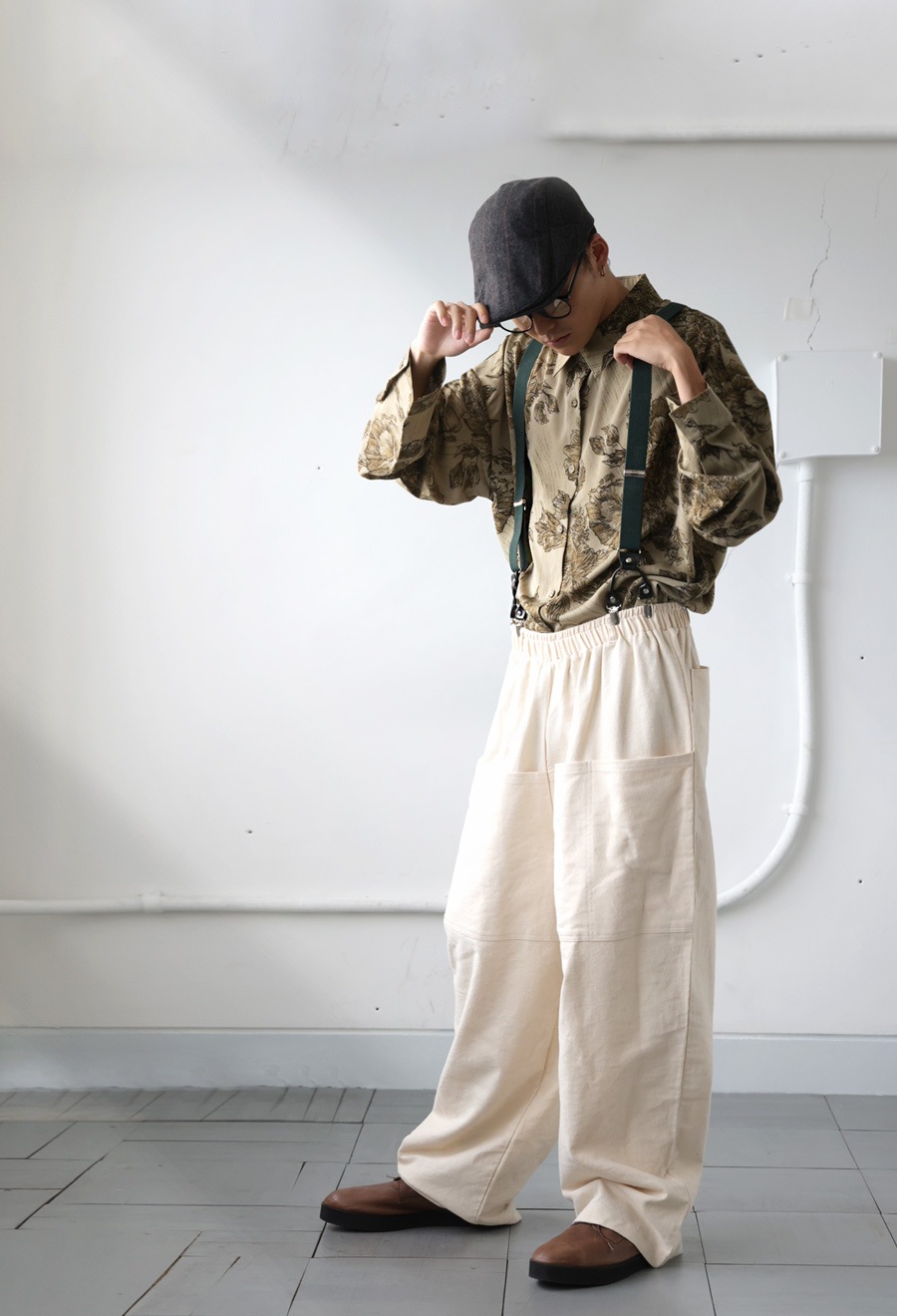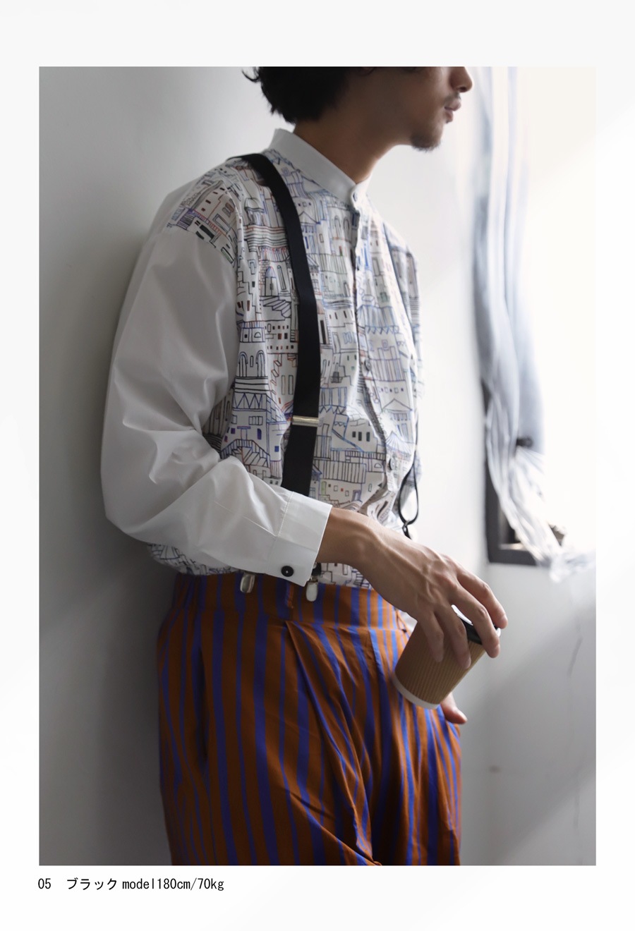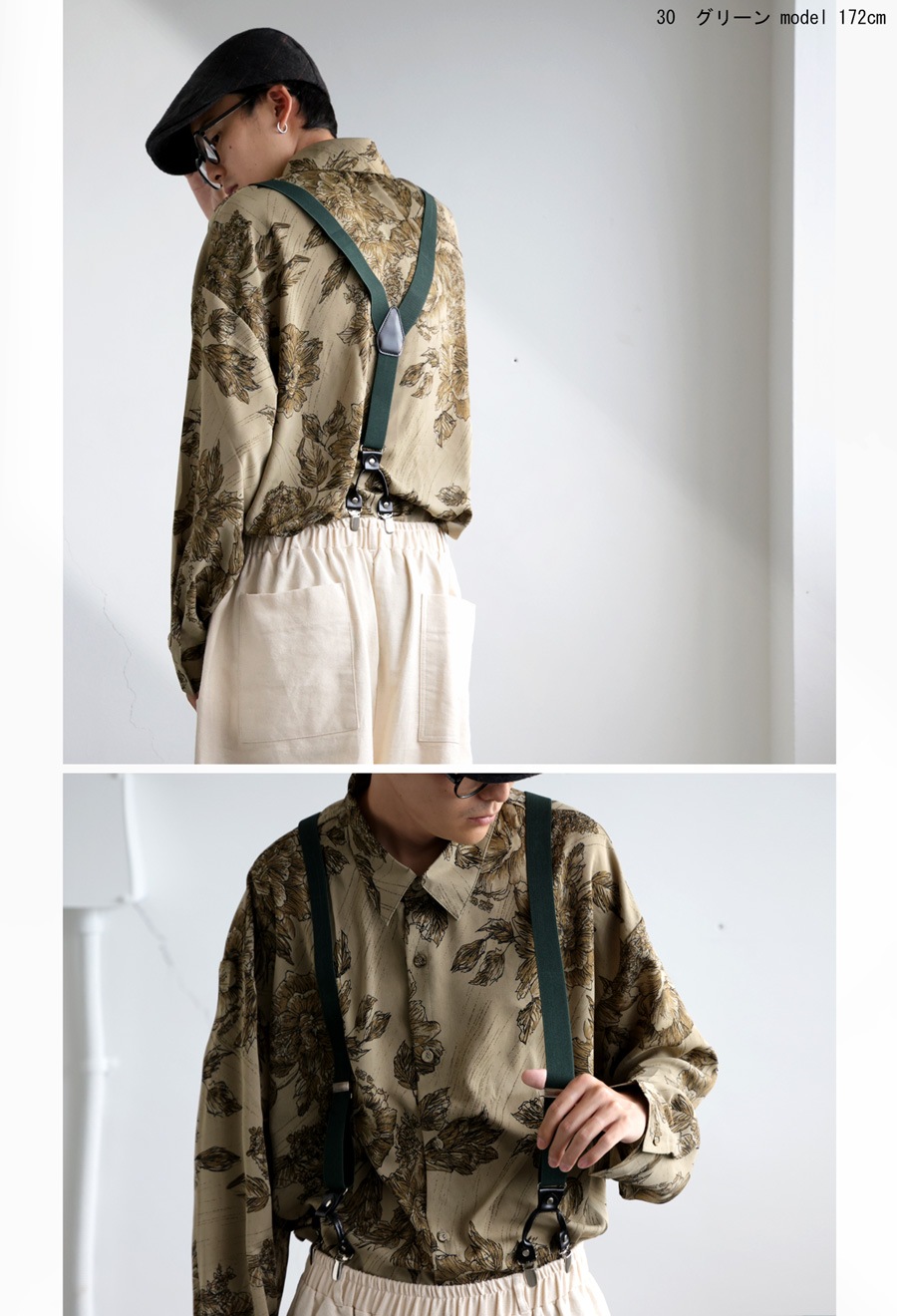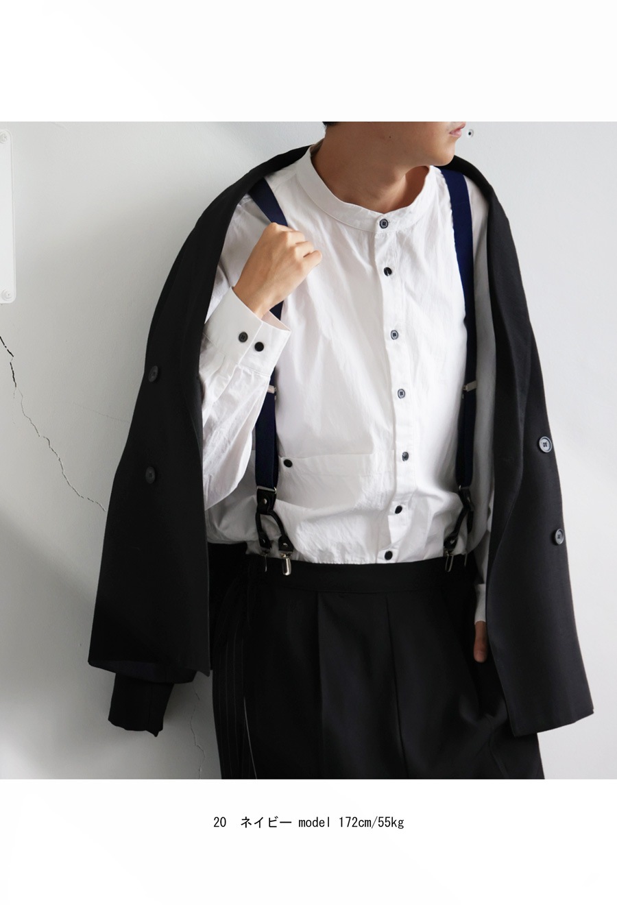 落ち着きのある色合いで、どんなコーデにも合わせやすいサスペンダー。