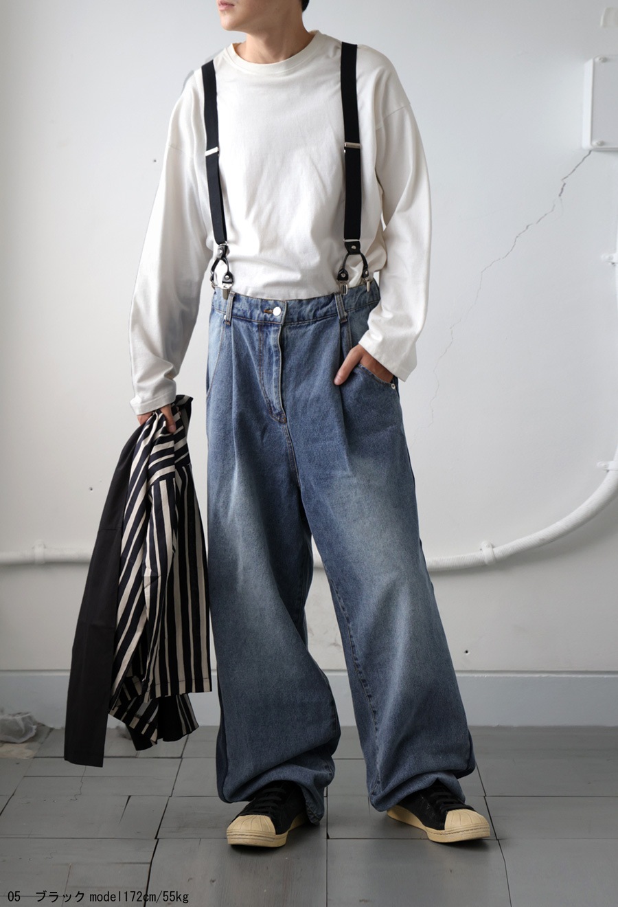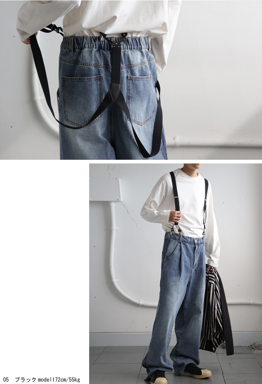 大人っぽい印象を与える『異素材サスペンダー』