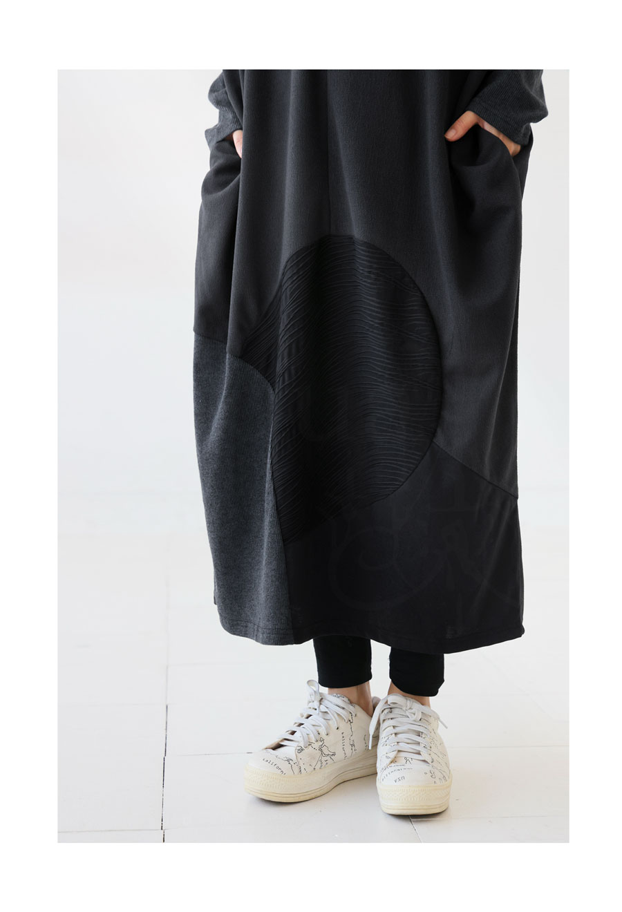 【検索ワード】円形切り替えワンピ ワンピース レディース ロング ロングワンピース 長袖 ドット 円 円形 サークル カーブ 異素材 切り替え ドッキング Vネック リブ ジョーゼット生地 ポケット付き ゆったり 個性派 シンプル きれいめ モード 体型カバー 細見え 着痩せ 大きめ 大きいサイズ コクーン マキシ丈 デザインワンピース antiqua アンティカ 大人 おしゃれ 10代 20代 30代 40代 50代 60代 春 秋 冬 お洒落 カジュアル かわいい かっこいい あんてぃか