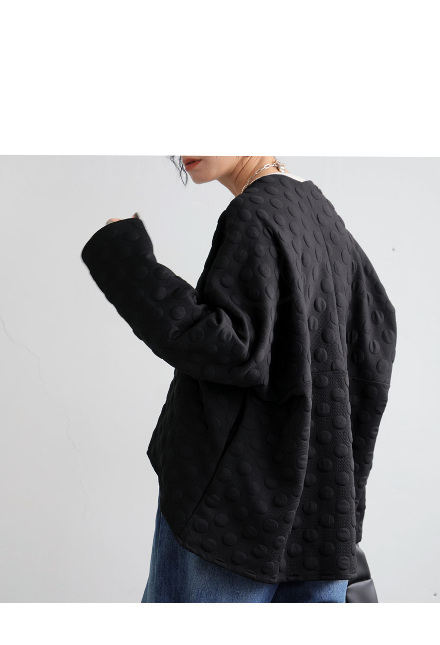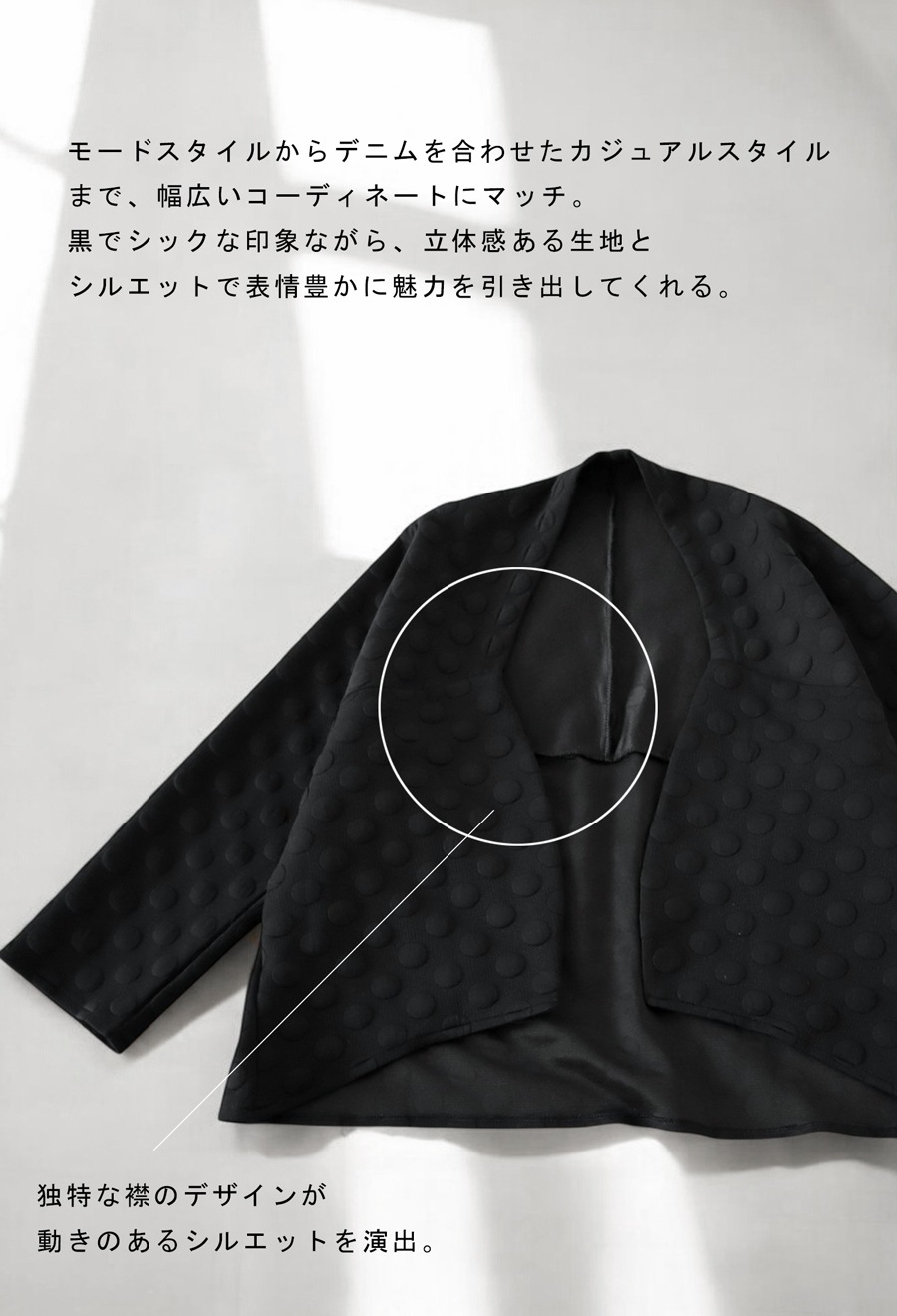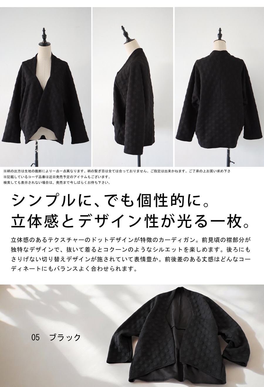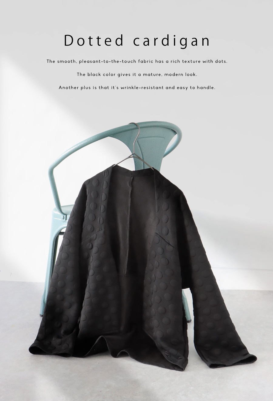 立体感のあるテクスチャーのドットデザインが特徴的なカーディガン。