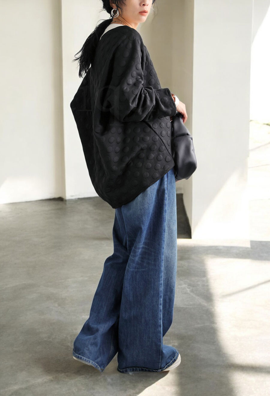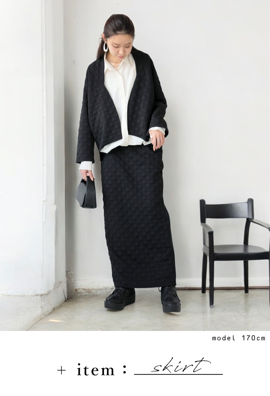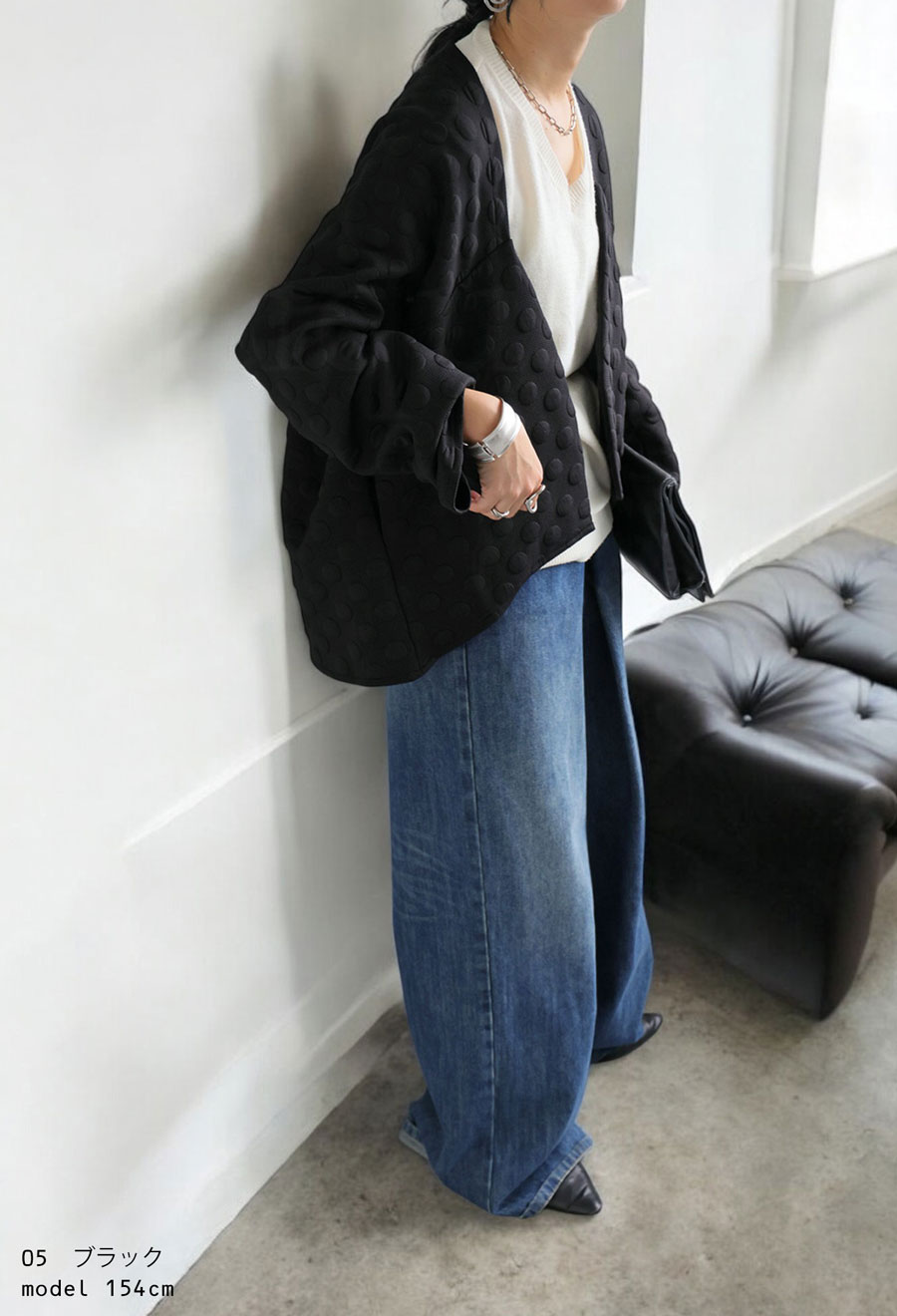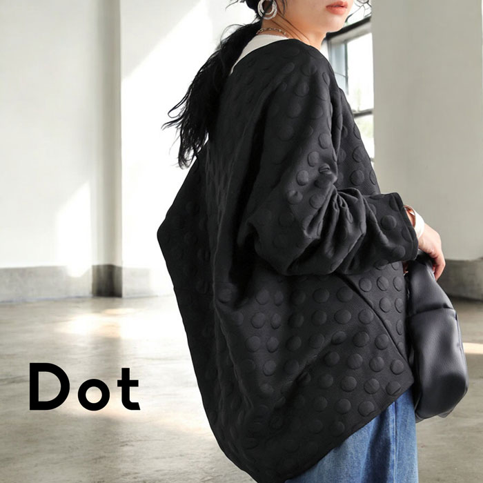 立体感のあるテクスチャーのドットデザインが特徴的なカーディガン。