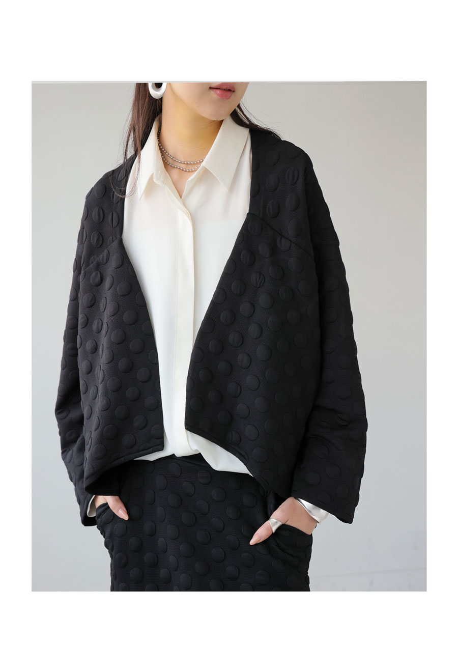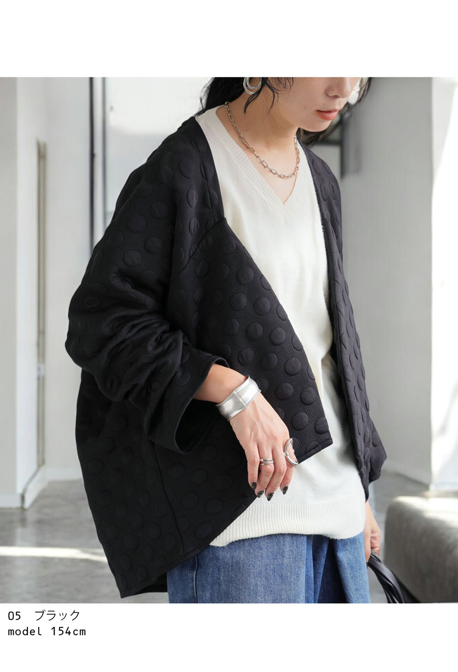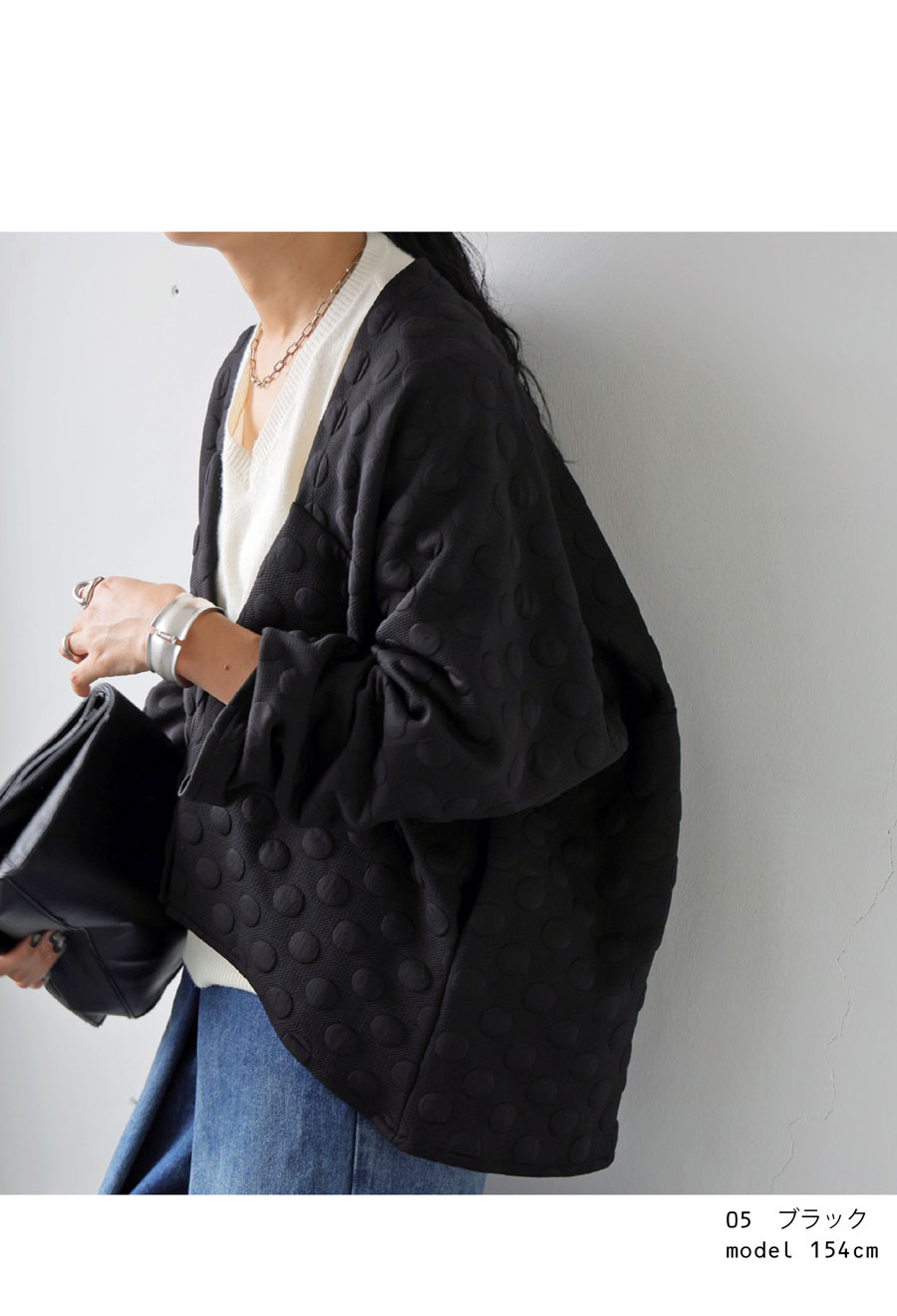 【検索ワード】ドット ぽこぽこカーデ カーディガン レディース トップス 羽織り 長袖 セットアップ トッパーカーデ コクーンシルエット コクーン 立体感 凹凸 ぽこぽこ 切り替え ドット柄 丸 円 前開き ノーカラー 前後差 ゆったり シンプル きれいめ 上品 高級感 モード 体型カバー 細見え 着痩せ 大きめ 大きいサイズ ショート丈 軽アウター ライトアウター antiqua アンティカ 大人 おしゃれ 10代 20代 30代 40代 50代 60代 秋 冬 お洒落 カジュアル かわいい かっこいい あんてぃか
