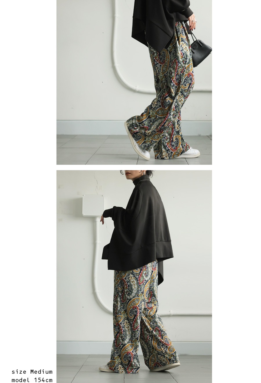 ラクな穿き心地と洒落見えどちらも叶えるペイズリー柄パンツ。