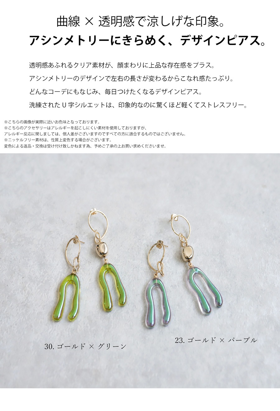 【検索ワード】クリアカラーピアス ピアス レディース アクセサリー ジュエリー キャッチ スタッド 大ぶり ボリューム デザイン 透明感 U字シルエット クリア カラーアクセ アレルギー対応 ニッケルフリー 金属アレルギー 低アレルギー 揺れる 個性派 アクセント 上品 アクセ ジュエリー 両耳用 普段使い フォーマル 結婚式 二次会 パーティー オケージョン ゴールド パープル グリーン 金 紫 緑 antiqua アンティカ 大人 おしゃれ 10代 20代 30代 40代 50代 60代 春 夏 秋 冬 オールシーズン お洒落 カジュアル かわいい かっこいい あんてぃか