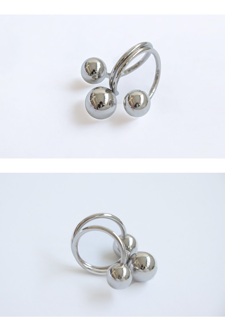 メタリックな球体がアクセントになる、洒落感高まるデザインリング。