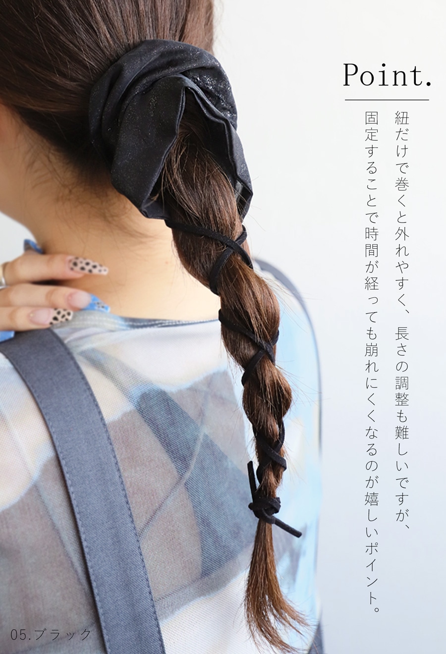 束ねた髪にカフスを引っかけるだけなので、不器用さんでも安心!