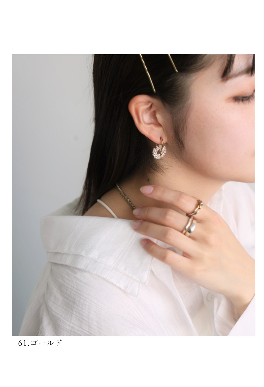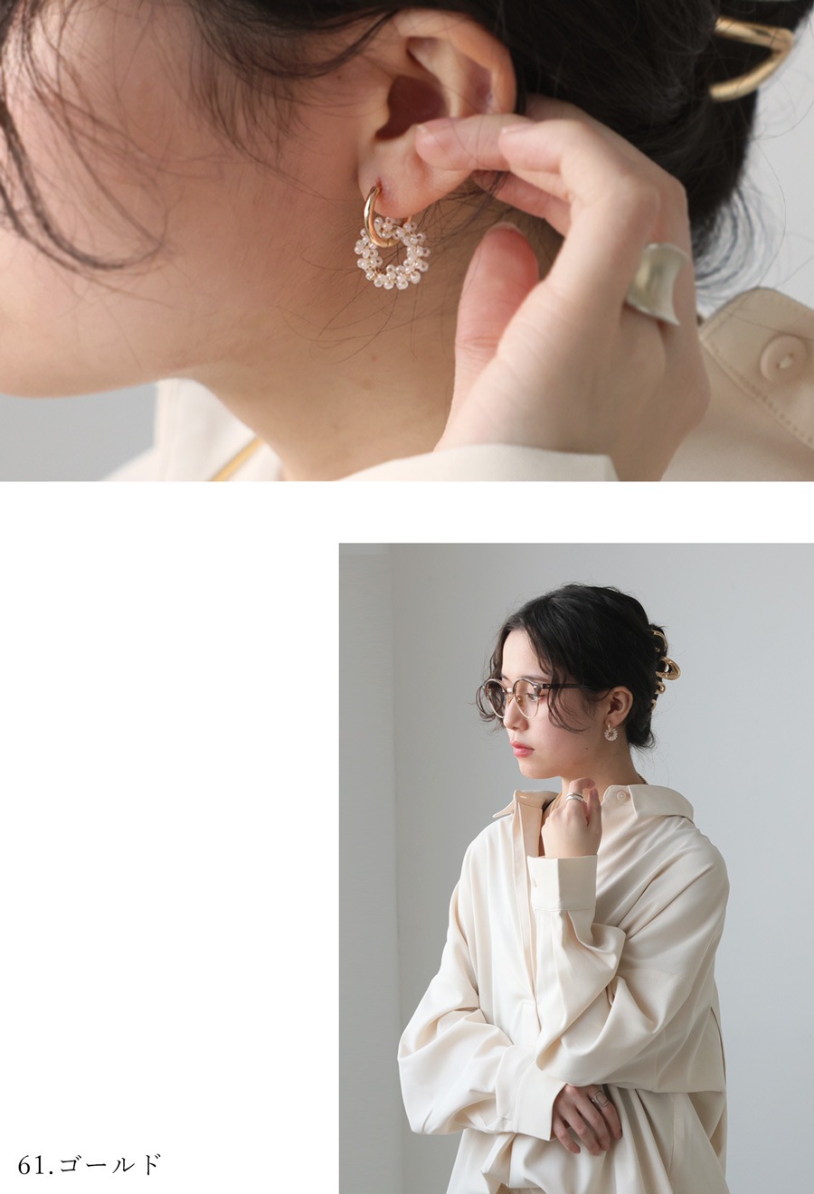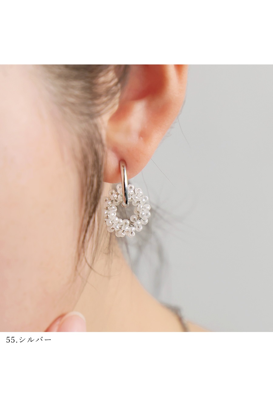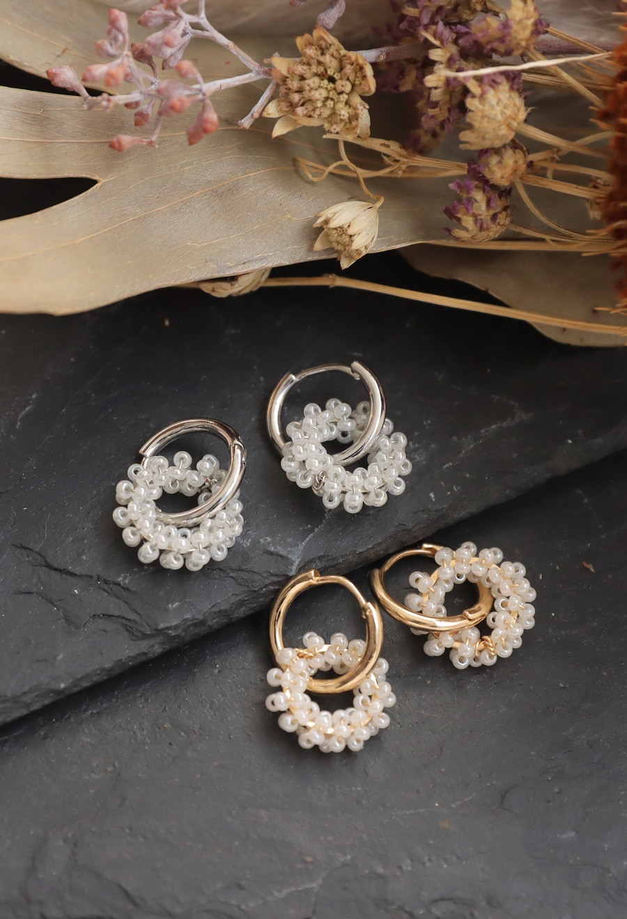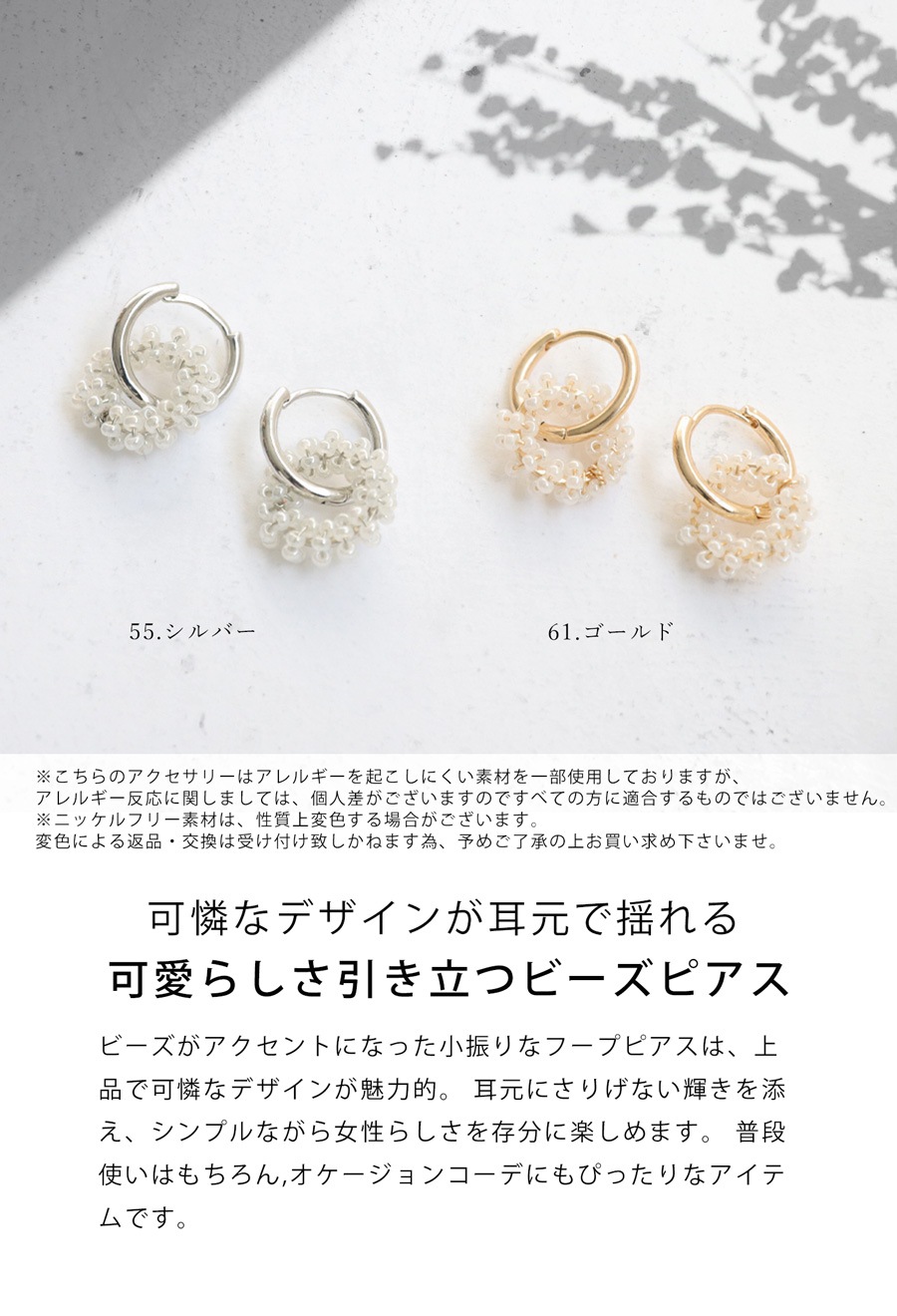 ビーズがアクセントになった、小ぶりなフープピアス。