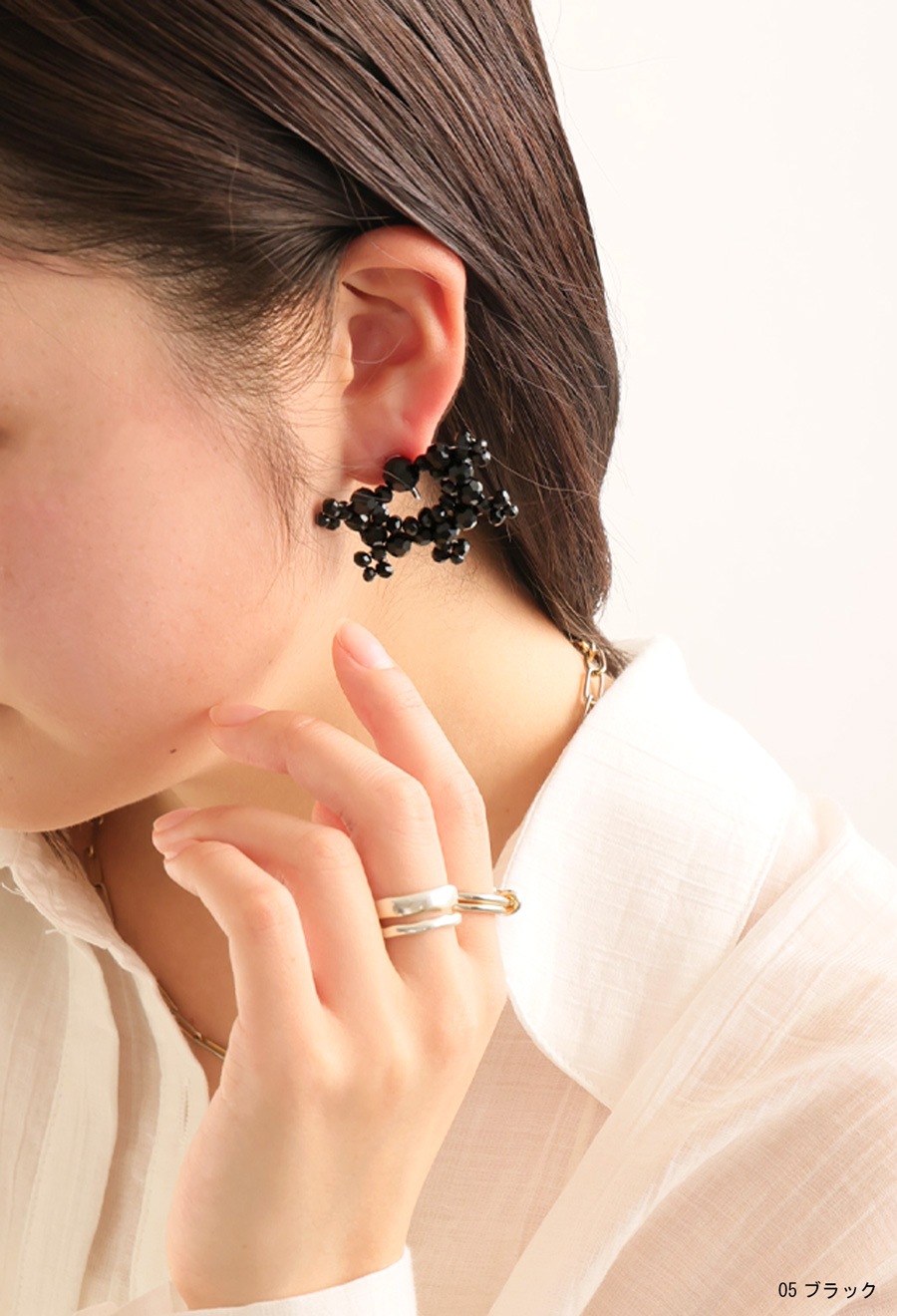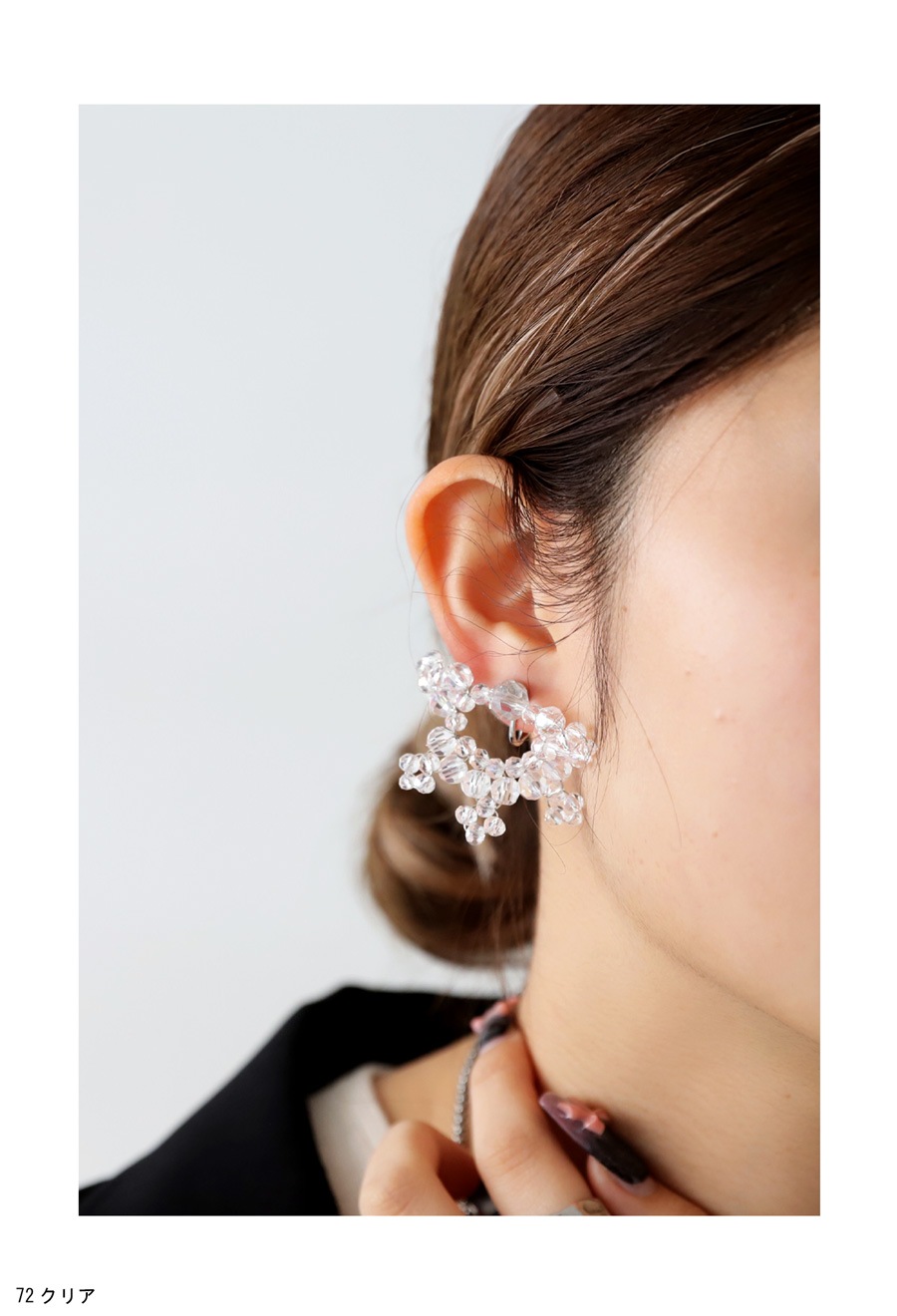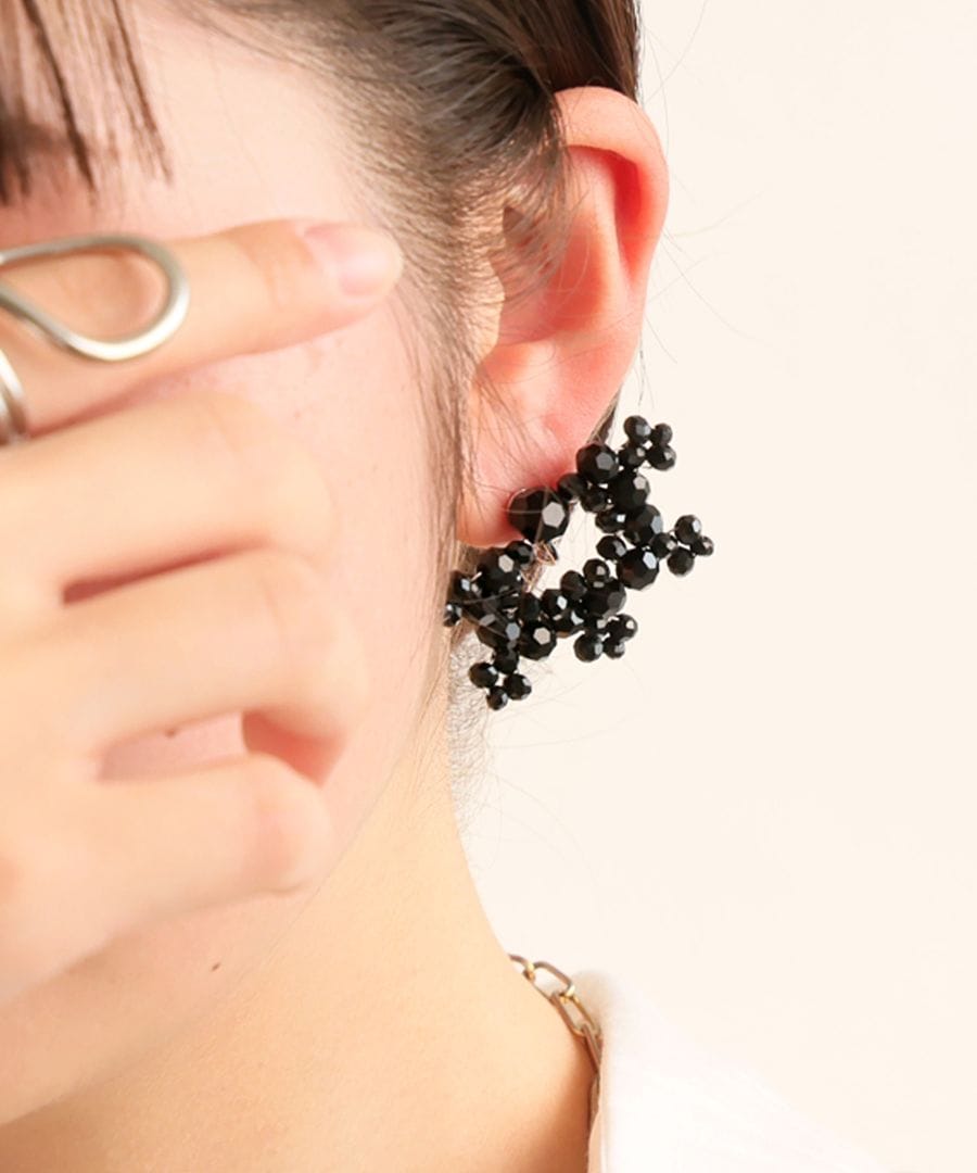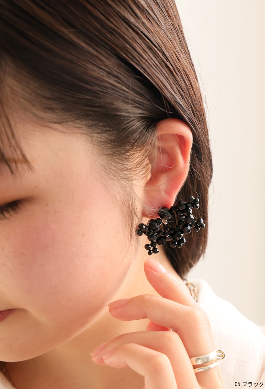 揺れるたびにキラキラと輝く、上品な印象のビーズイヤリング。