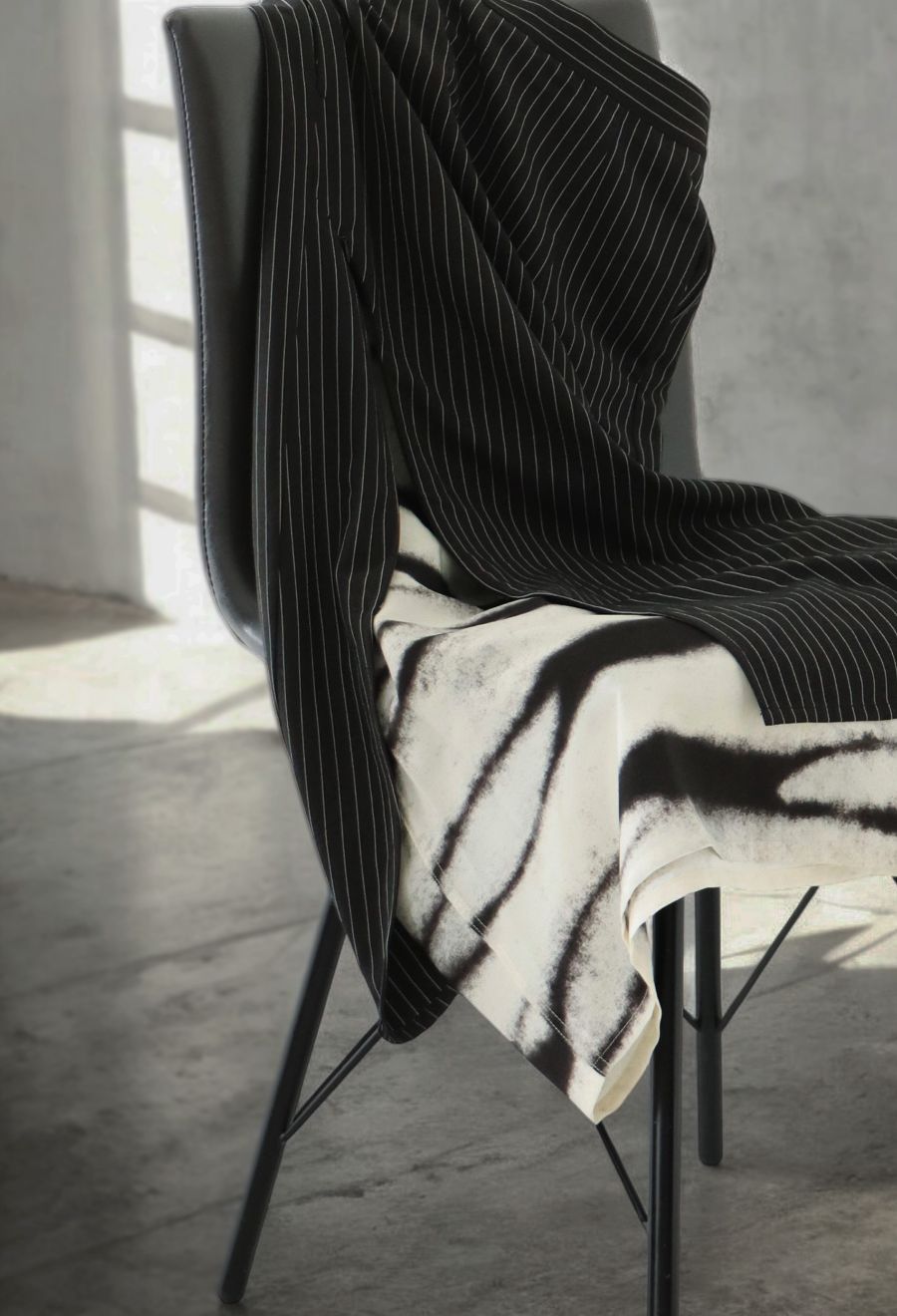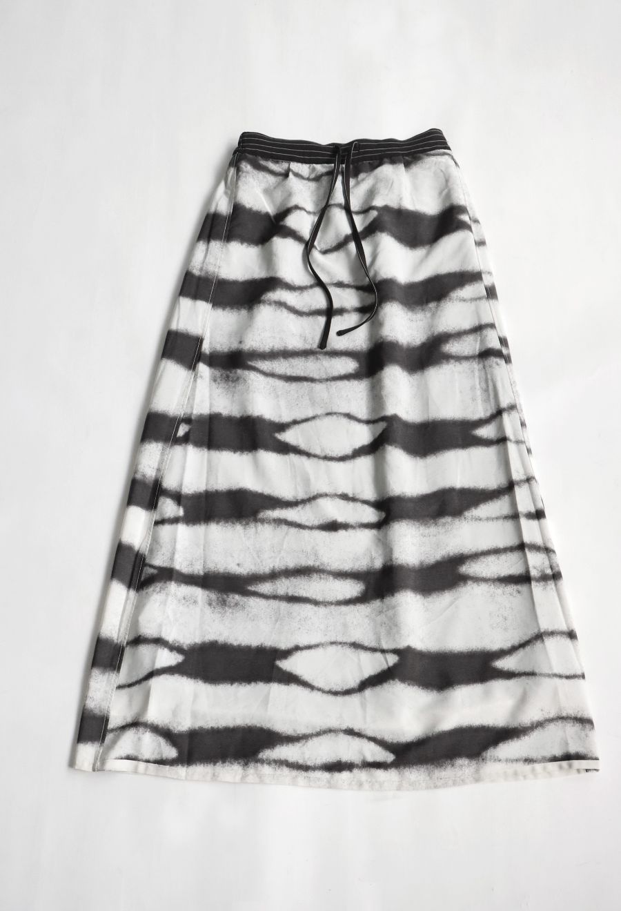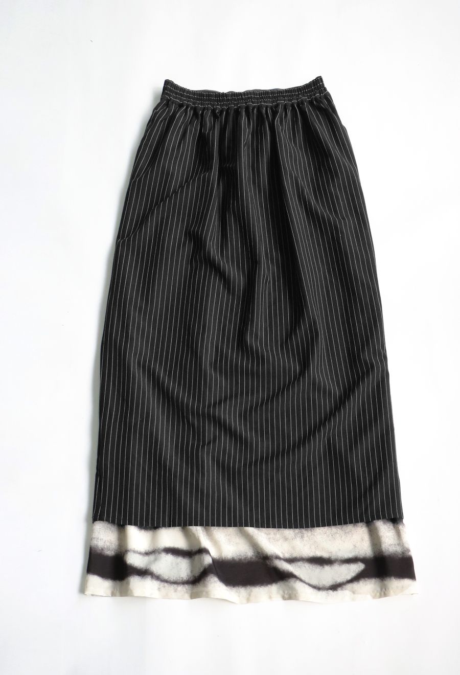 上品なピンストライプと個性が光るグラデーション柄を組み合わせた、3WAY仕様のロングスカートです。