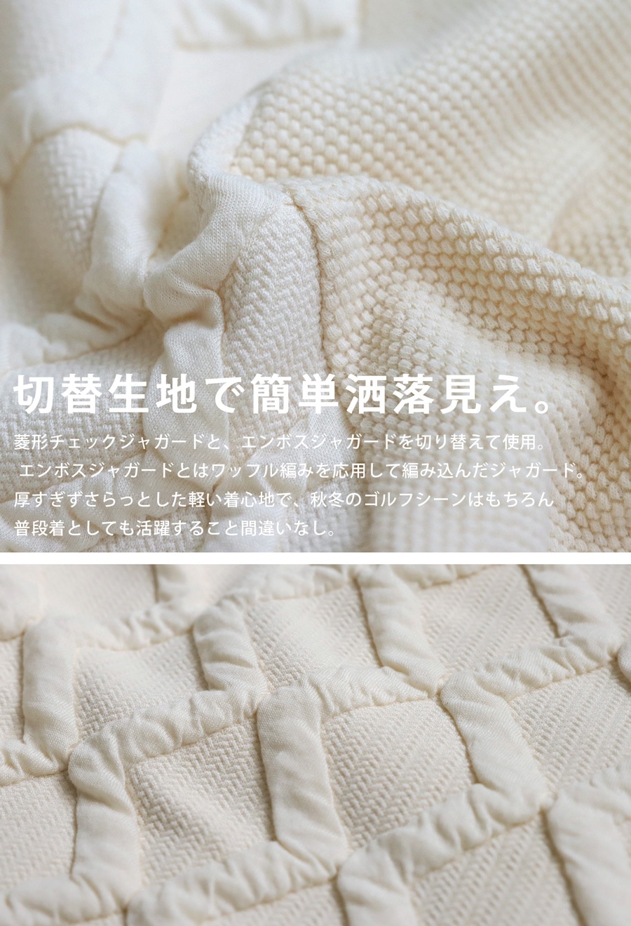 ゴルフはもちろん、普段のコーデにも合わせたくなるトレンド感のある一枚。