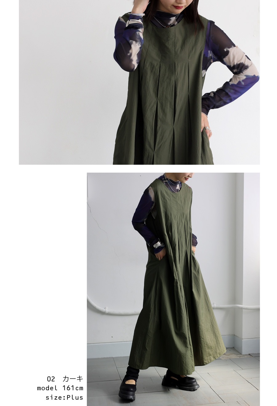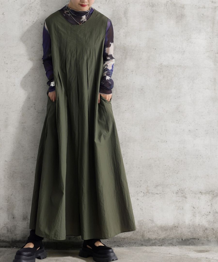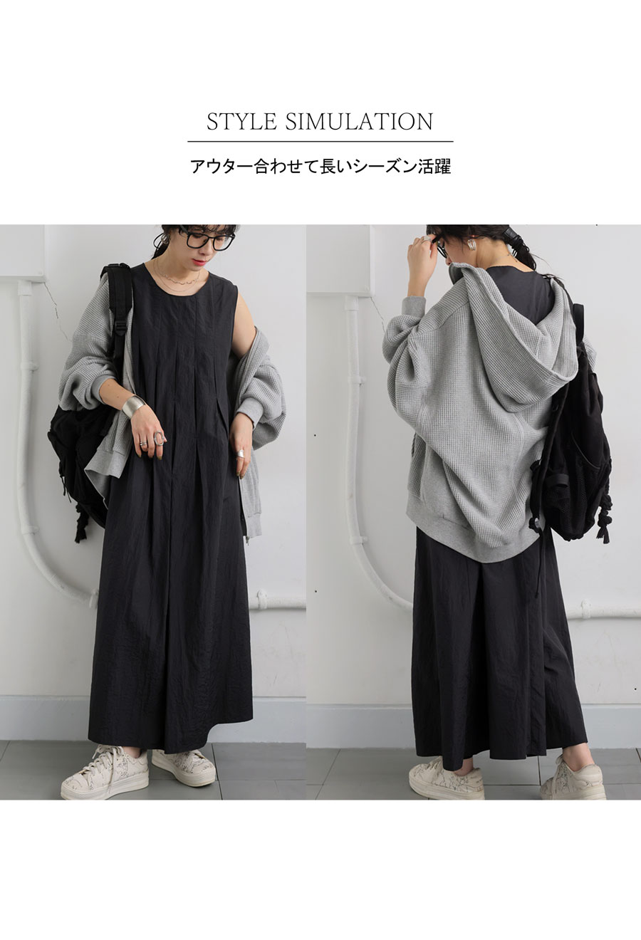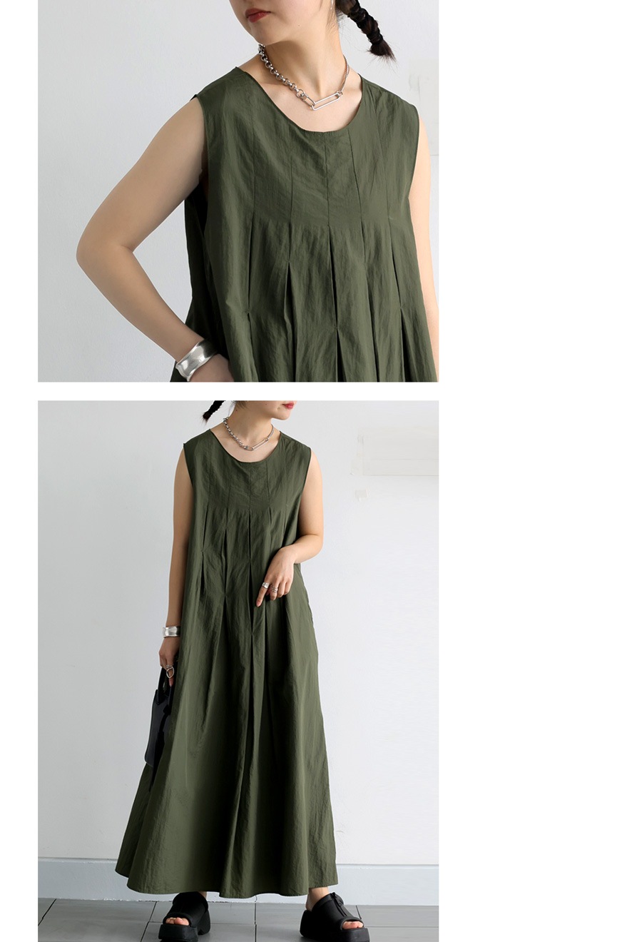 【検索ワード】タックデザインワンピース ワンピ レディース ロング 無地 ノースリーブ 袖なし 丸首 ラウンドネック プルオーバー ポケット付き タック ド絵r-プ ゆったり ナイロン シンプル きれいめ 上品 高級感 レイヤード 重ね着 シワになりにくい 通気性 ハリ感 薄手 ナチュラル ハンサム 大きめ 旅行 ロングワンピース ブラック 黒 カーキ サイズ展開 Regular Plus antiqua アンティカ 大人 おしゃれ 10代 20代 30代 40代 50代 60代 春 夏 秋 冬 オールシーズン お洒落 カジュアル かわいい かっこいい あんてぃか