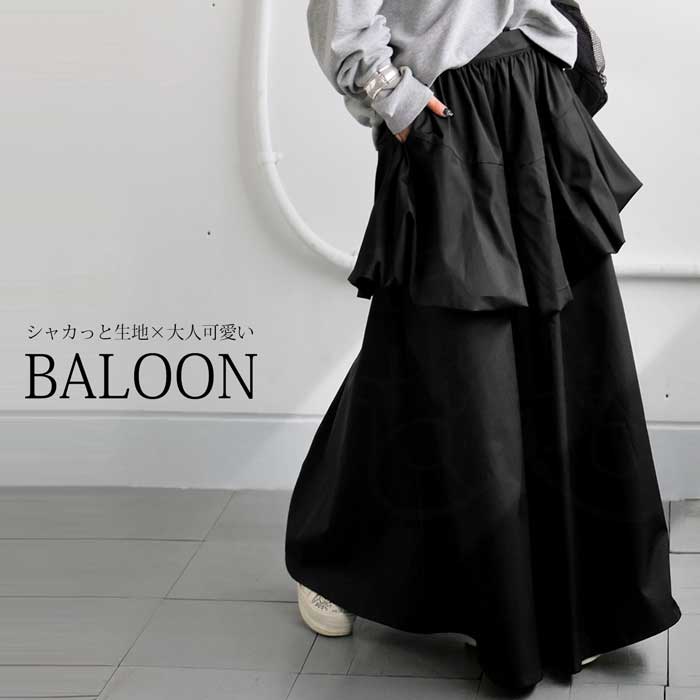 【検索ワード】バルーンスカート スカート レディース ボトムス ロング 無地 ドッキングスカート ティアード バルーンシルエット ギャザー ボリューム ふんわり 前フラット 後ろゴム ポケット付き ゆったり モード オールブラック ブラックコーデ 立体感 シャカシャカ 体型カバー 細見え 着痩せ 大きめ 大きいサイズ デザインスカート ロングスカート マキシ丈 antiqua アンティカ 大人 おしゃれ 10代 20代 30代 40代 50代 60代 春 夏 秋 冬 オールシーズン お洒落 カジュアル かわいい かっこいい あんてぃか
