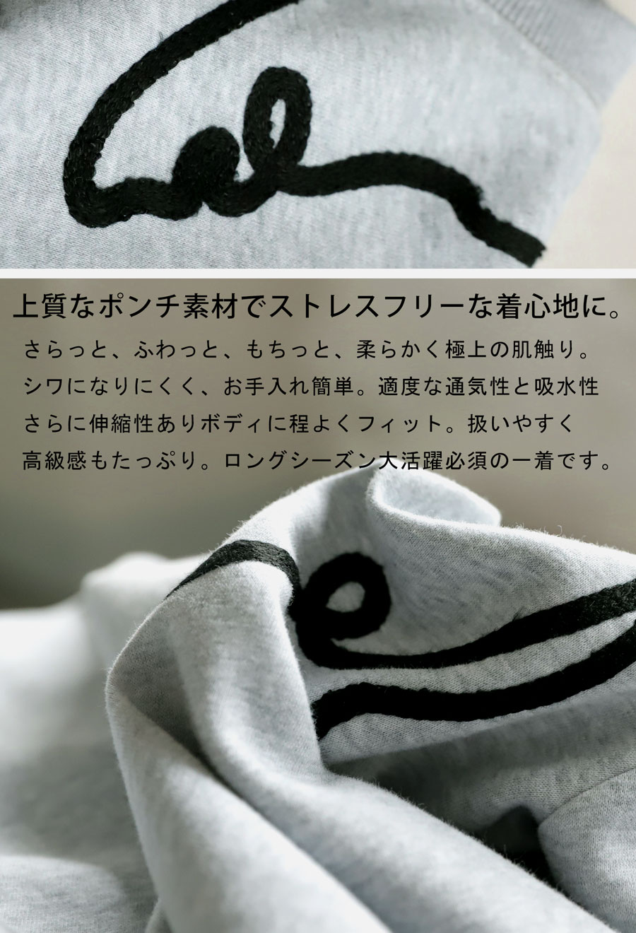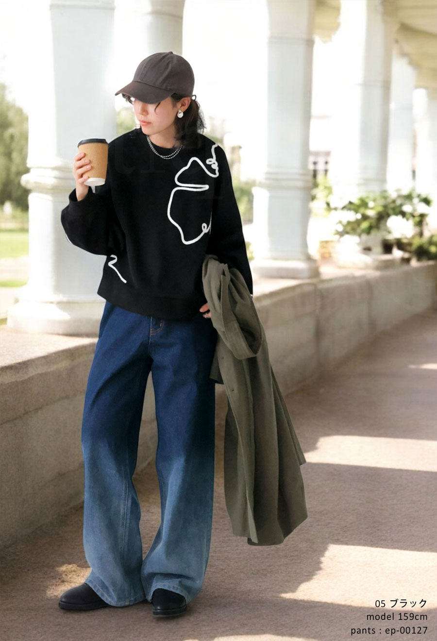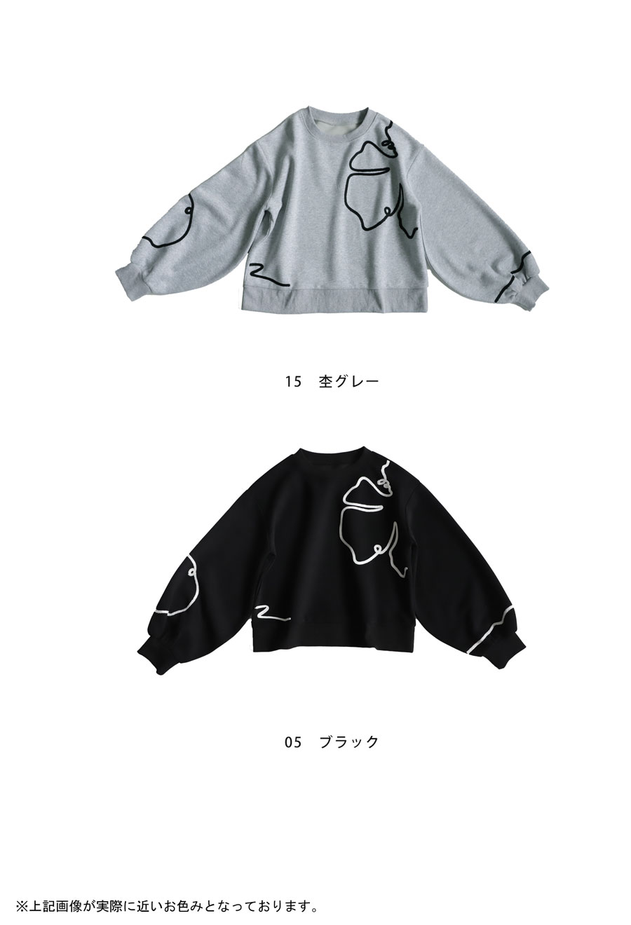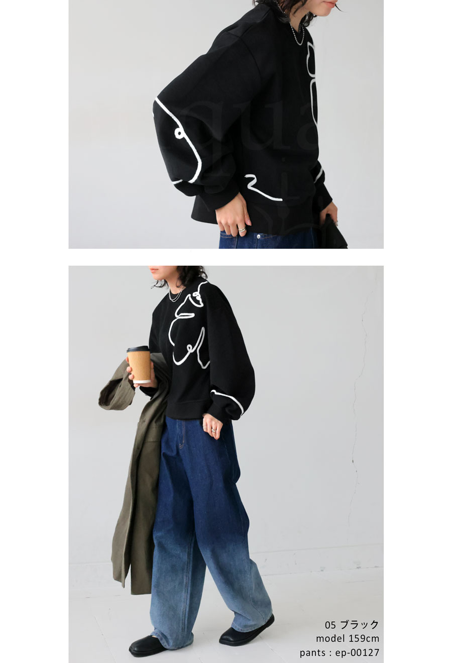 ボリュームたっぷりな袖が、ポンチ素材と相性バッチリなトレーナー。