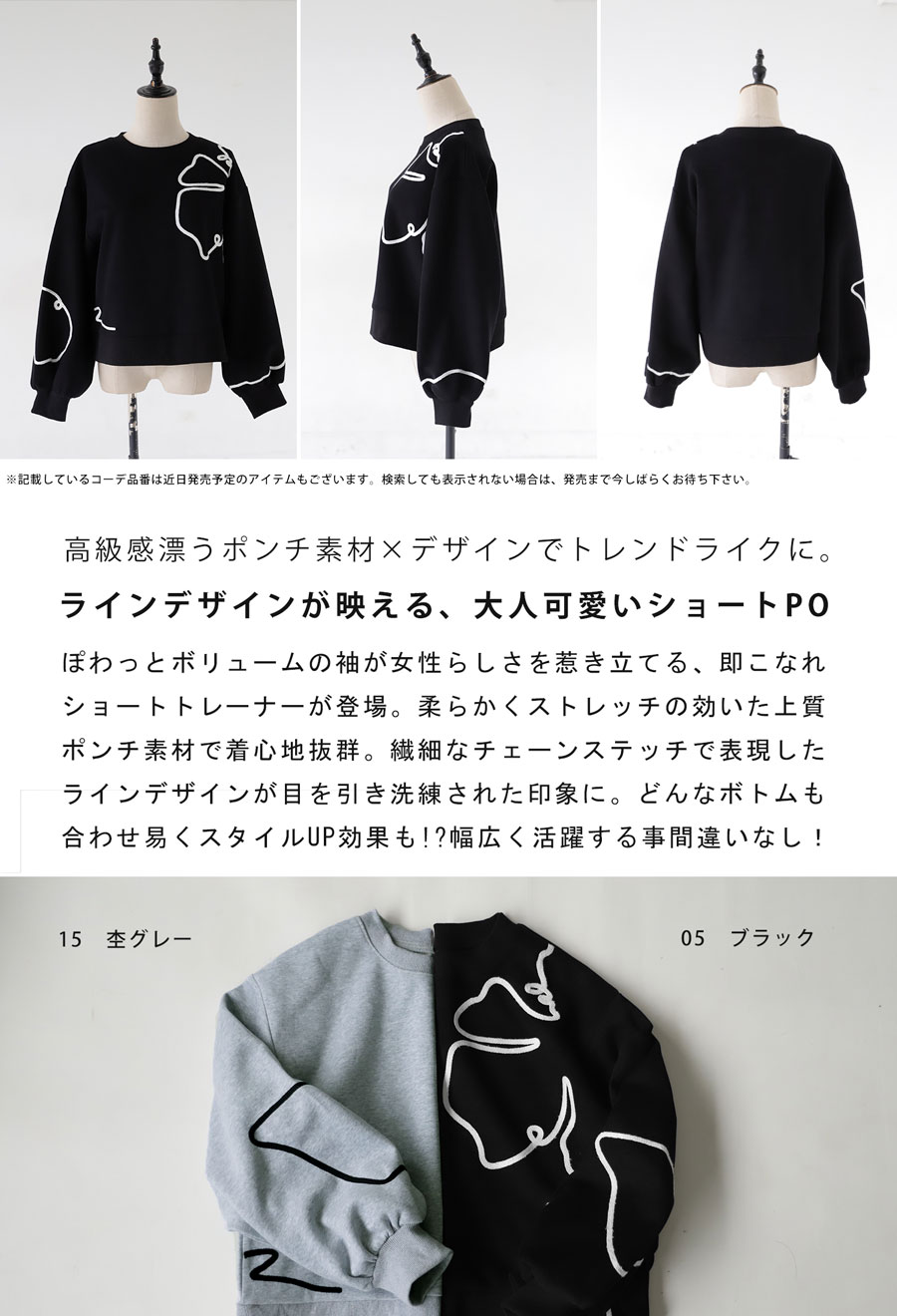 【検索ワード】ポンチ ショートトレーナー トップス レディース トレーナー 長袖 ショート丈 丸首 クルーネック ポンチ素材 ポンチ生地 リボンテープ ライン ラインデザイン チェーンステッチ 無地 ボリューム袖 ゆったり シンプル きれいめ 上品 高級感 ハイセンス モード 体型カバー 細見え 着痩せ 脚長効果 足長 大きめ 大きいサイズ スウェット デザイントップス antiqua アンティカ 大人 おしゃれ 10代 20代 30代 40代 50代 60代 春 秋 冬 お洒落 カジュアル かわいい かっこいい あんてぃか
