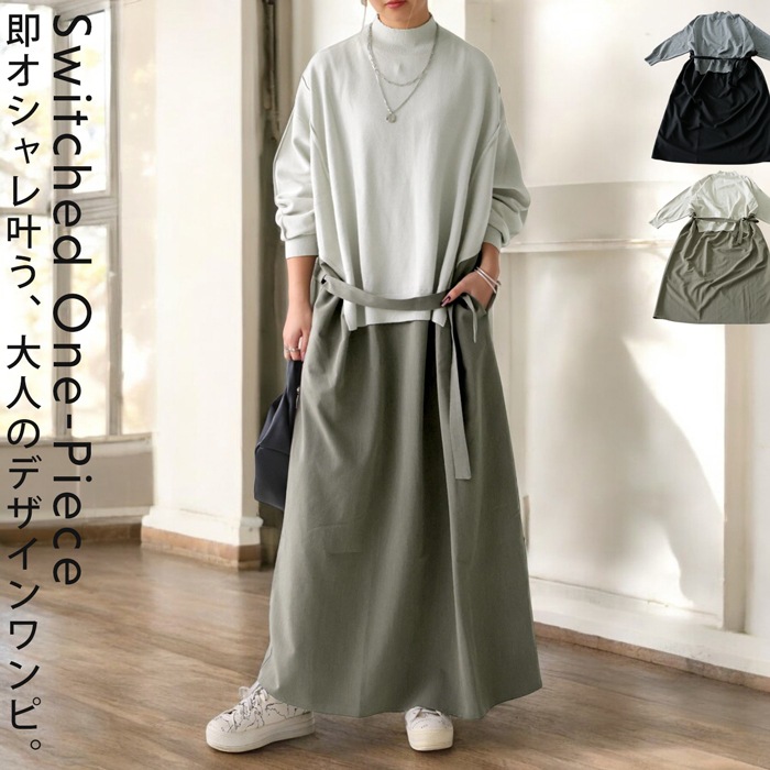 360度着映える、二種類の生地を組み合わせた切り替えワンピース。