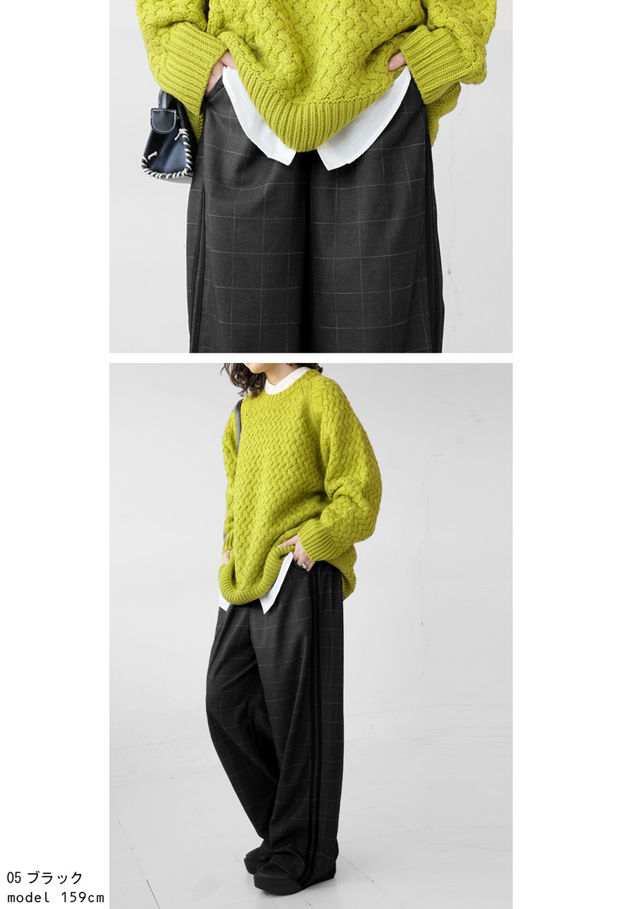 【検索ワード】チェックラインパンツ パンツ レディース ボトムス ロング 長ズボン セットアップ チェック柄 柄パンツ 柄ボトムス 柄 ライン ラインパンツ タック ストレート ワイド ポケット付き ベルトループ ゆったり サイズ展開 Medium Large シンプル きれいめ 上品 スポーティ モード 体型カバー 細見え 着痩せ 脚長効果 足長 大きめ 大きいサイズ ロングパンツ デザインパンツ ユニセックス antiqua treecafe アンティカ ツリーカフェ 大人 おしゃれ 10代 20代 30代 40代 50代 60代 春 秋 冬 お洒落 カジュアル かわいい かっこいい あんてぃか