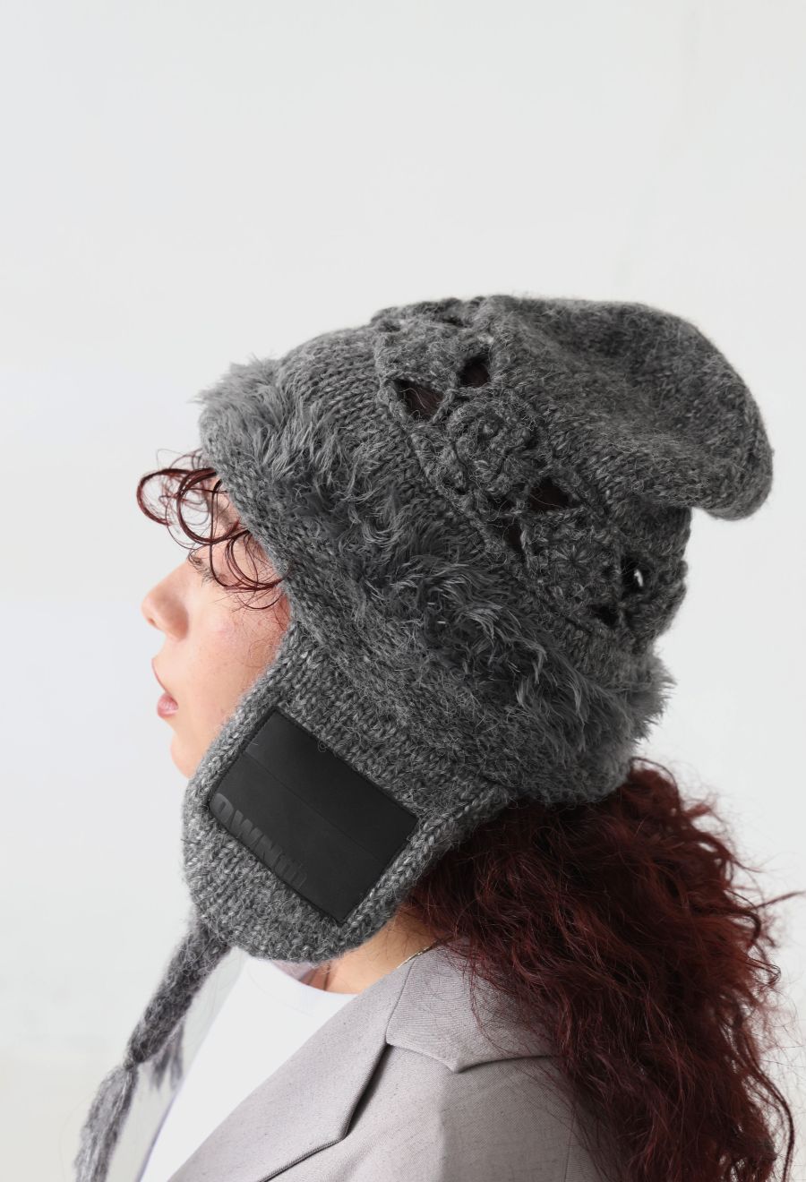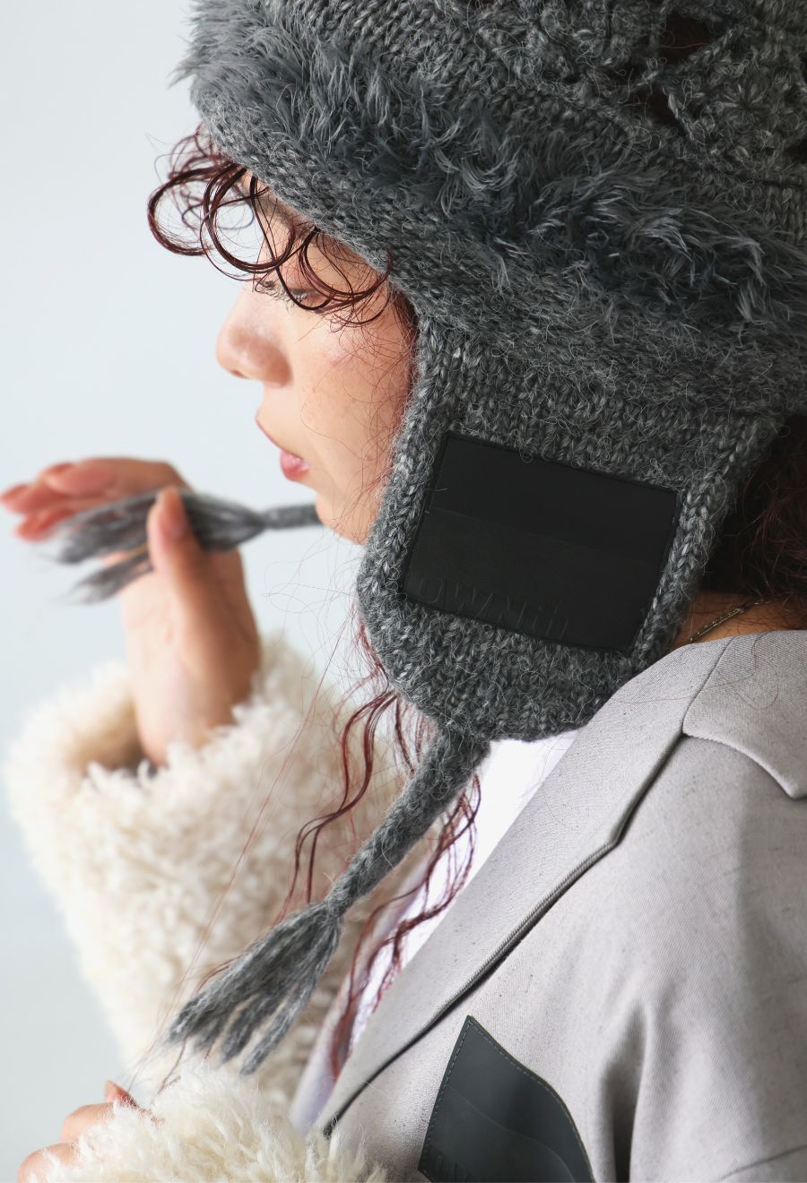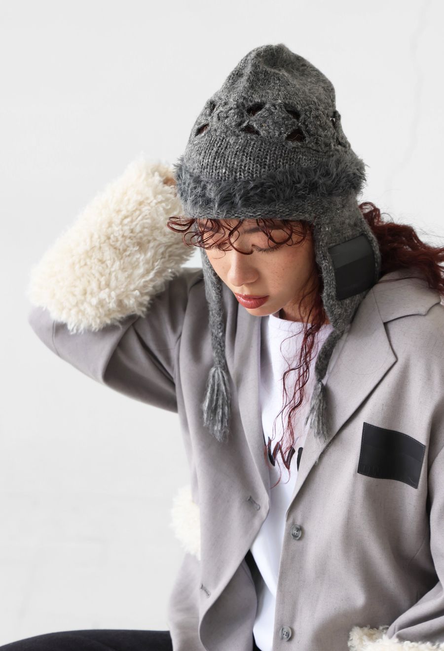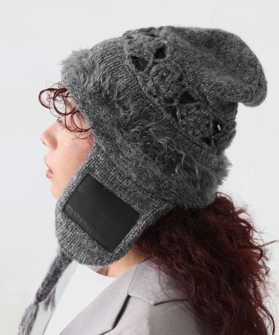 イヤーフラップ付きで耳までしっかり防寒でき、冬のスタイリングにぴったりのアイテムです。