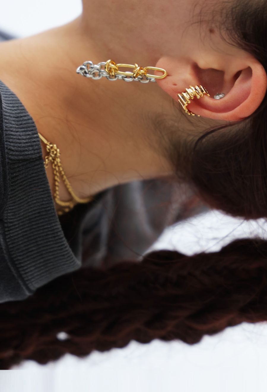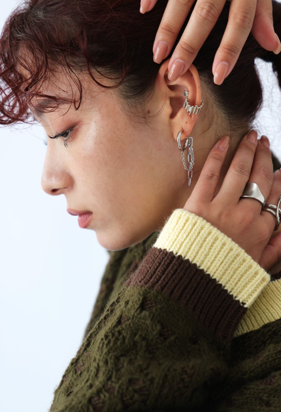 ピアスホールがなくても着けられる、ノンホールタイプのイヤーカフ。