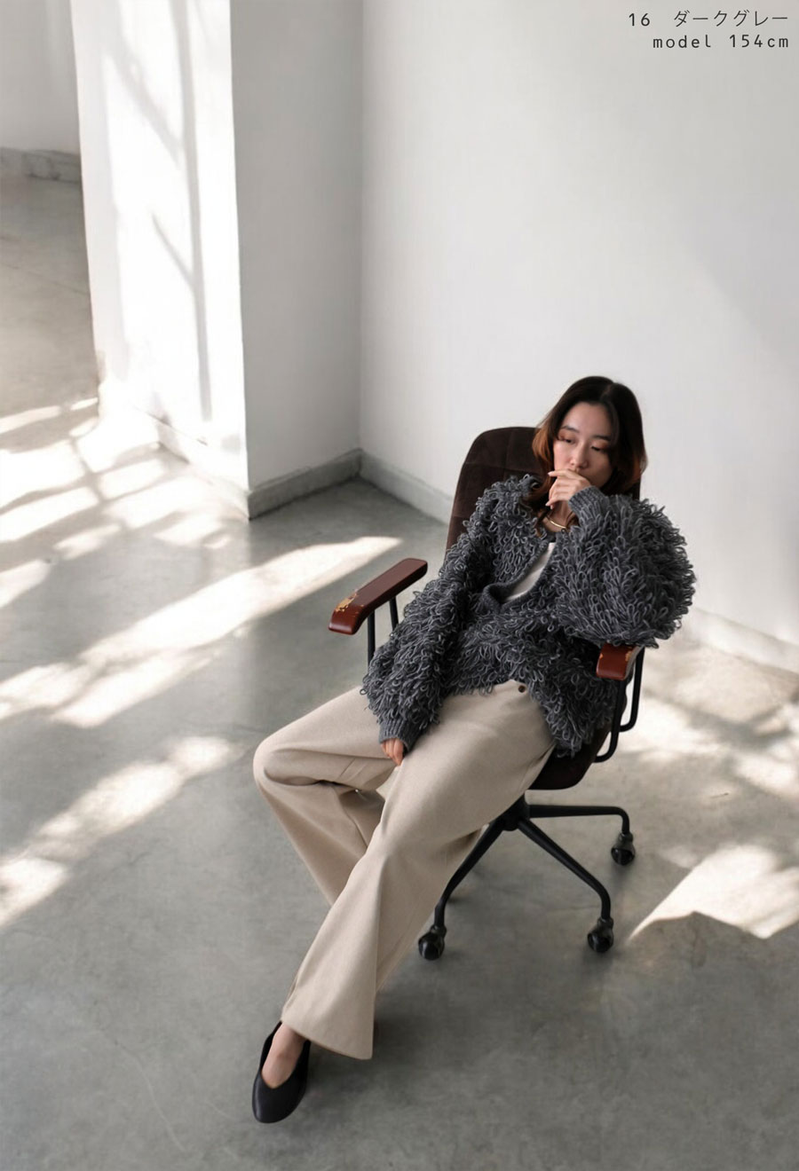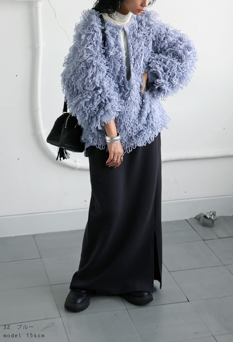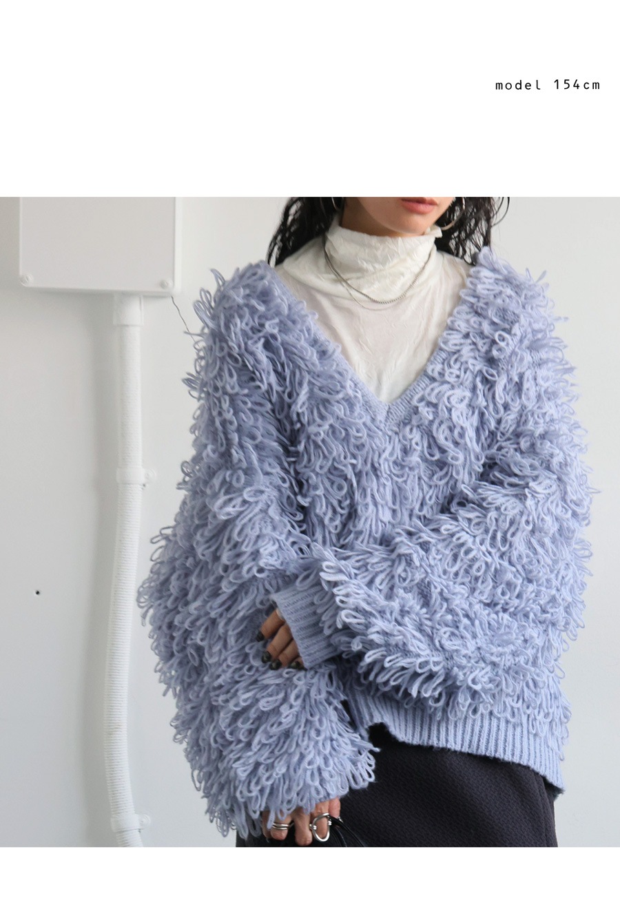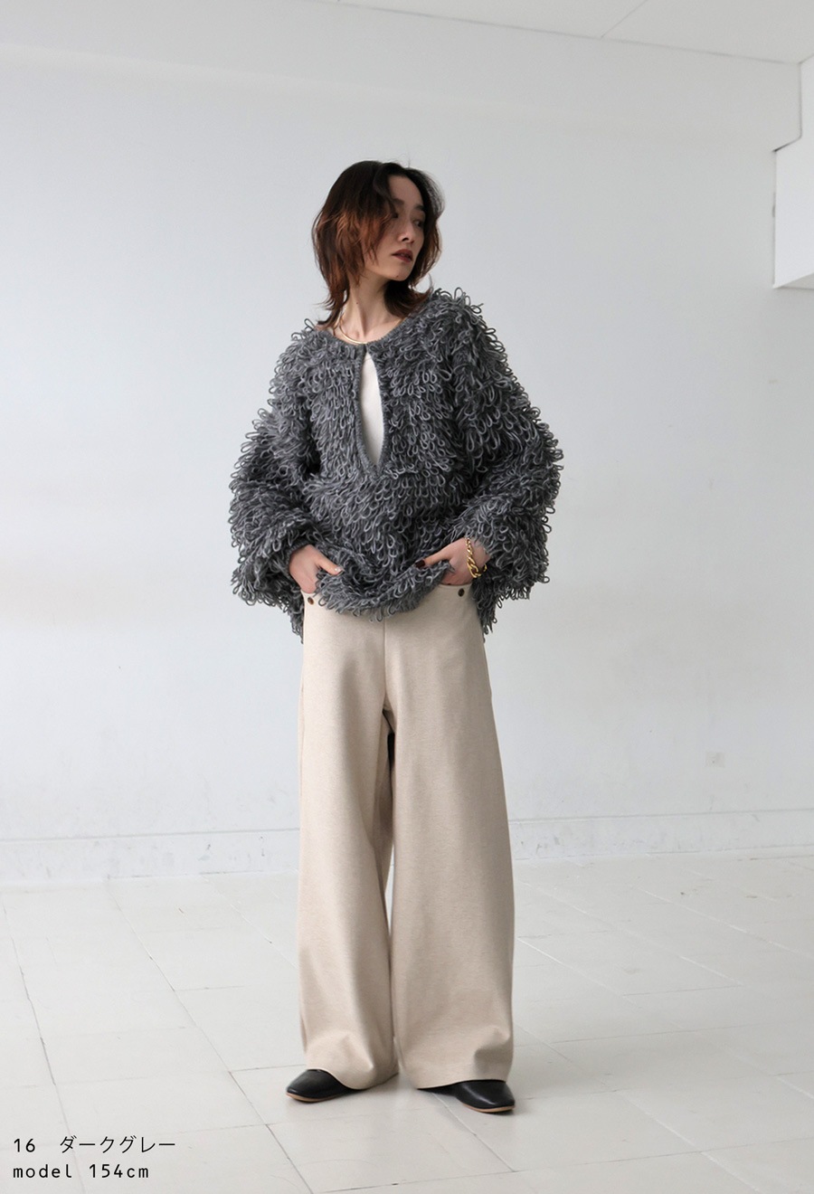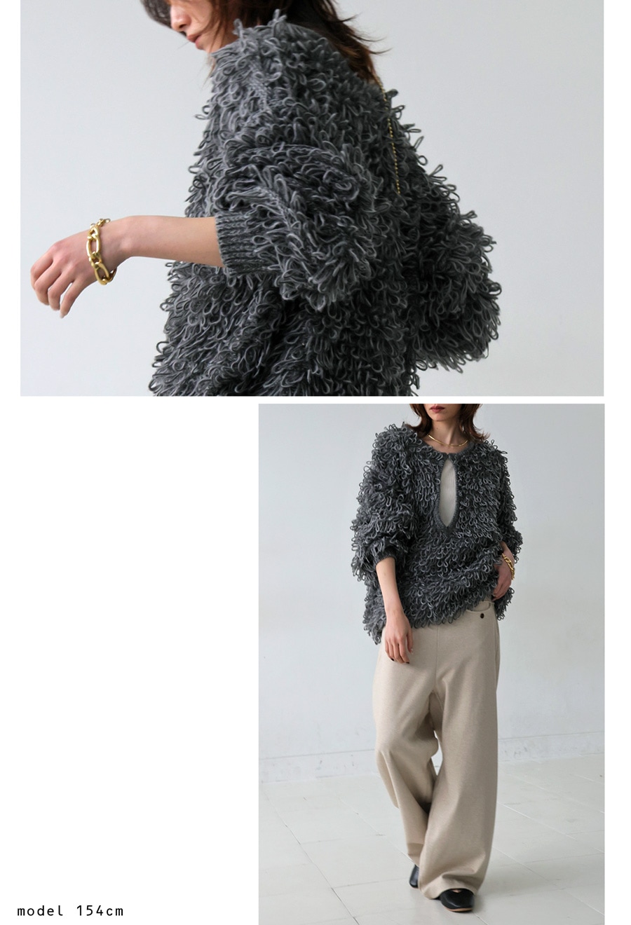 気分やコーデに合わせて自由にスタイリングが変えられるループニット。