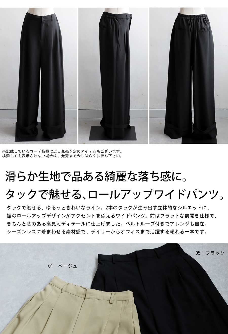 タックで魅せる『ロールアップワイドパンツ』