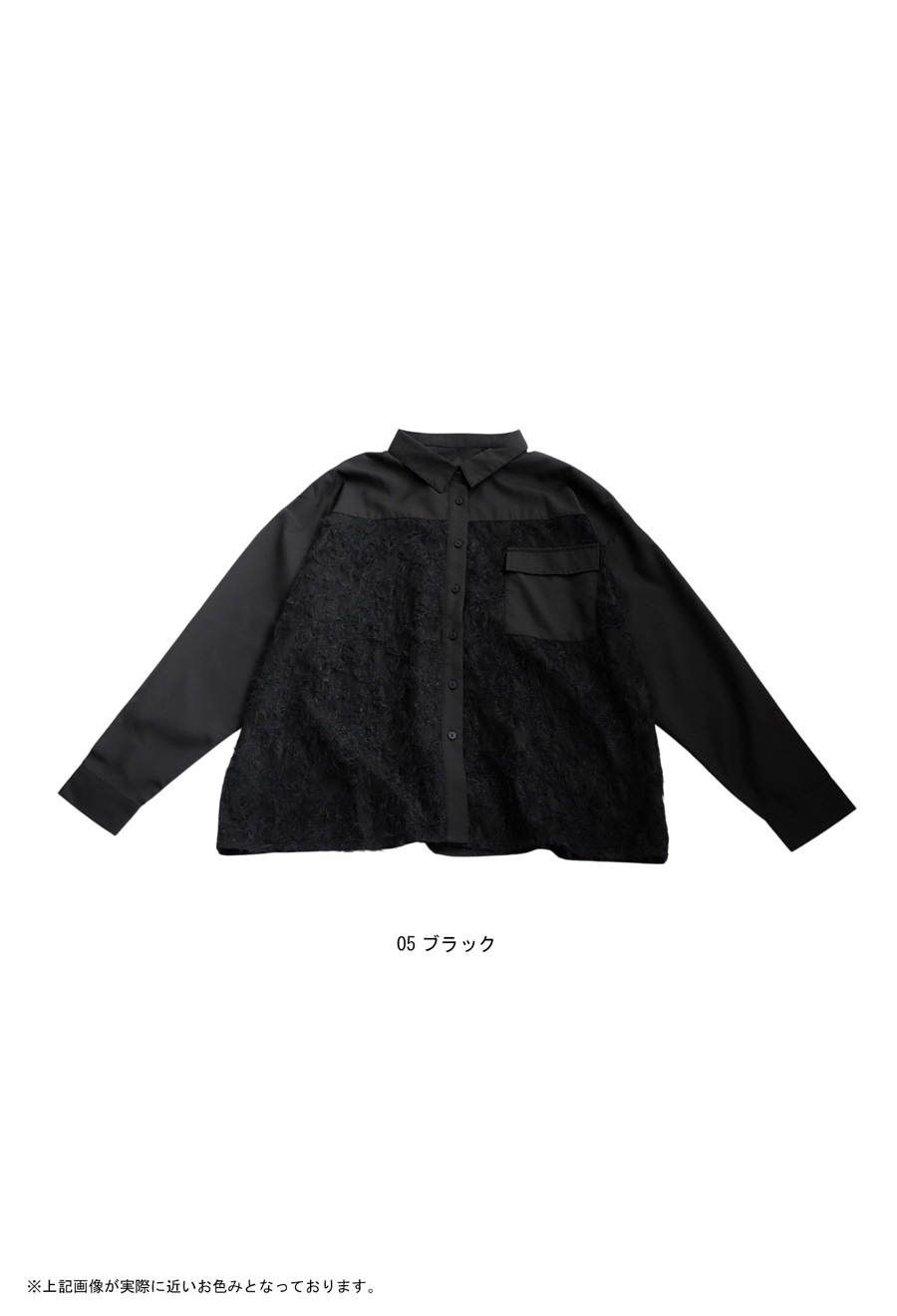ふんわりと起毛したレース生地が、優しく柔らかな印象を醸し出すシャツ。