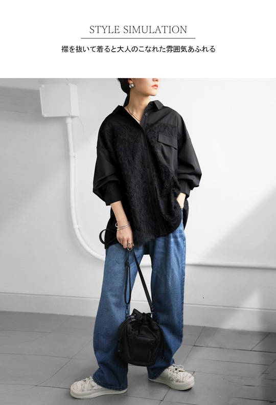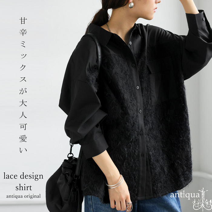 【検索ワード】レースシャツ シャツ レディース トップス 羽織り 長袖 レギュラーカラー レース 無地 ふわふわ 布帛 軽量素材 ヨーク 切り替え ダーツ ドッキング タック 前開き 胸ポケット ポケット付き 甘辛 甘辛ミックス ふわもこ 起毛 異素材 異素材切り替え ゆったり シンプル きれいめ モード 上品 高級感 モード 体型カバー 細見え 華奢見え 大きめ 大きいサイズ 繊細 洗練感 ブラウス デザインシャツ レイヤード 重ね着 起毛感 オフィス 通勤 お出かけ ブラック 黒 antiqua アンティカ 大人 おしゃれ 10代 20代 30代 40代 50代 60代 春 秋 冬 お洒落 カジュアル かわいい かっこいい あんてぃか