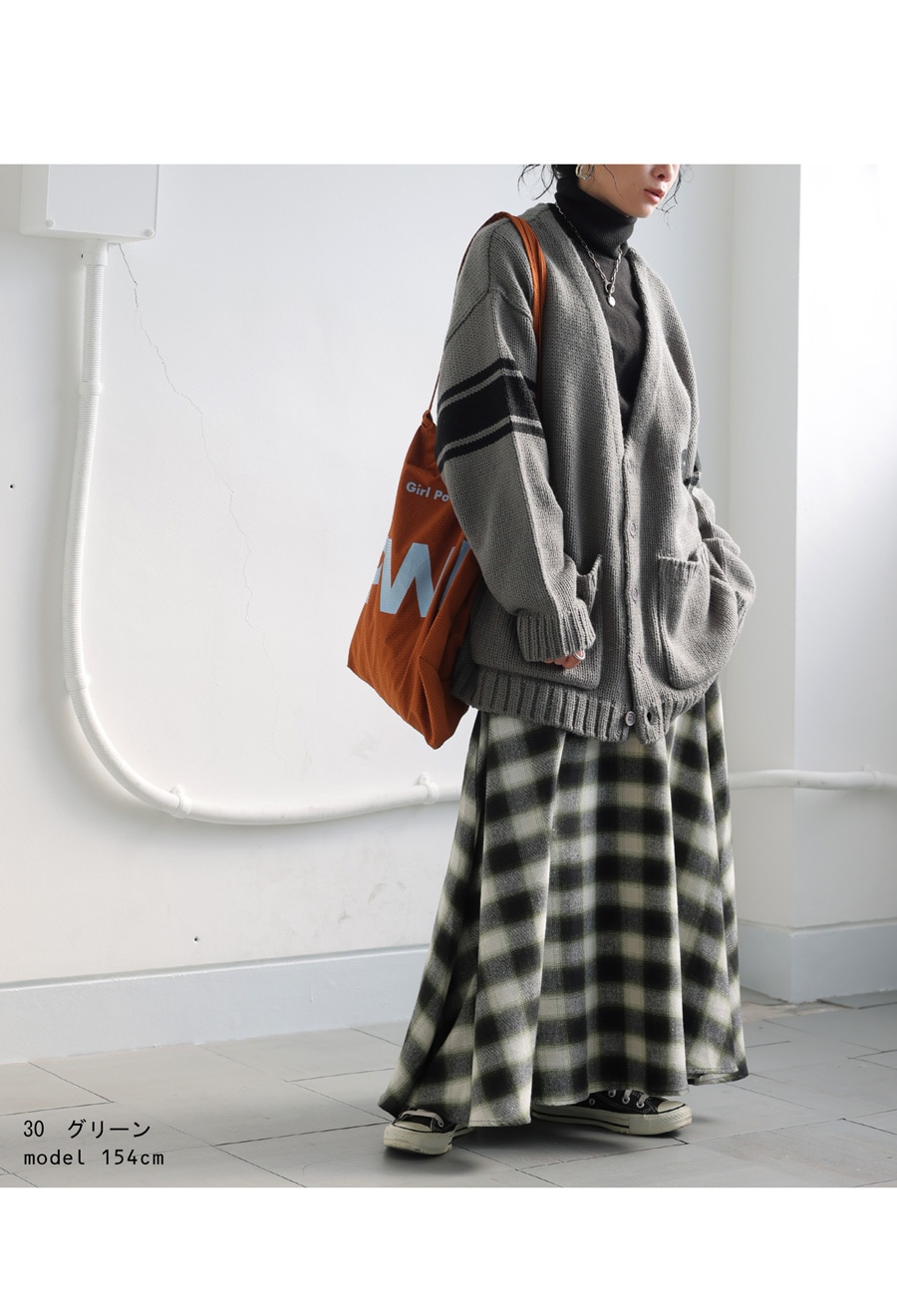 ネルっぽい風合いの生地を使用した、カジュアルでありエレガントなデザインスカート。