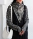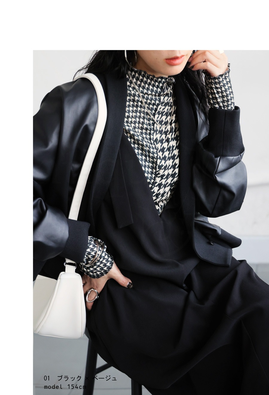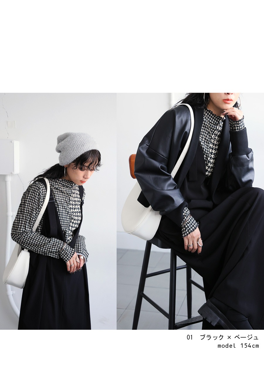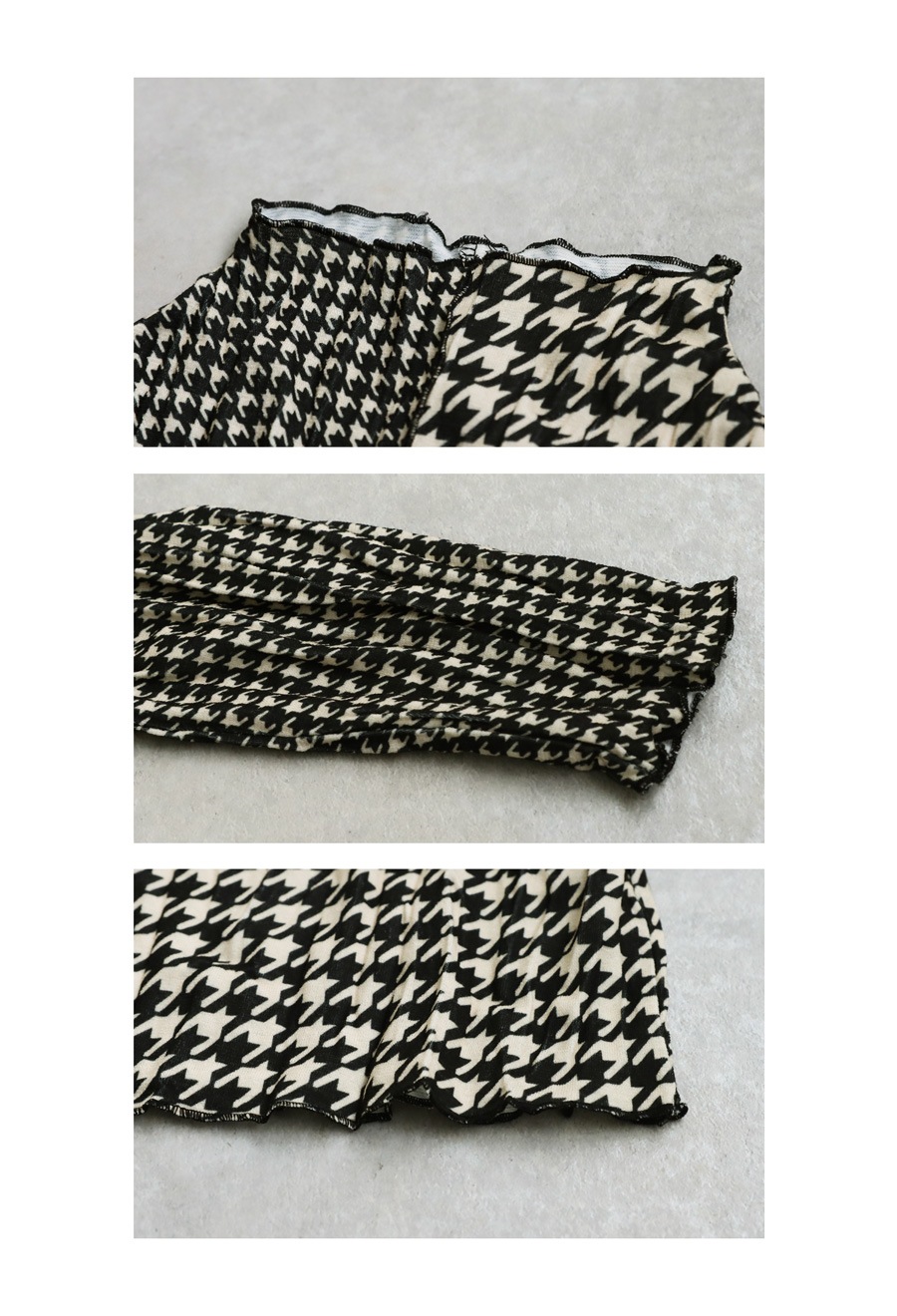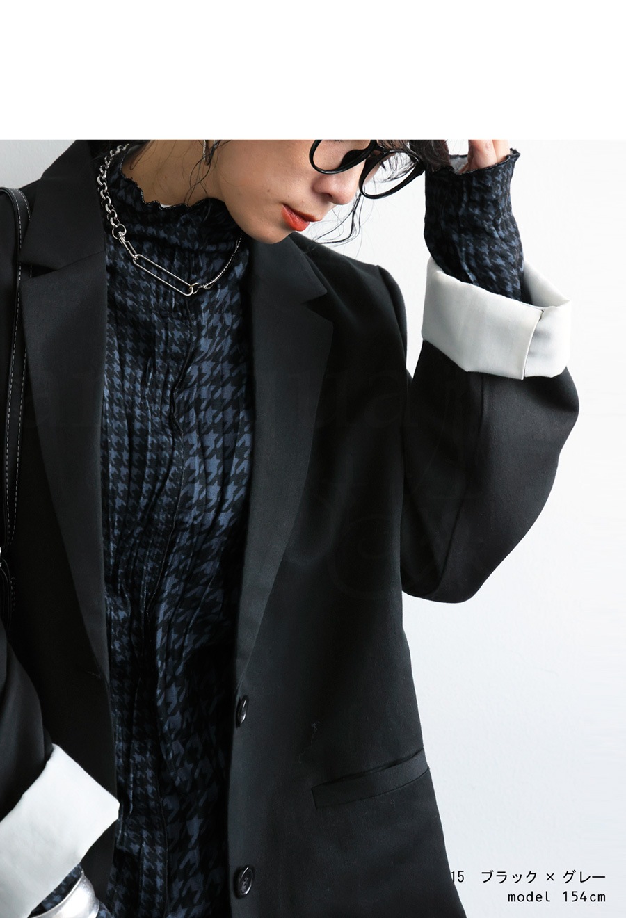 大小のアシメの千鳥柄にシワ加工を施した目を惹くトップス。