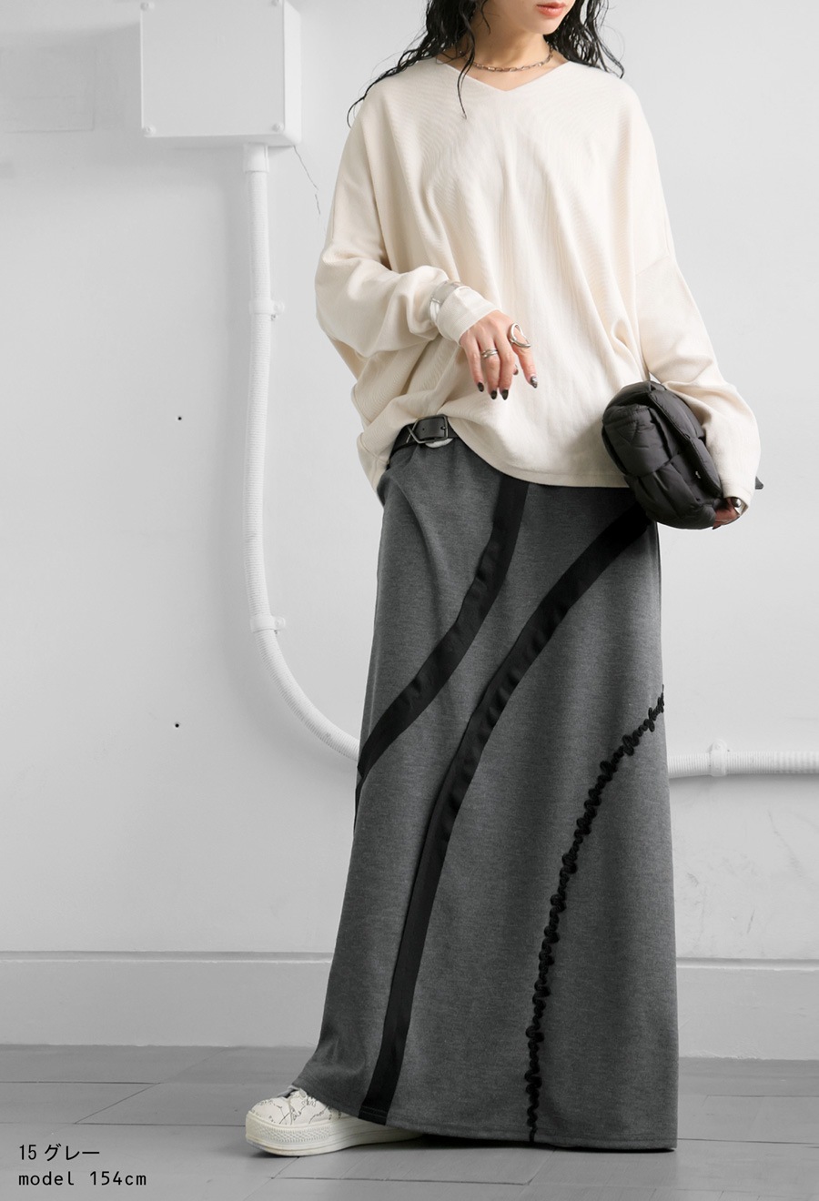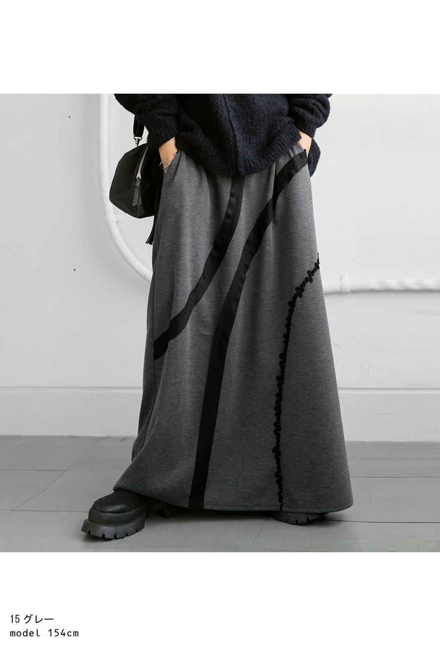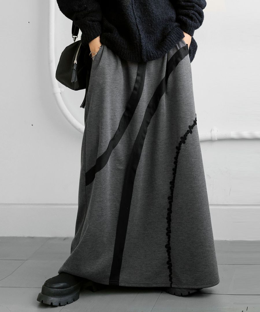 【検索ワード】ラインデザインスカート スカート レディース ボトムス ロング カーブデザイン ラインデザイン ライン レーステープ ラインテープ 立体感 うねうね 無地 前フラット 後ろゴム ゆったり シンプル きれいめ 上品 高級感 モード 体型カバー 細見え 着痩せ 大きめ 大きいサイズ ロングスカート マキシ丈 デザインスカート antiqua アンティカ 大人 おしゃれ 10代 20代 30代 40代 50代 60代 春 夏 秋 冬 オールシーズン お洒落 カジュアル かわいい かっこいい あんてぃか