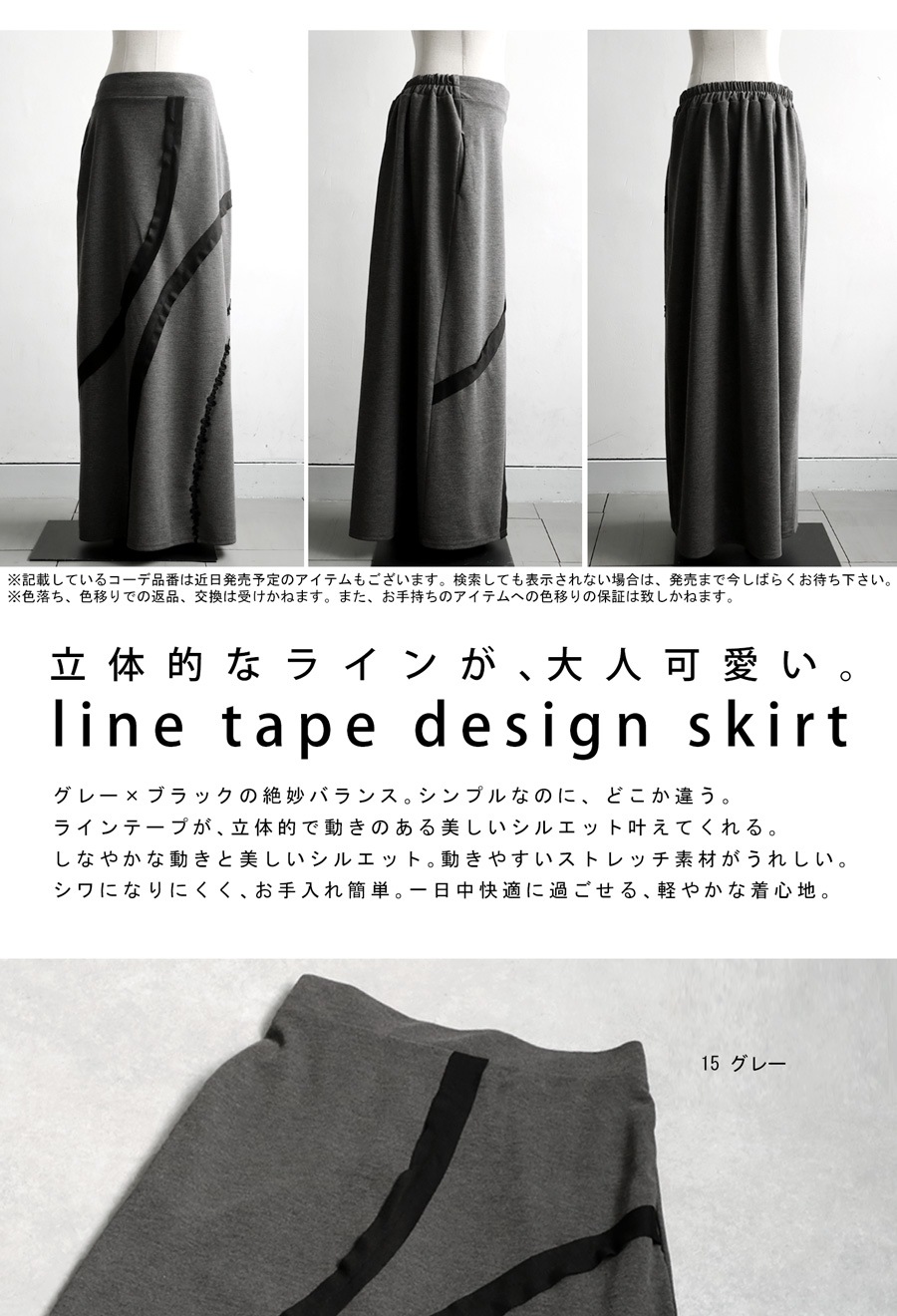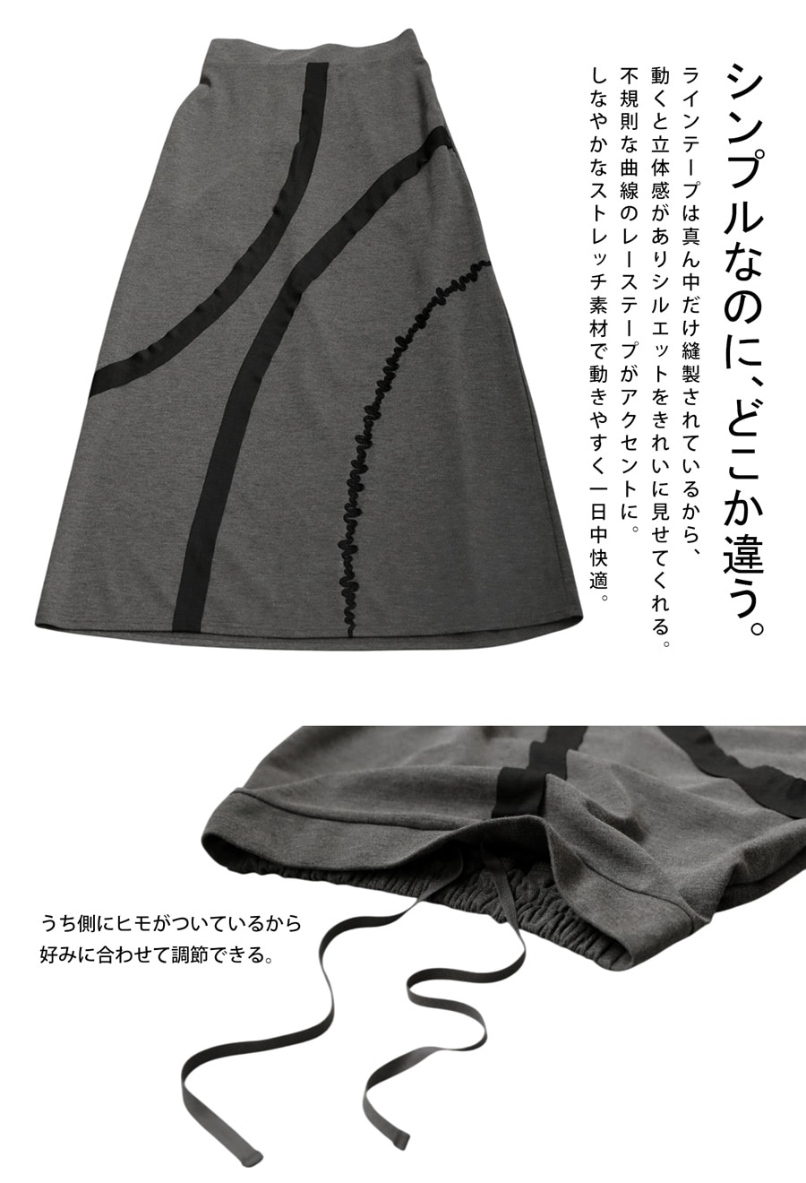お手入れも簡単『ラインテープデザインスカート』