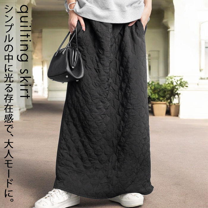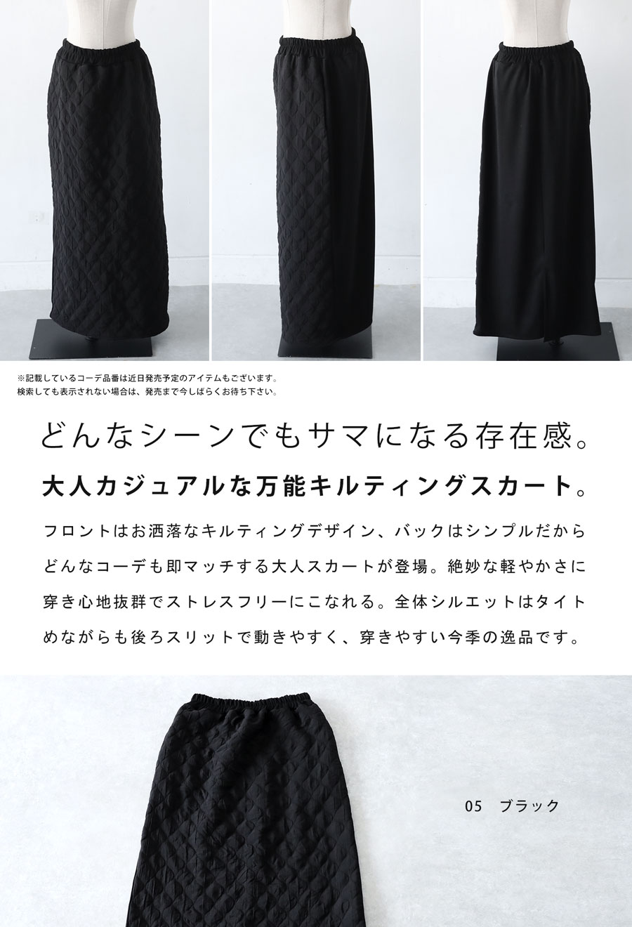 シンプルなのに存在感のある、キルティングデザインの万能スカート。