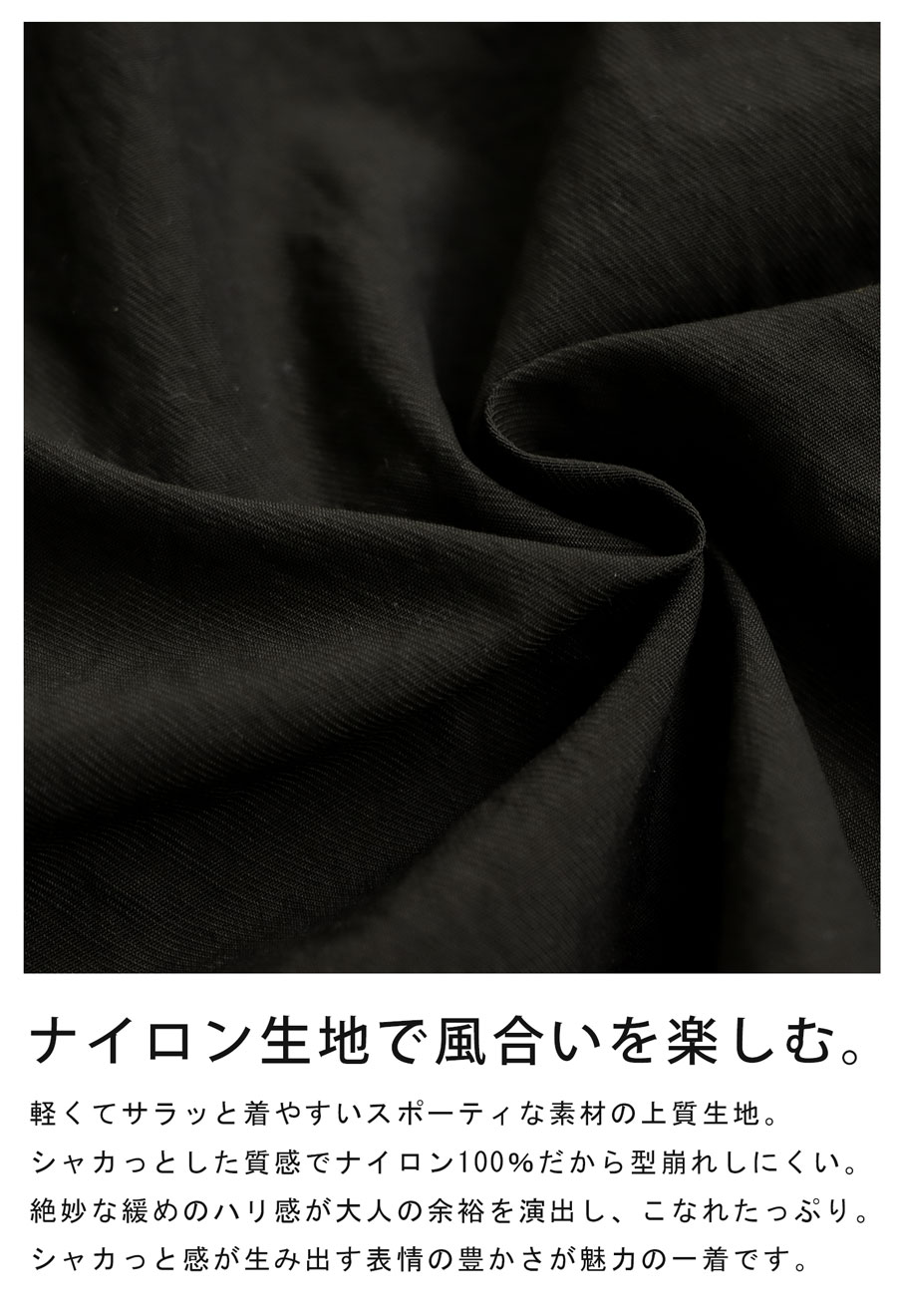 薄手のナイロン生地を使用し、軽やかで未運びも楽ちん!