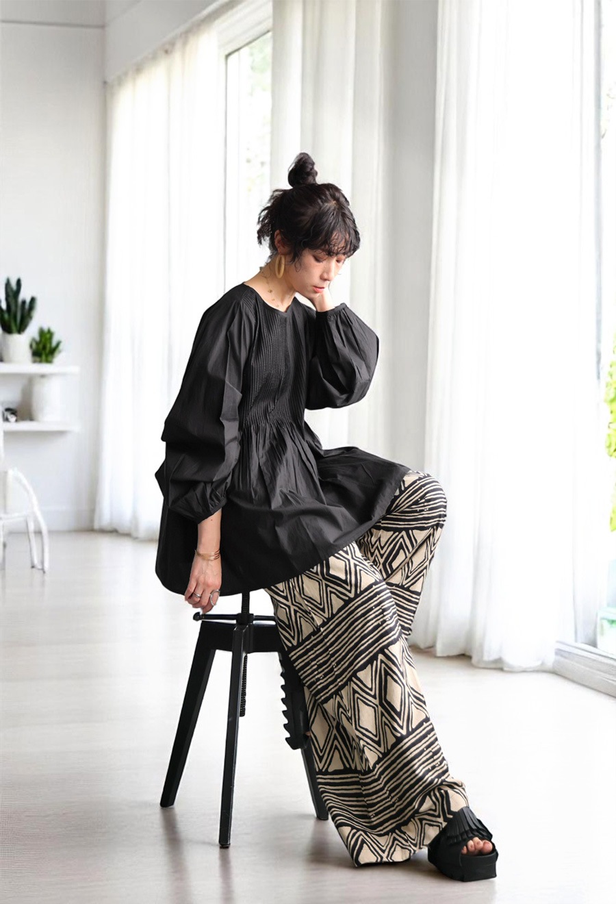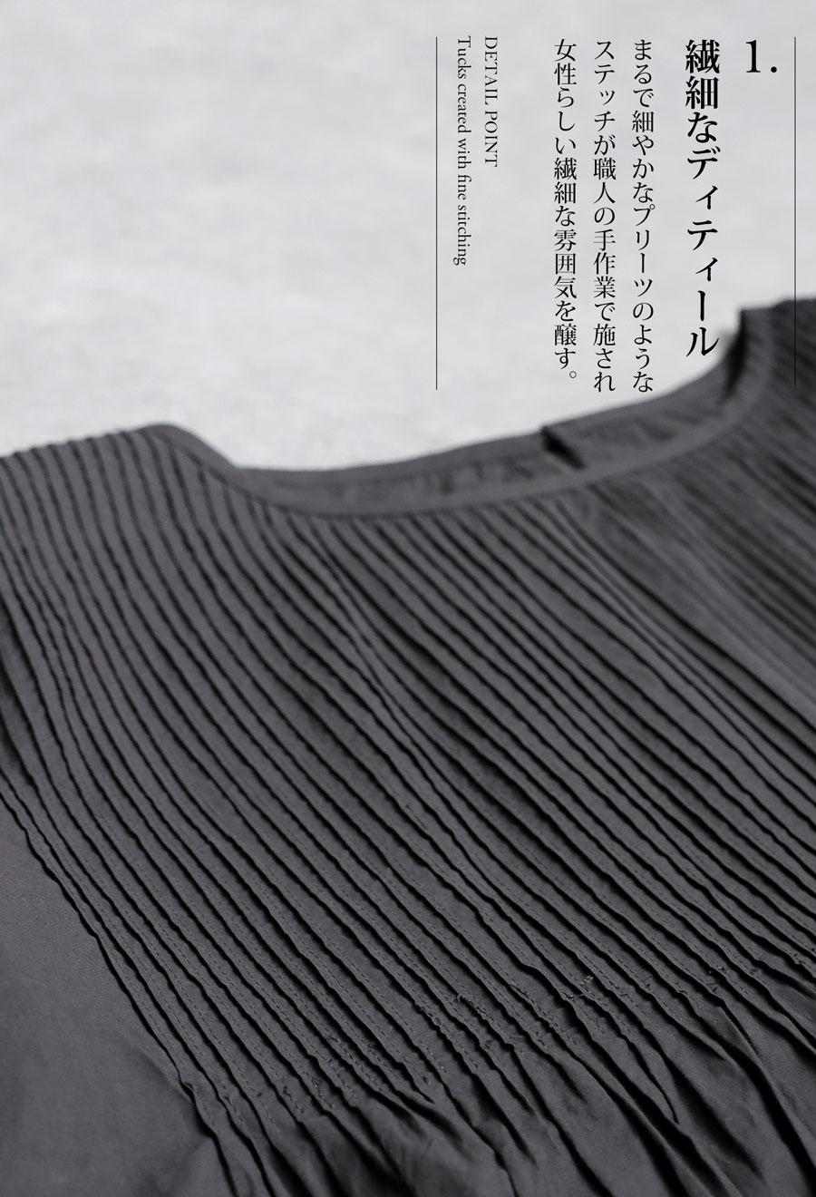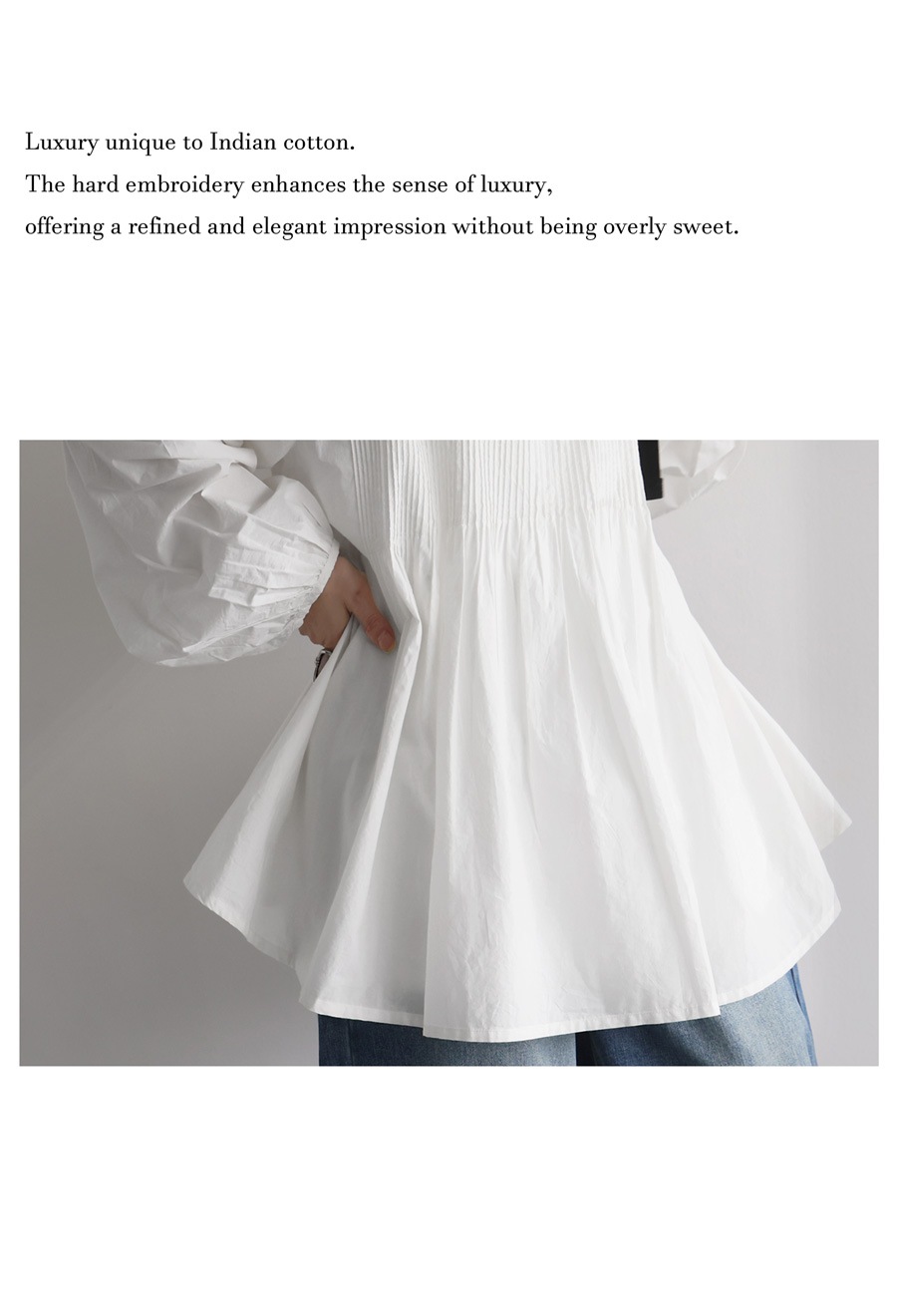 繊細な雰囲気醸す『インド綿ピンタックブラウス』