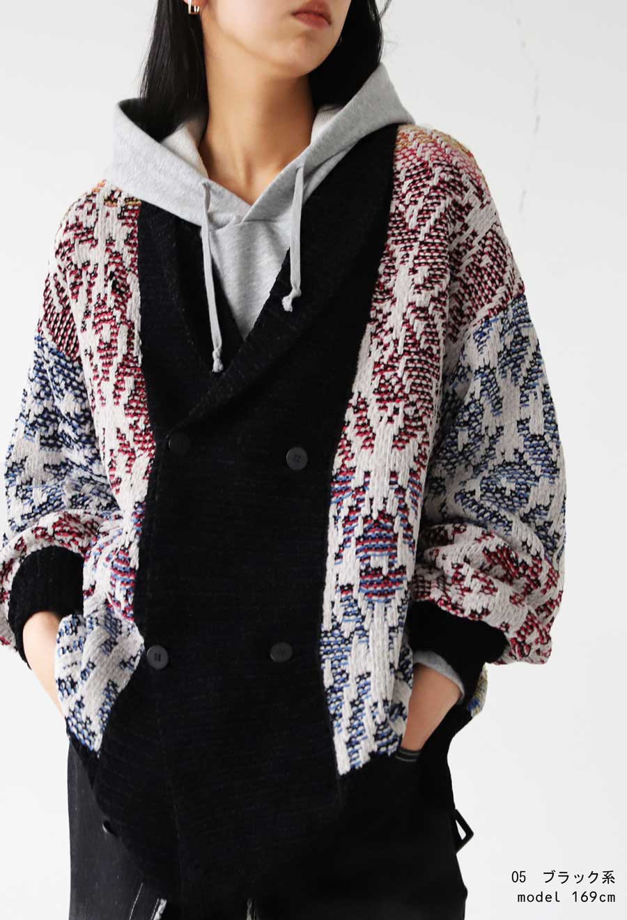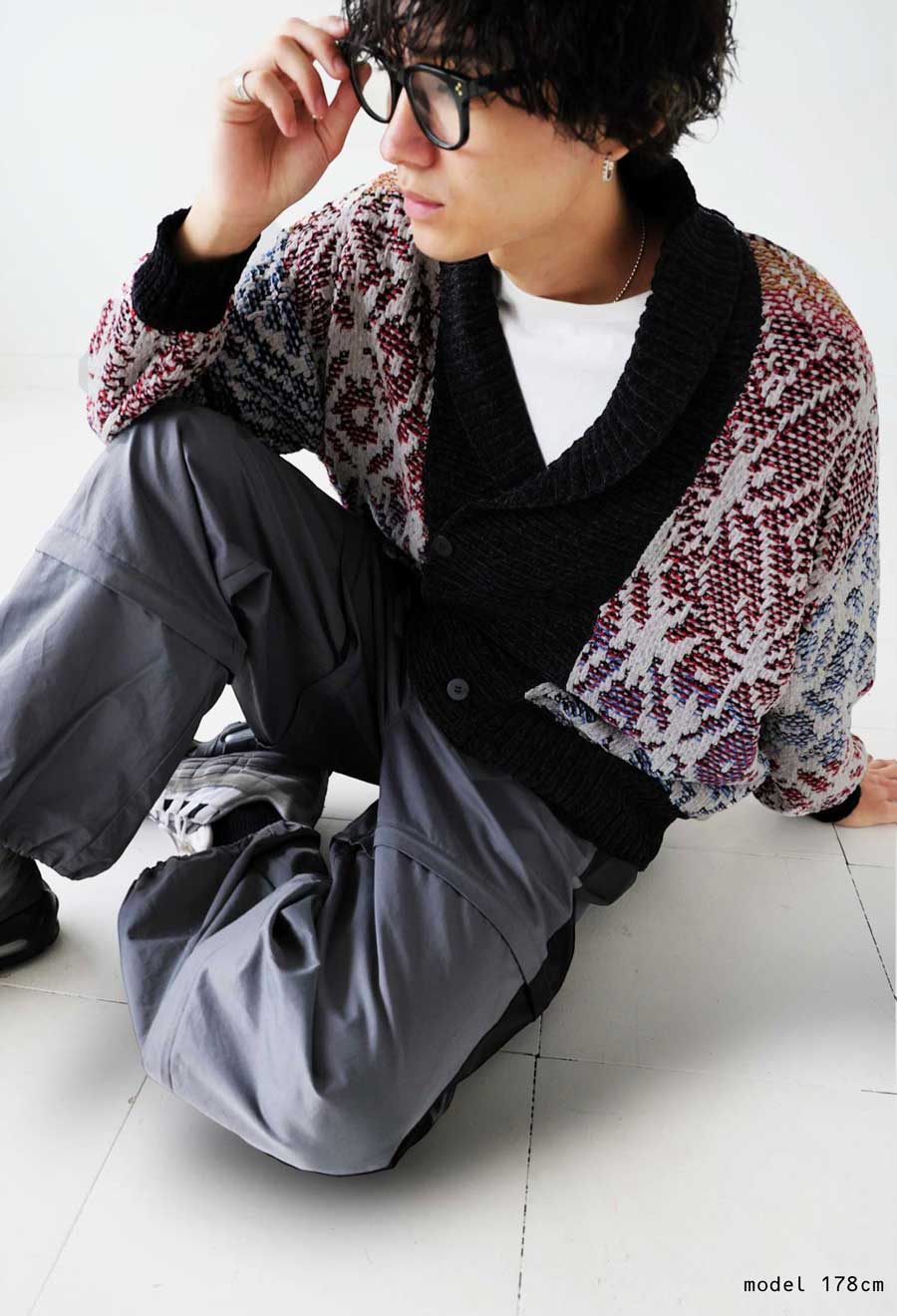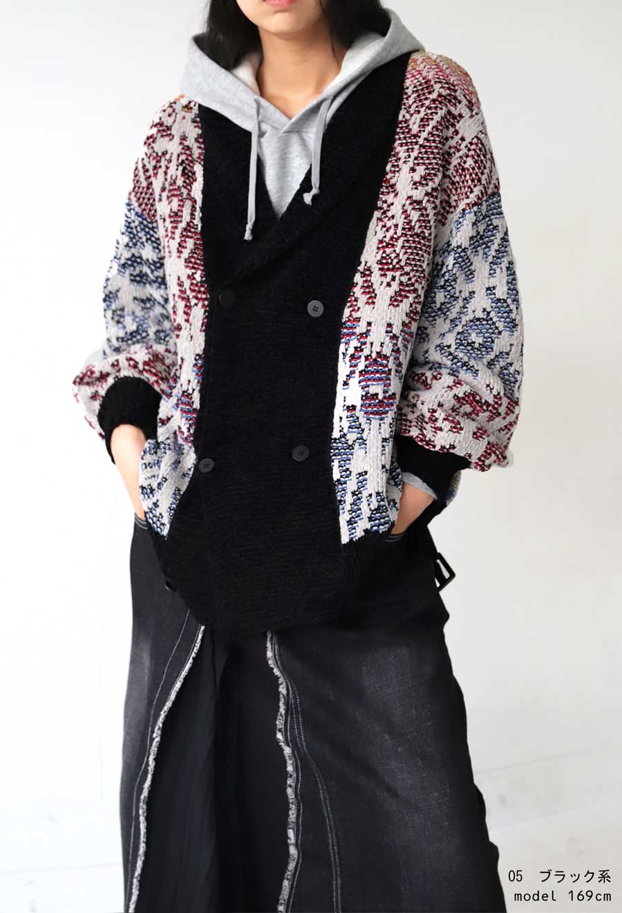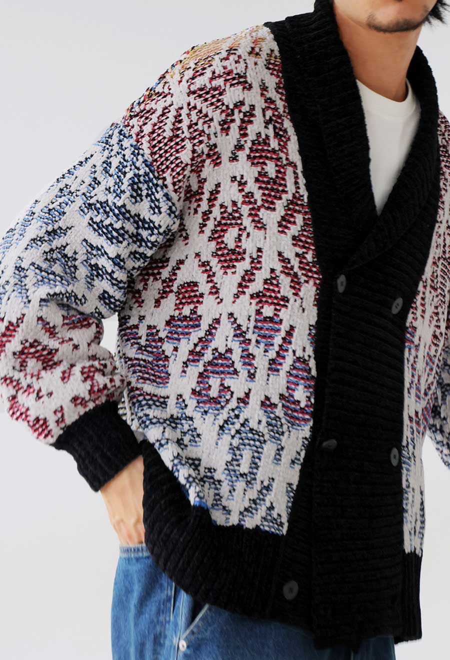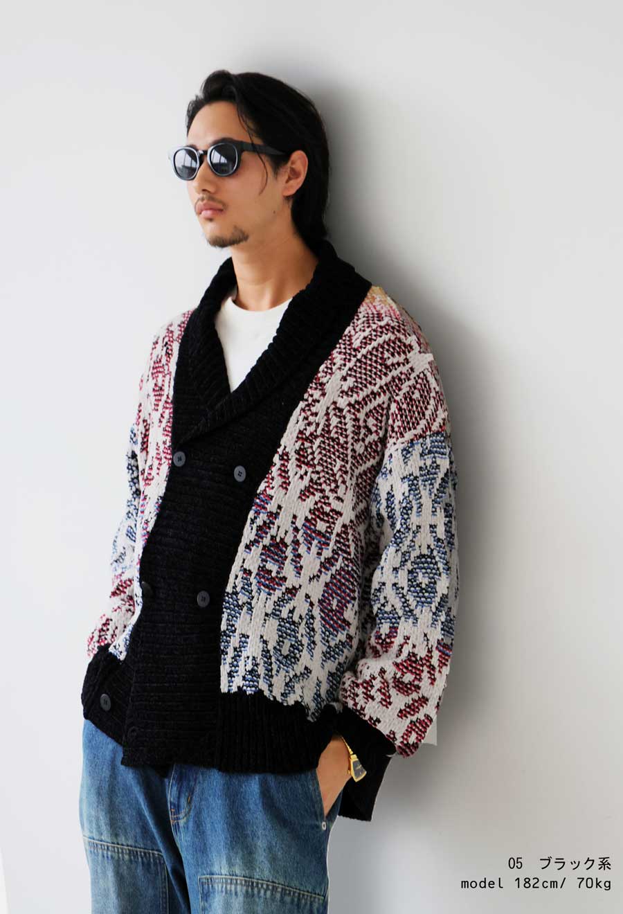 【検索ワード】ダブルカーディガン カーディガン メンズ トップス 長袖 羽織り ジャパニーズパターンミックス 和模様 織柄 柄カーディガン 柄 無地 切り替え ドッキング 配色 Vネック ベロアタッチ モールヤーン 襟付き ショールカラー 前開き ダブルボタン ボタン ゆったり 高級感 光沢感 モード 体型カバー 細見え 着痩せ 大きめ 大きいサイズ チクチクしない 軽アウター ライトアウター ユニセックス ONZE INITY オンゼ アイニティ DOZAN11 レゲエ ポップ ± 三木道三 統合 団結 調和 ジャポニスム 和柄 和 洋 融合 新しい日本 日本 JAPAN 人気 antiqua アンティカ 男性 男 かっこいい カッコイイ カジュアル お洒落 おしゃれ メンズファッション トレンド コーディネート 通販 ブランド 秋 冬 あんてぃか