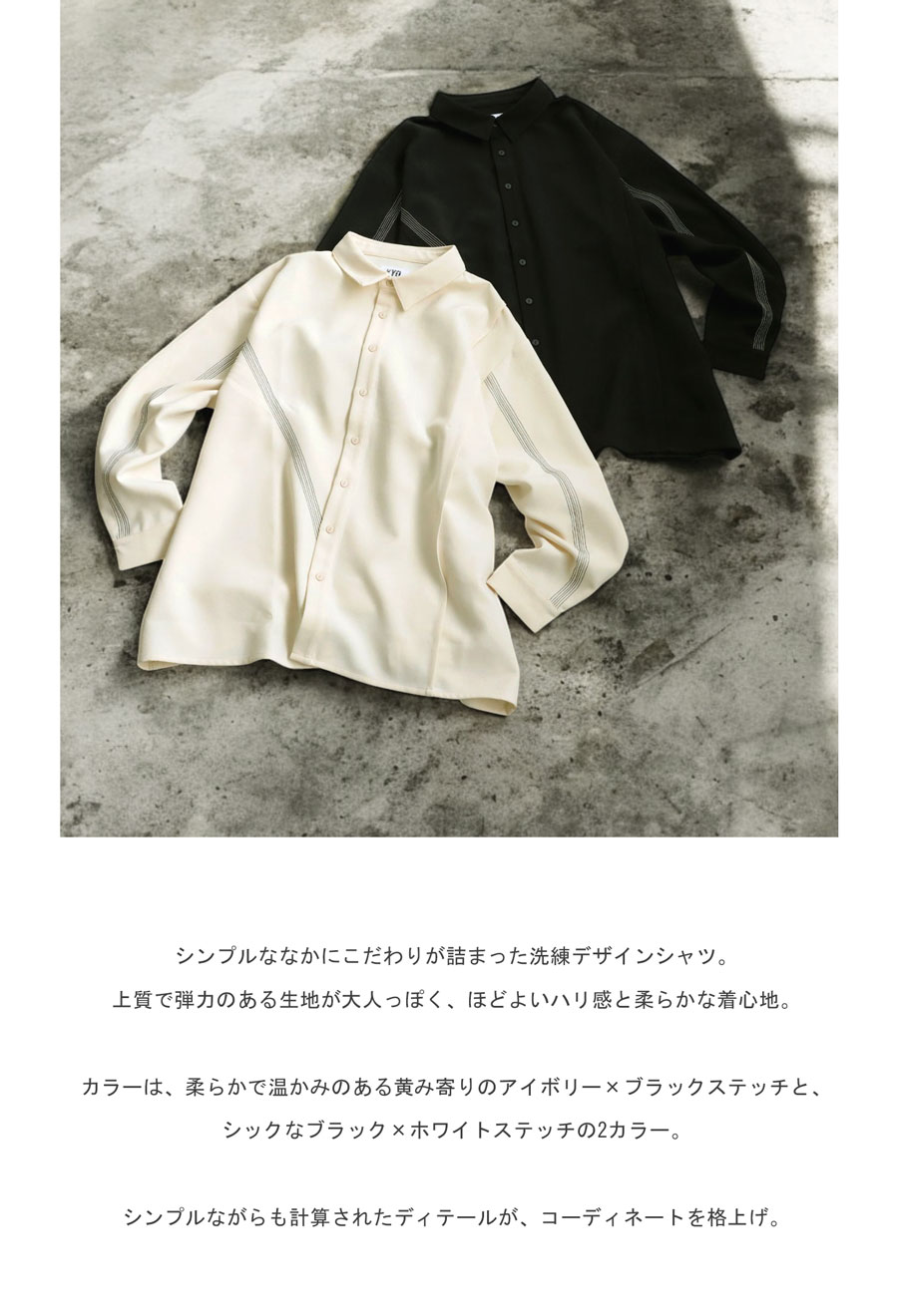 【検索ワード】ステッチシャツ シャツ レディース トップス 長袖 シャツトップス レギュラーカラー シャツカラー 襟付き ステッチ ステッチデザイン セットアップ 配色 タック アシメ アシンメトリー 前開き ボタン 弾力 ハリ感 ブラック アイボリー 黒 生成り ゆったり シンプル きれいめ マット スタイリッシュ 上品 モード クール 高級感 体型カバー 細見え 着痩せ 大きめ 大きいサイズ ブラウス 通勤 オフィス フォーマル 結婚式 二次会 パーティー オケージョン 入卒 入園式 卒園式 入学式 卒業式 セレモニー 発表会 謝恩会 晴れの日 ハレの日 スーツ ユニセックス KYO 今日という日 キョウ きょうというひ 最高の自分 上質 豊か ライフスタイル 大切 特別な瞬間 特別 スペシャル こだわり 都会的 先進的 モダン antiqua アンティカ 大人 おしゃれ 10代 20代 30代 40代 50代 60代 春 秋 冬 お洒落 かっこいい あんてぃか