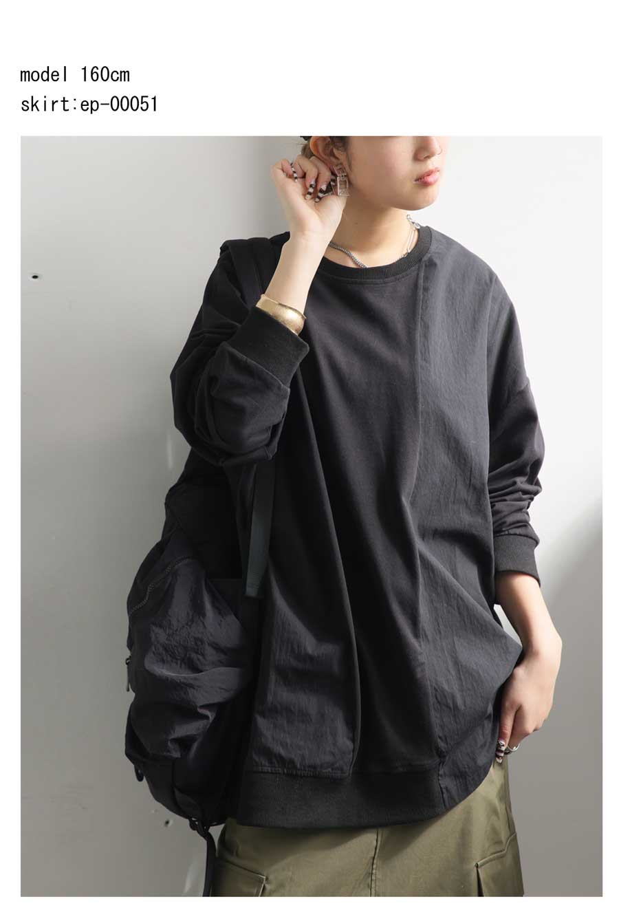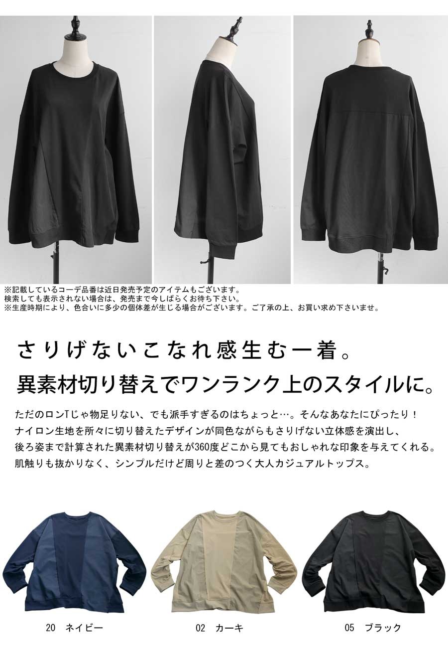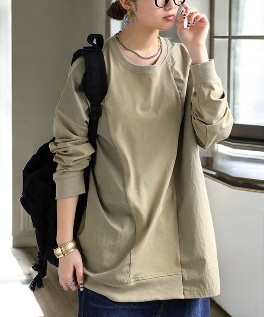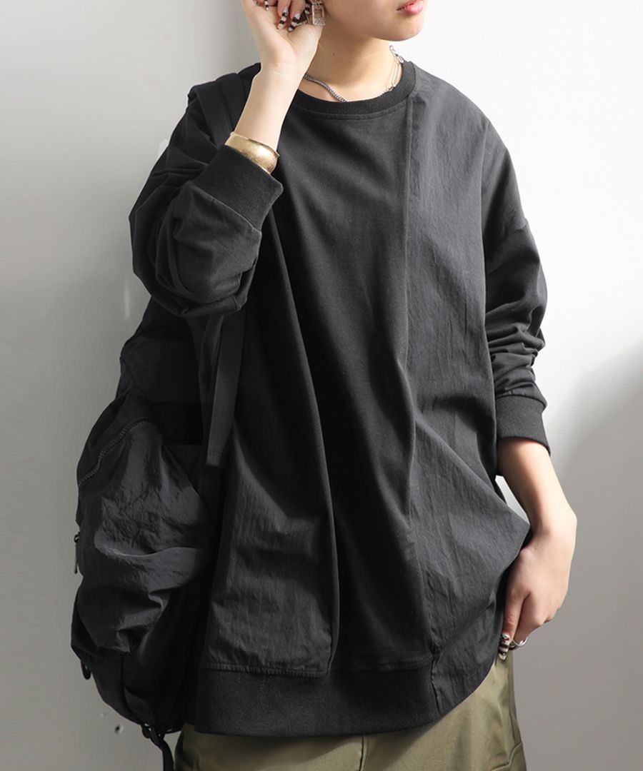 【検索ワード】ドッキングトップス ロンT レディース トップス 長袖 ナイロン 切り替え 異素材 ドッキング 丸首 クルーネック リブ ミリタリー シンプル 着回し アレンジ デイリー使い ビッグシルエット オーバーサイズ 大きめ 大きいサイズ 綿 コットン ナイロンカーキ ブラック 黒 ネイビー 紺 ユニセックス antiqua treecafe アンティカ ツリーカフェ 大人 おしゃれ 10代 20代 30代 40代 50代 60代 春 秋 冬 お洒落 カジュアル かわいい かっこいい あんてぃか
