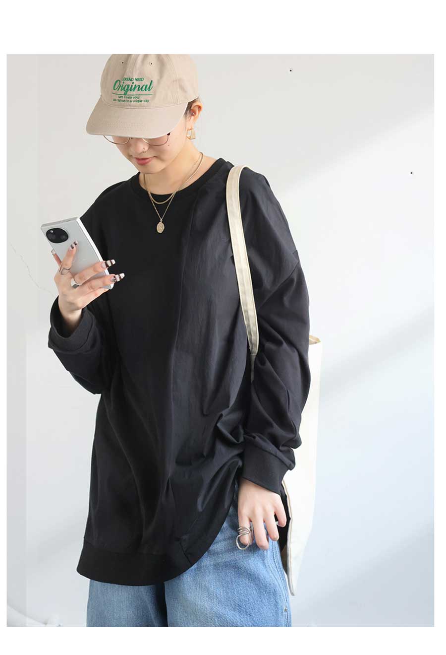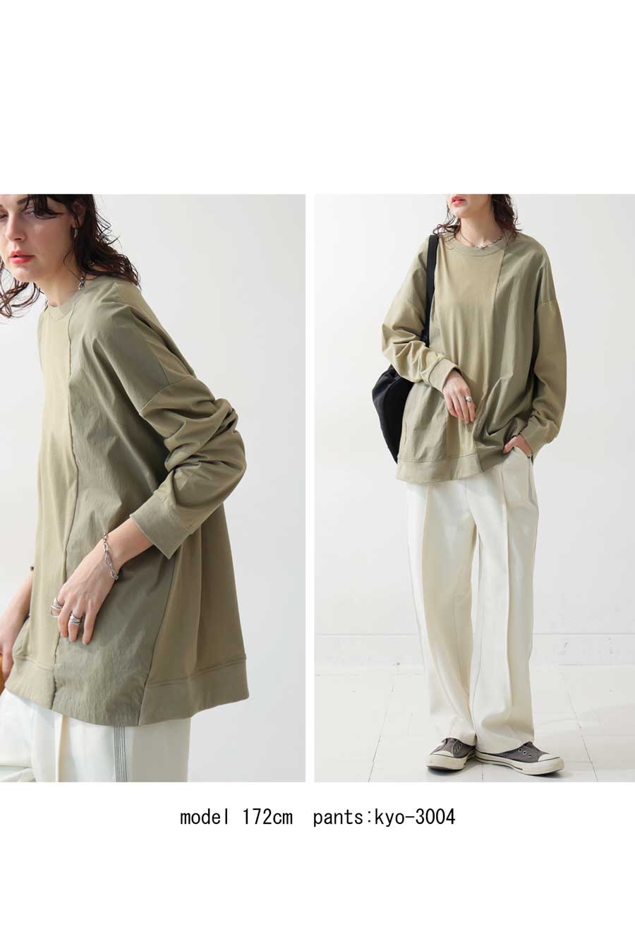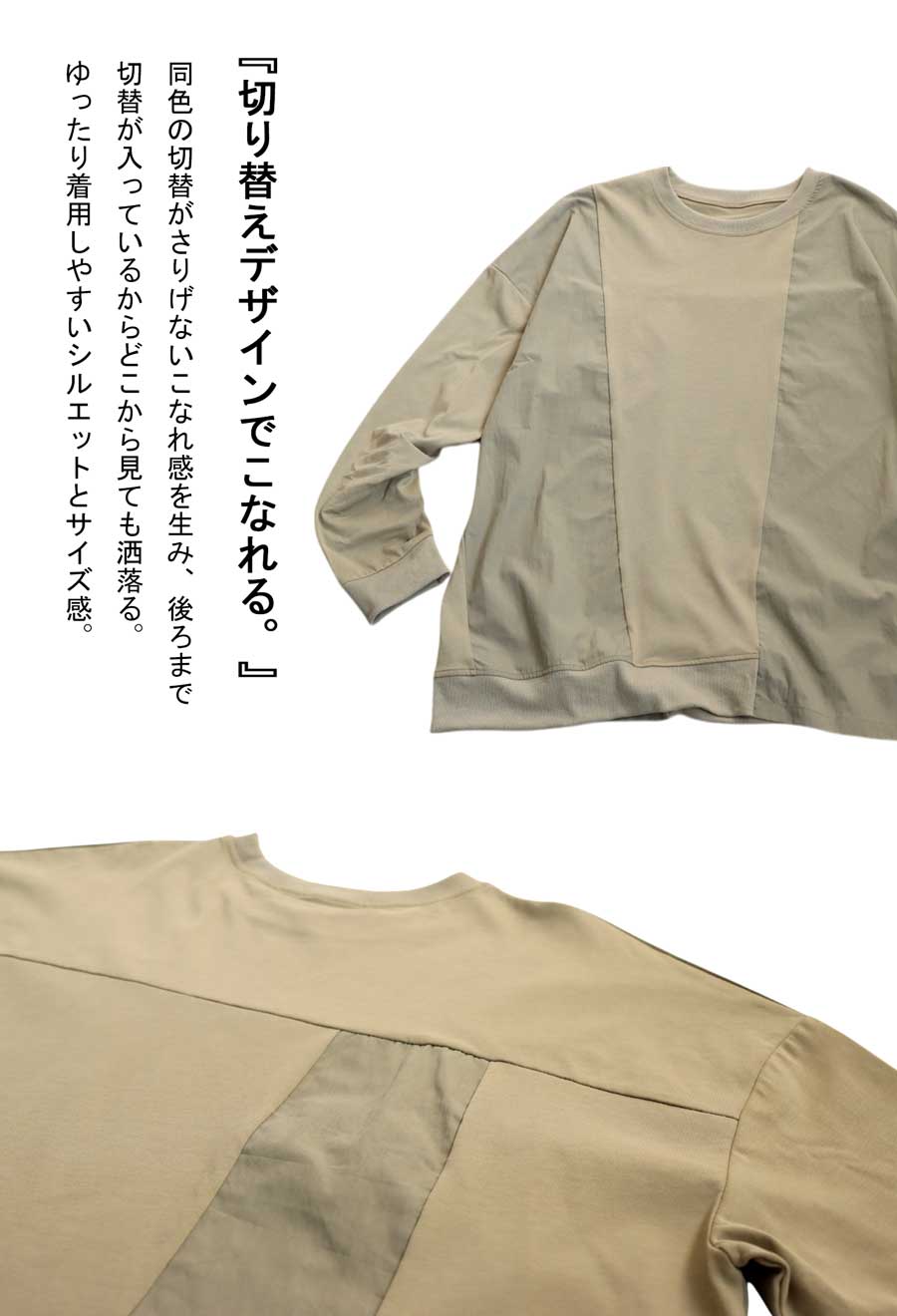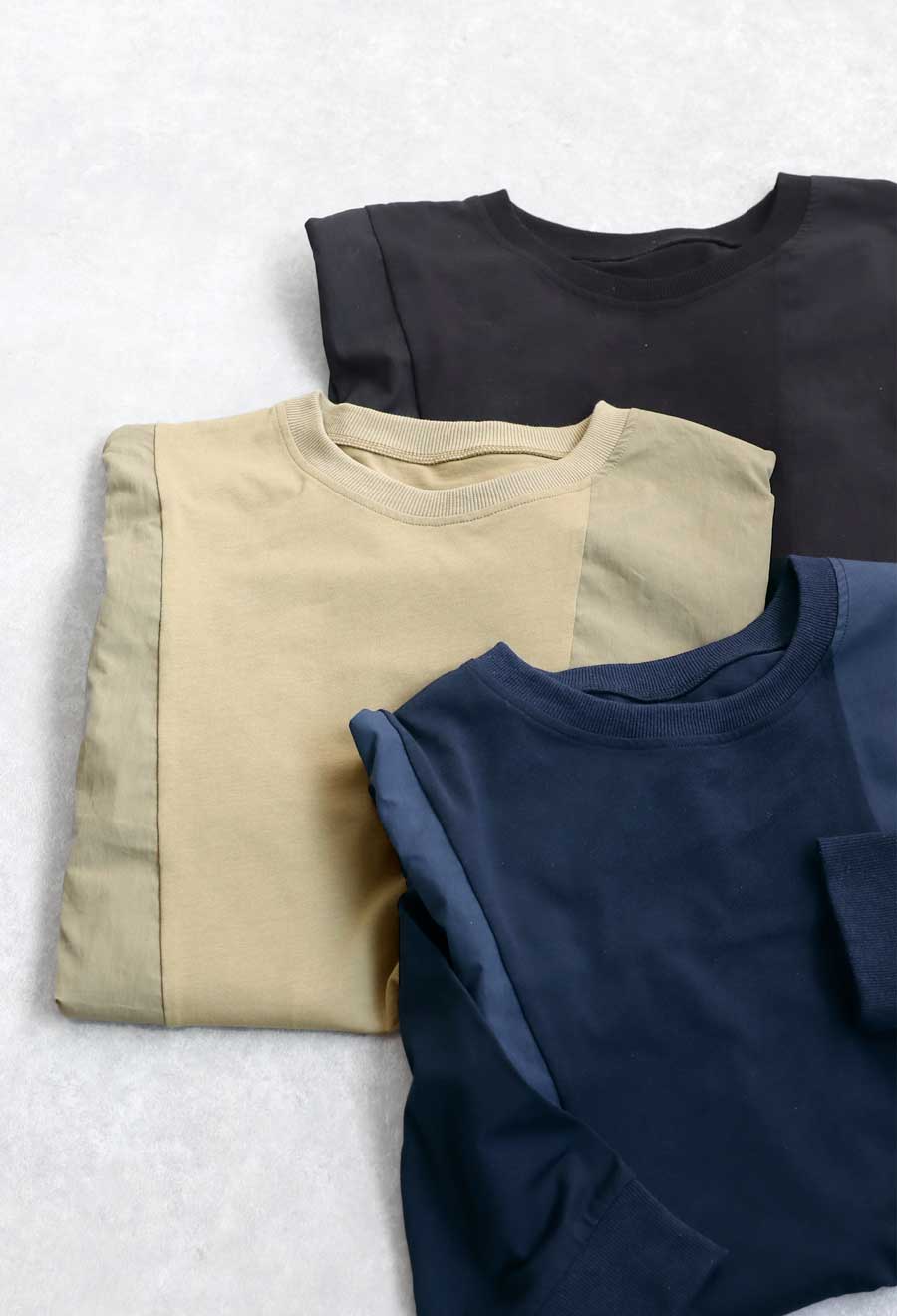 【検索ワード】ドッキングトップス ロンT レディース トップス 長袖 ナイロン 切り替え 異素材 ドッキング 丸首 クルーネック リブ ミリタリー シンプル 着回し アレンジ デイリー使い ビッグシルエット オーバーサイズ 大きめ 大きいサイズ 綿 コットン ナイロンカーキ ブラック 黒 ネイビー 紺 ユニセックス antiqua treecafe アンティカ ツリーカフェ 大人 おしゃれ 10代 20代 30代 40代 50代 60代 春 秋 冬 お洒落 カジュアル かわいい かっこいい あんてぃか