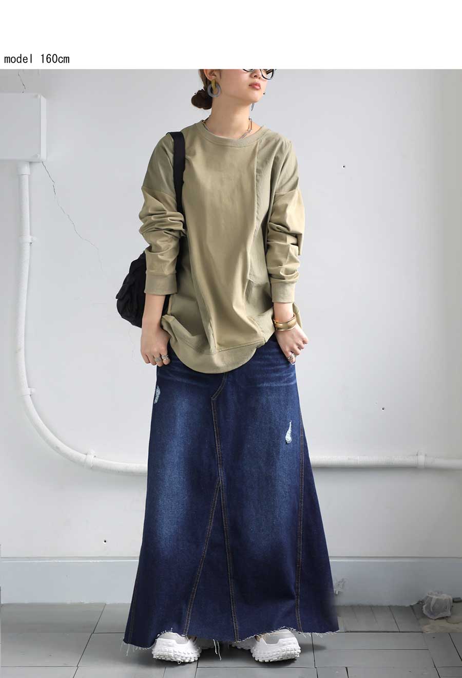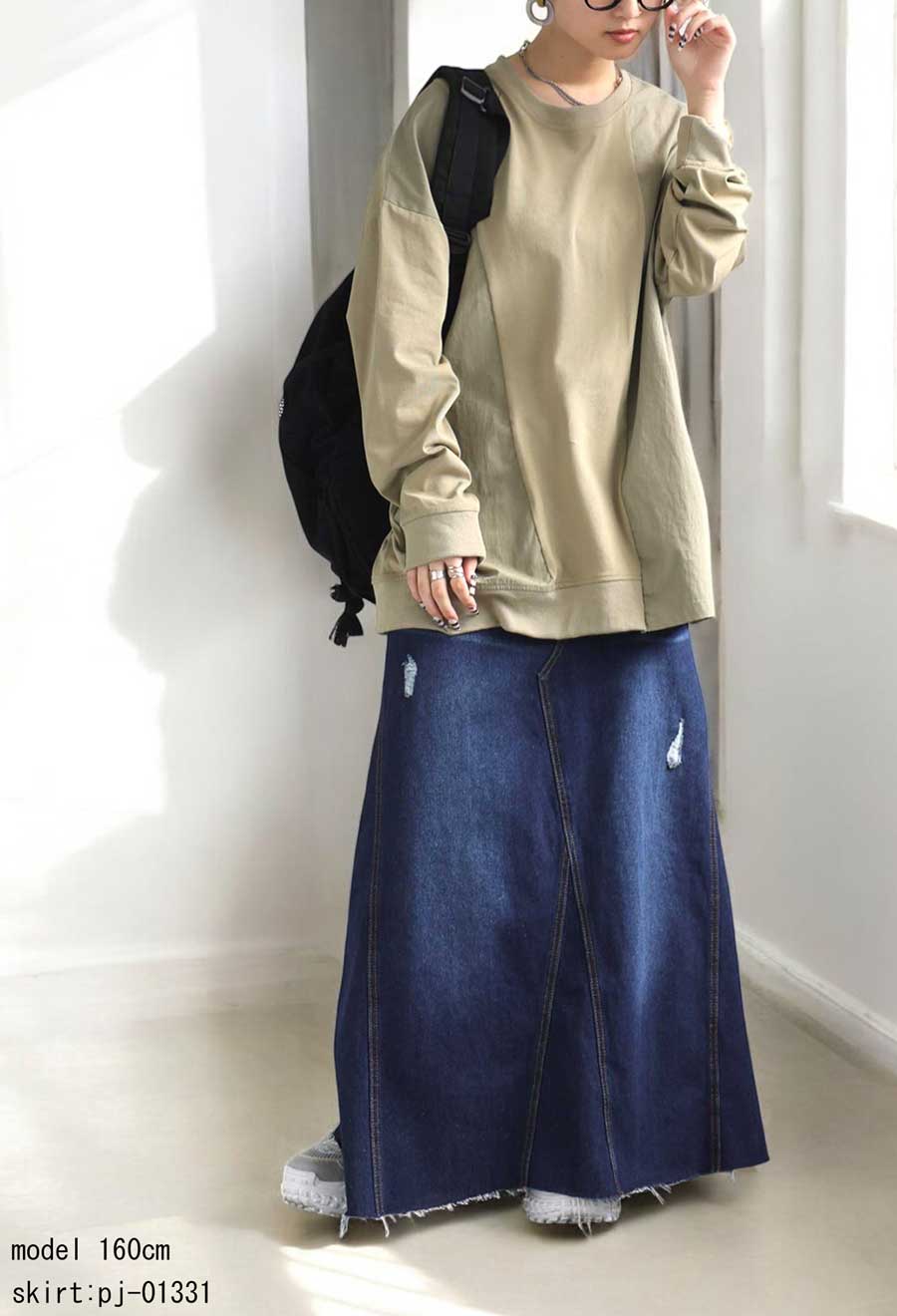 ・こなれ感のある異素材切り替えデザイン。
