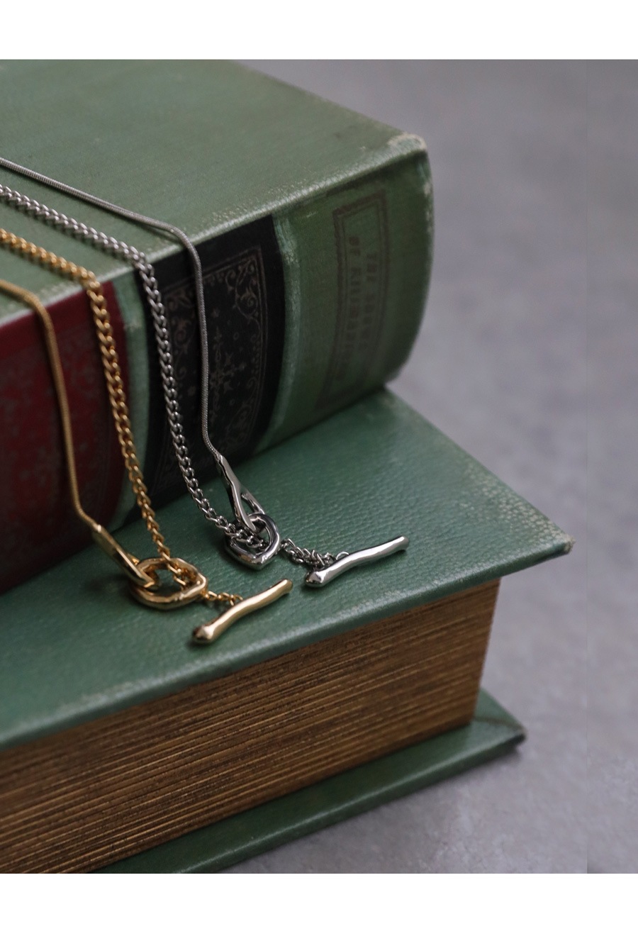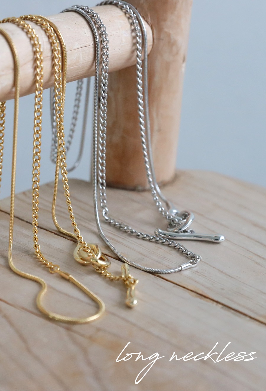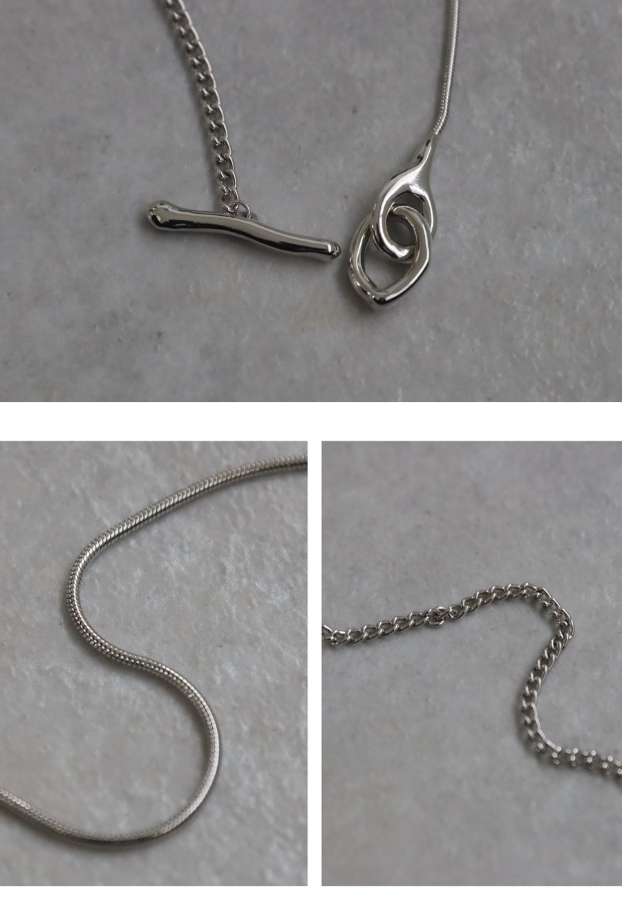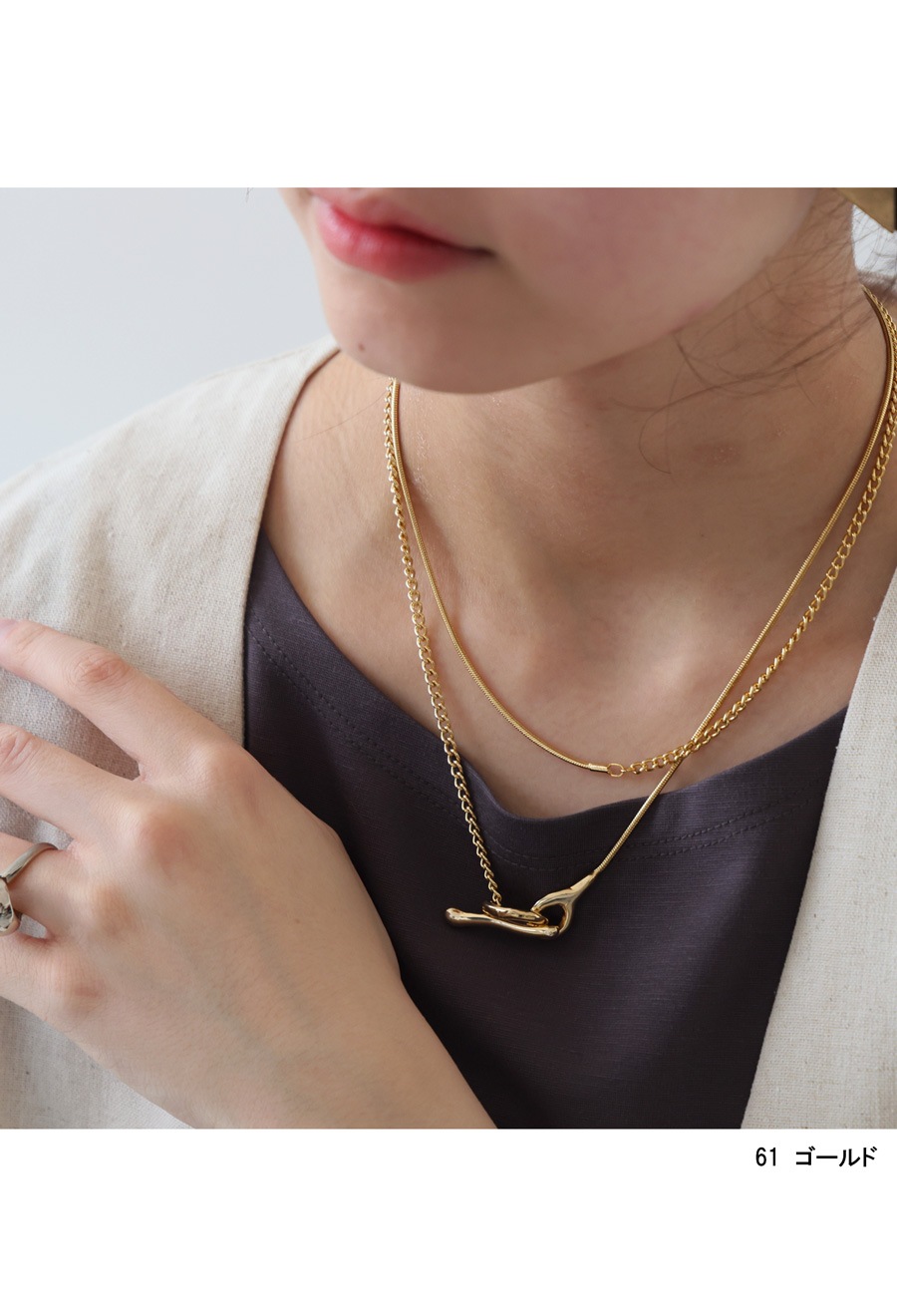 チェーンは異なる2種を組み合わせ、表情の違いを楽しめる仕上がりに。