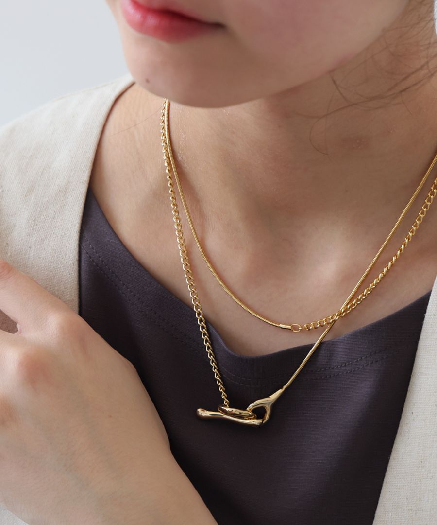 繊細なチェーンとニュアンス感のあるモチーフが胸元を美しく引き立て、Tシャツやワンピースにも映えるデザイン。